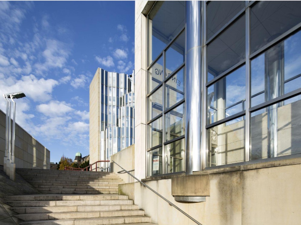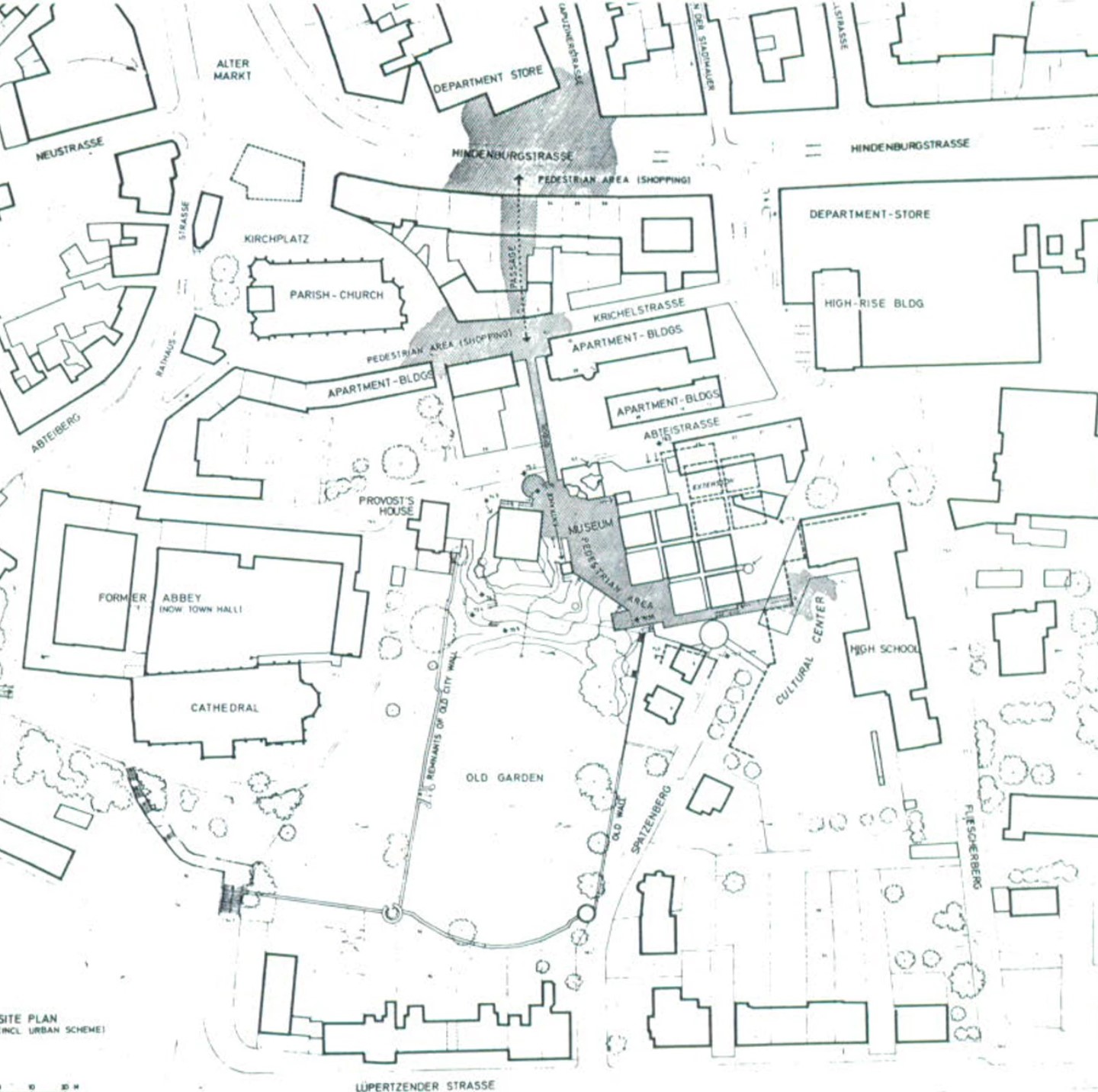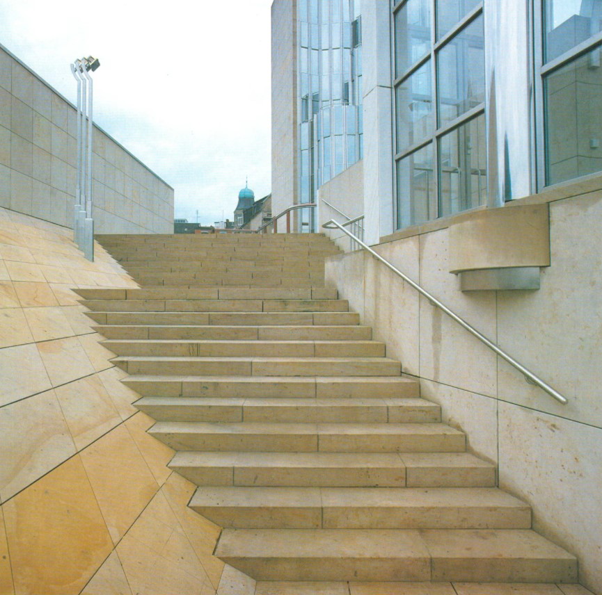 It is instructive to compare Museum Abteiberg with another German museum from the same period that similarly had a profound effect on subsequent museum design—James Stirling’s Neue Staatsgalerie (1977–84) at Stuttgart. Both are set on irregular terrain and require urbanistic interventions, but Stirling’s solution revives and updates the 19thcentury museum paradigm, whereas Hollein has jettisoned all previous solutions. Both make reference to industrial as well as classical buildings and use the technique of compositional collage, yet their differences illuminate the manifold possibilities inherent in the museum program.