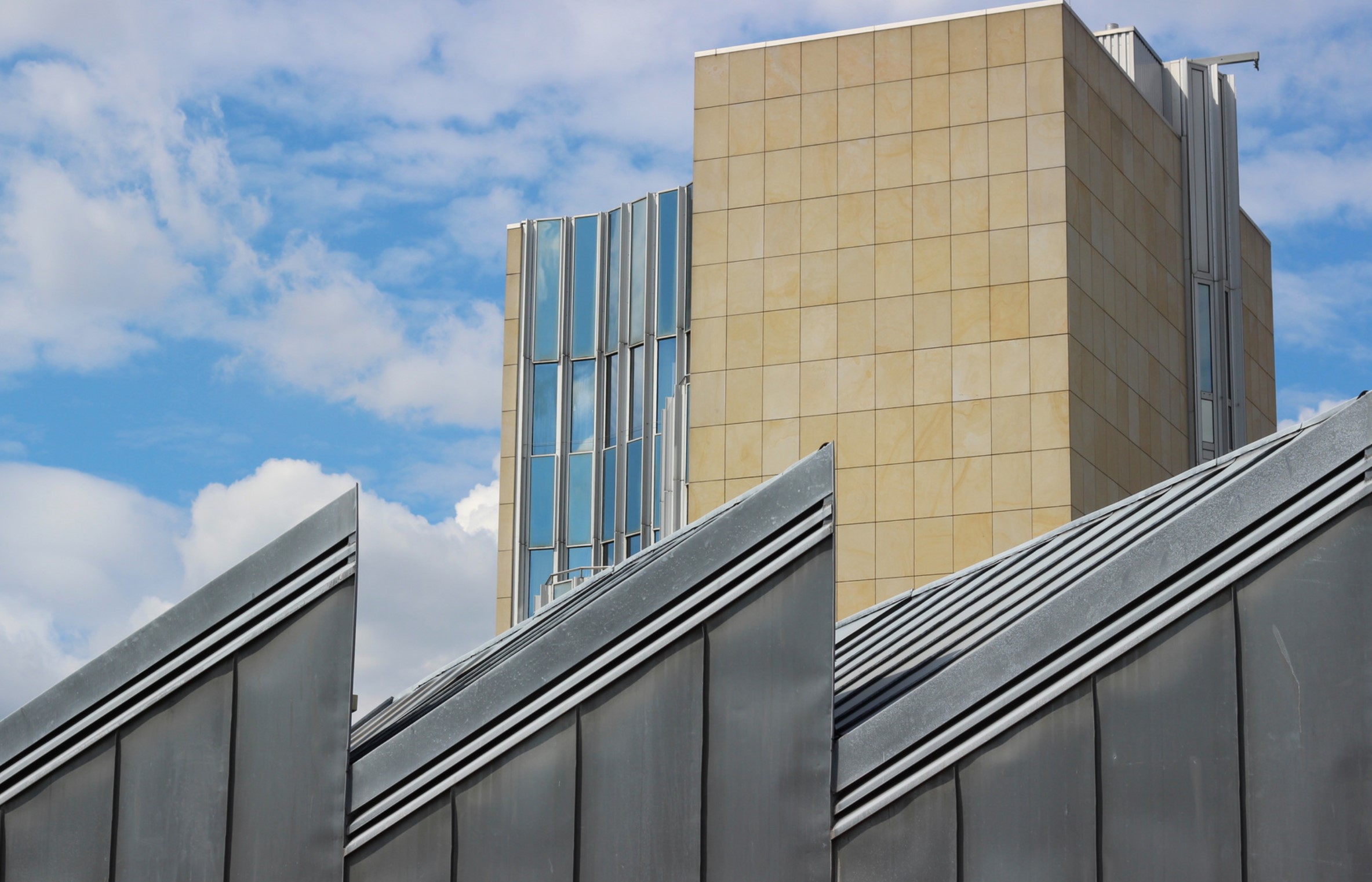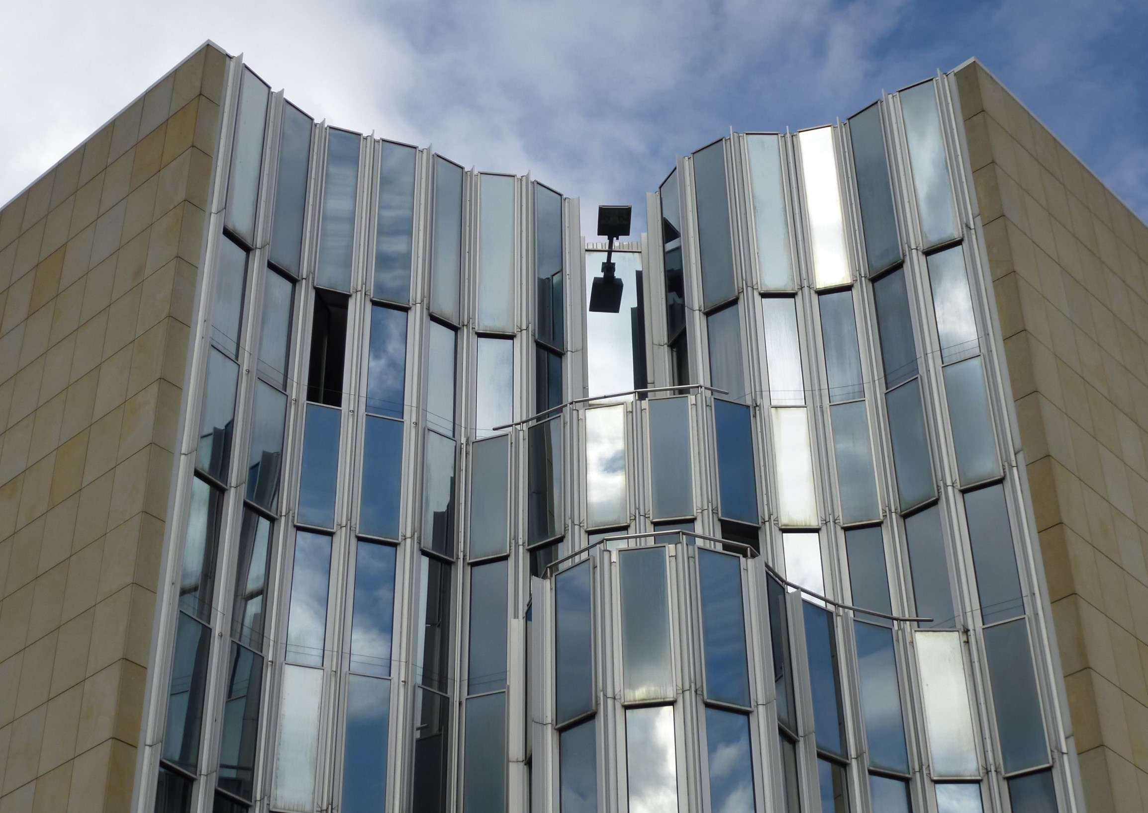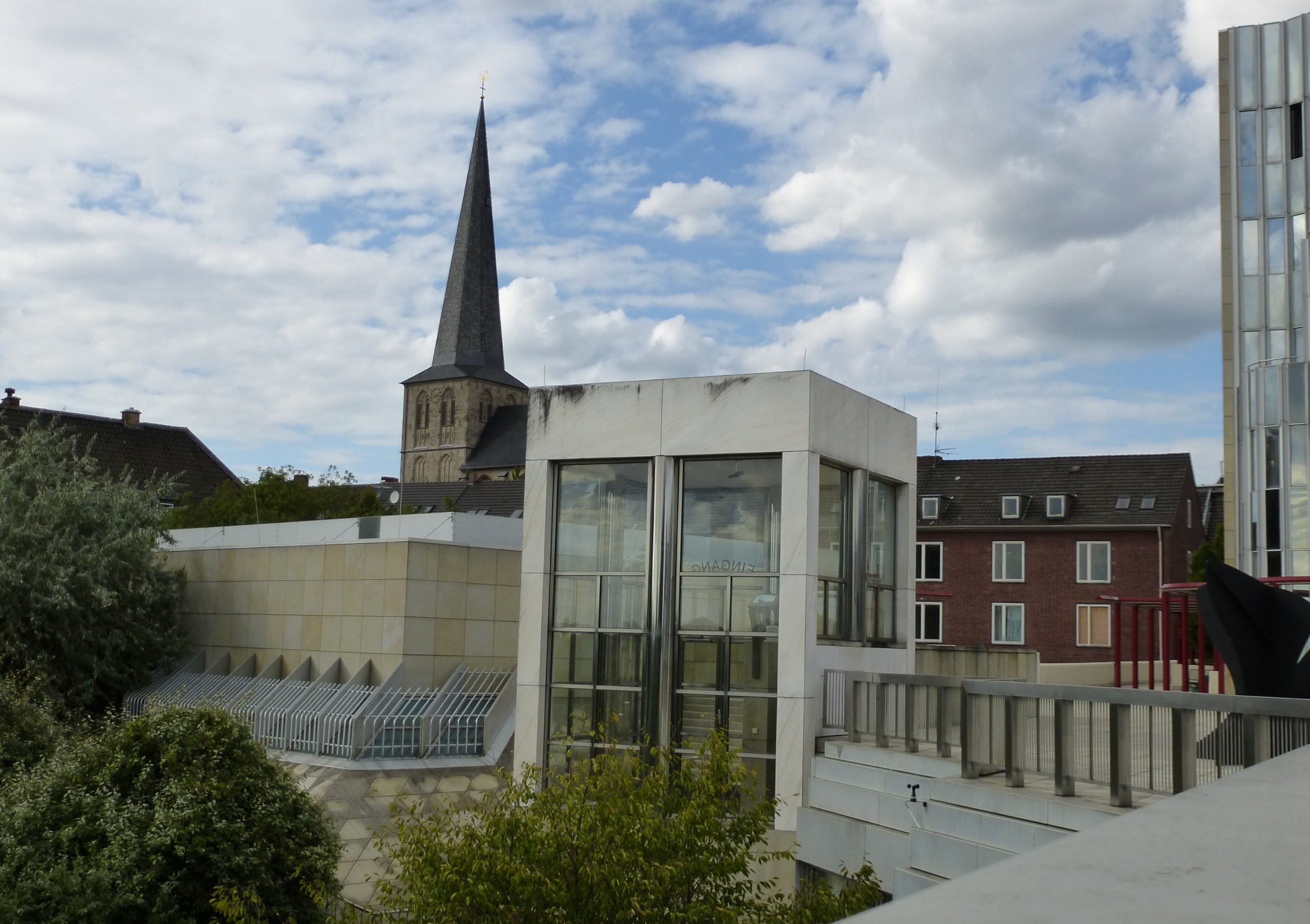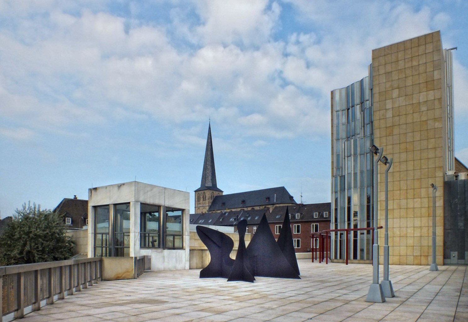 Although Hollein has learned from the institutional buildings of Louis I.Kahn and Alvar Aalto, he listens to his own music, which—to pursue the metaphor—includes concerti from the 18th, symphonies from the 19th, and popular songs from the 20th centuries. His eclecticism served him well in this complex commission, made more difficult by the need for the museum to serve urban as well as aesthetic ends. Hollein has linked Mönchengladbach’s town center on the heights with the medieval Ettal Abbey (today the city hall) on the slopes below, assembling a multi-tiered museum from a series of discrete elements of different sizes and shapes that provide a series of delightfully varied indoor and outdoor rooms. Distributing the individual volumes in space rather than containing them within a monolithic whole allowed him to maintain the picturesque scale of the town; at the subterranean level, the disparate sections are united.