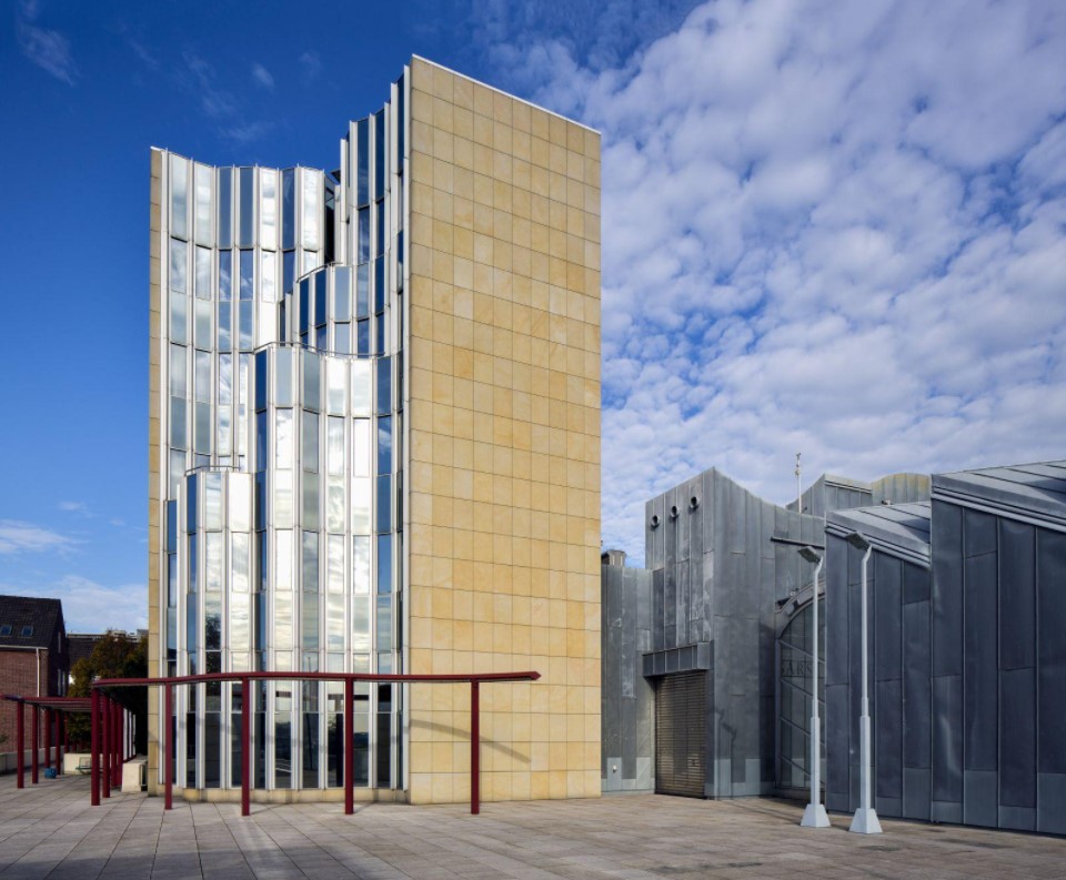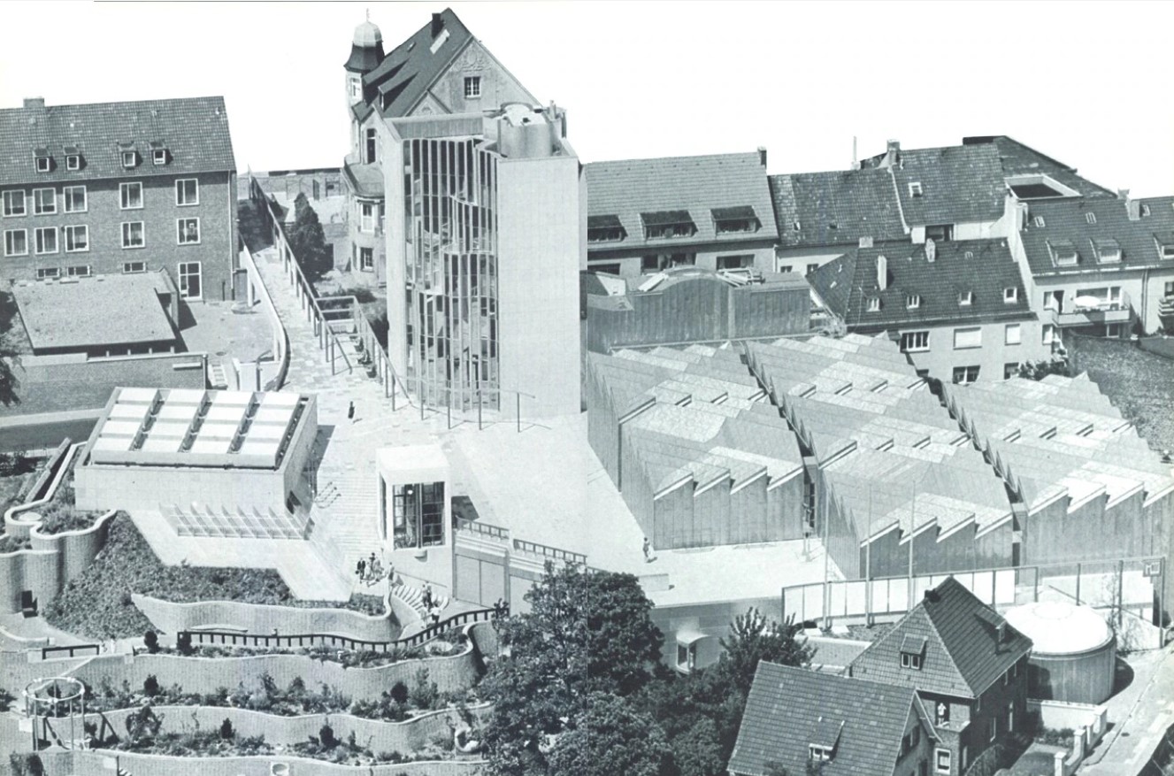 Since the 1990s, it has not been uncommon for architects and their clients to break with the two previously prevailing alternatives—temple or warehouse—for art museums, but such a typological rupture had been dramatically anticipated two decades earlier, by Hans Hollein in the Museum Abteiberg, a unique building tailored to an unusual site and a distinctive collection. The Pritzker Prize laureate of 1985, who was born in Vienna in 1934 and is an artist, teacher, and creator of furniture, interiors, and exhibitions, has at Mönchengladbach assembled a virtual primer of museum design, one that has brought a heretofore unknown visceral excitement to the vocation of museum going. In contrast to later attempts in this genre, however, Hollein’s achievement has contributed to an intensified appreciation of the museum’s contents rather than making a personal statement at their expense.