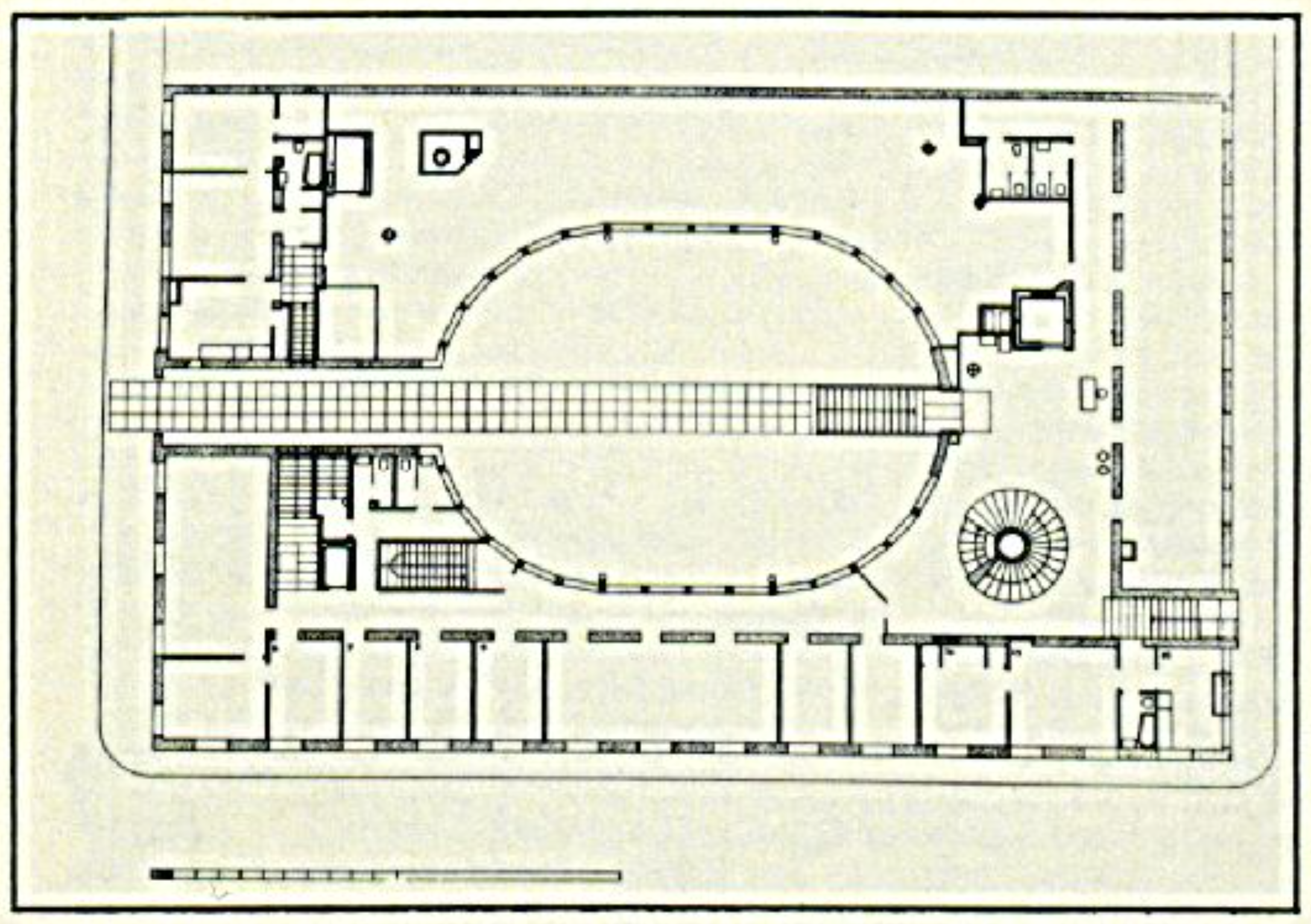 The building allowed opportunities to investigate a number of innovations in doors, windows, and partitions. These were manufactured according to Lewerentz’ own patents and were marked by great simplicity and durability. The detail which Lewerentz himself would mention was in the employees’ coatroom. He divided the space into stalls with dividing walls of steel and wire mesh. Doors to these were self-closing, and each employee was given a key. The system proved to be inexpensive, and demonstrated how Lewerentz succeeded in keeping himself within the framework of a tight budget. He noted with satisfaction that he had kept within the means allotted by the Parliament down to the penny.