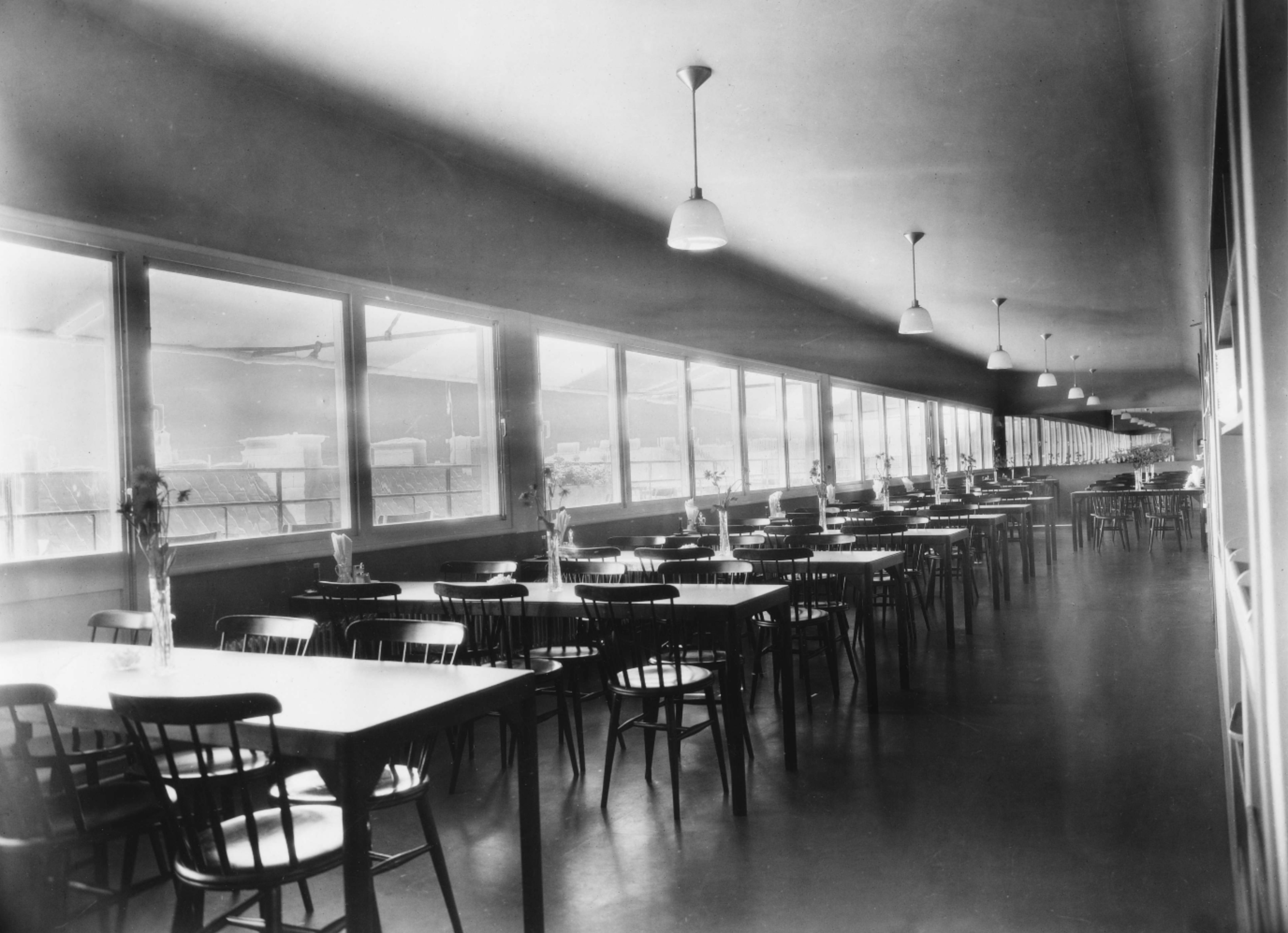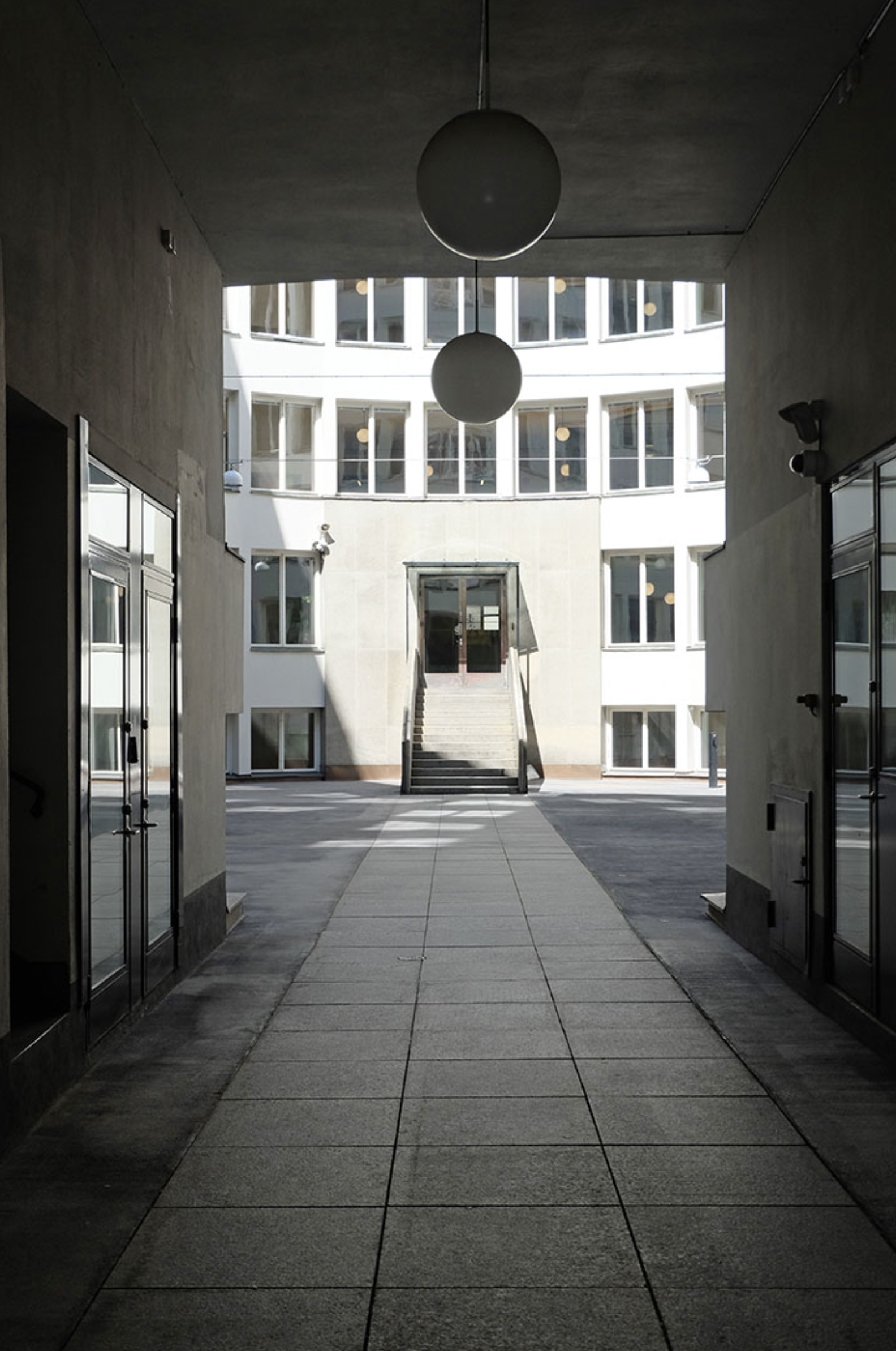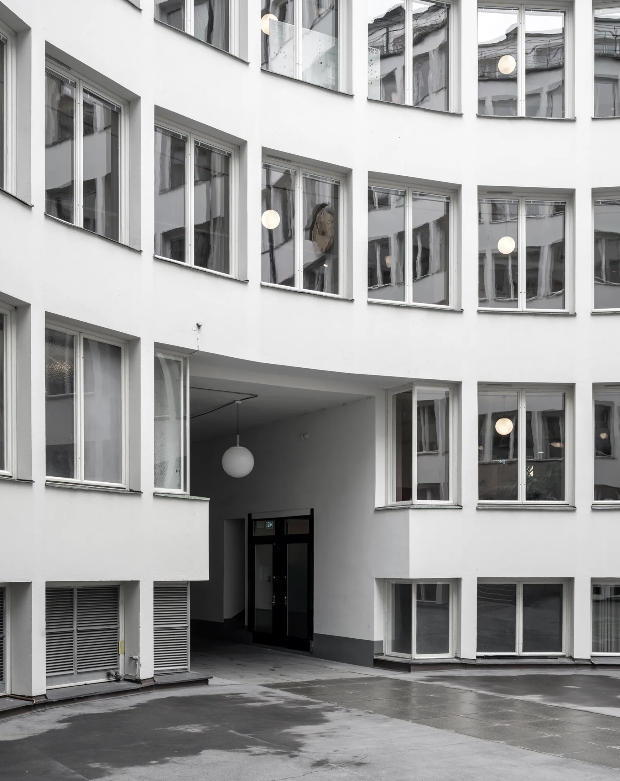 The building was meant as a place of work, and in Lewerentz’ opinion, the light should be generally and evenly distributed. Consequently, the windows onto the courtyard are larger than those onto the streets, compensating for its more limited daylight. Electric lighting was evenly distributed in points to avoid the need of task lighting as well as to allow flexibility in furniture arrangements. Walls and ceilings were in an off-white tone, while the floor covering was a dark, almost black linoleum.