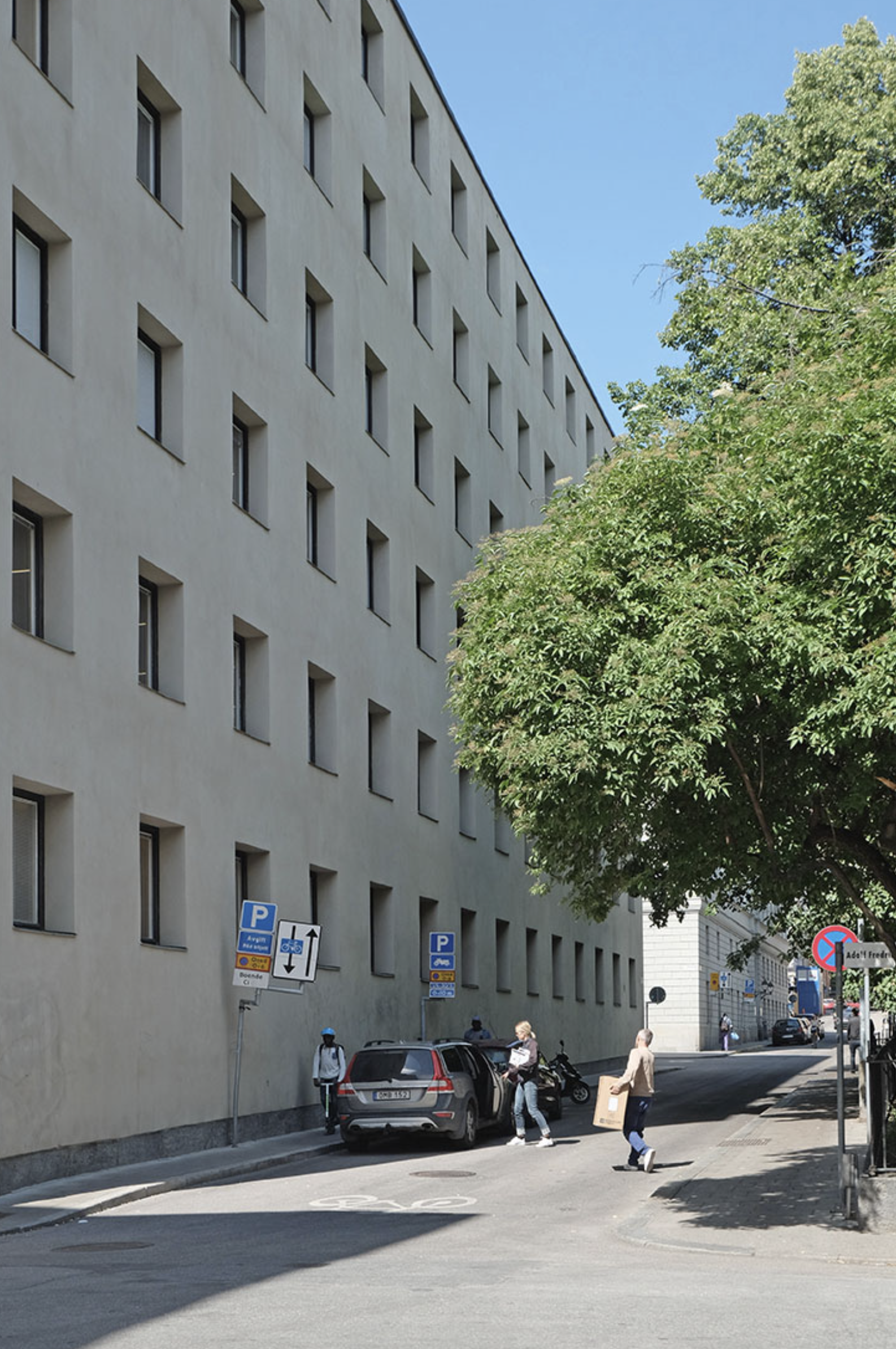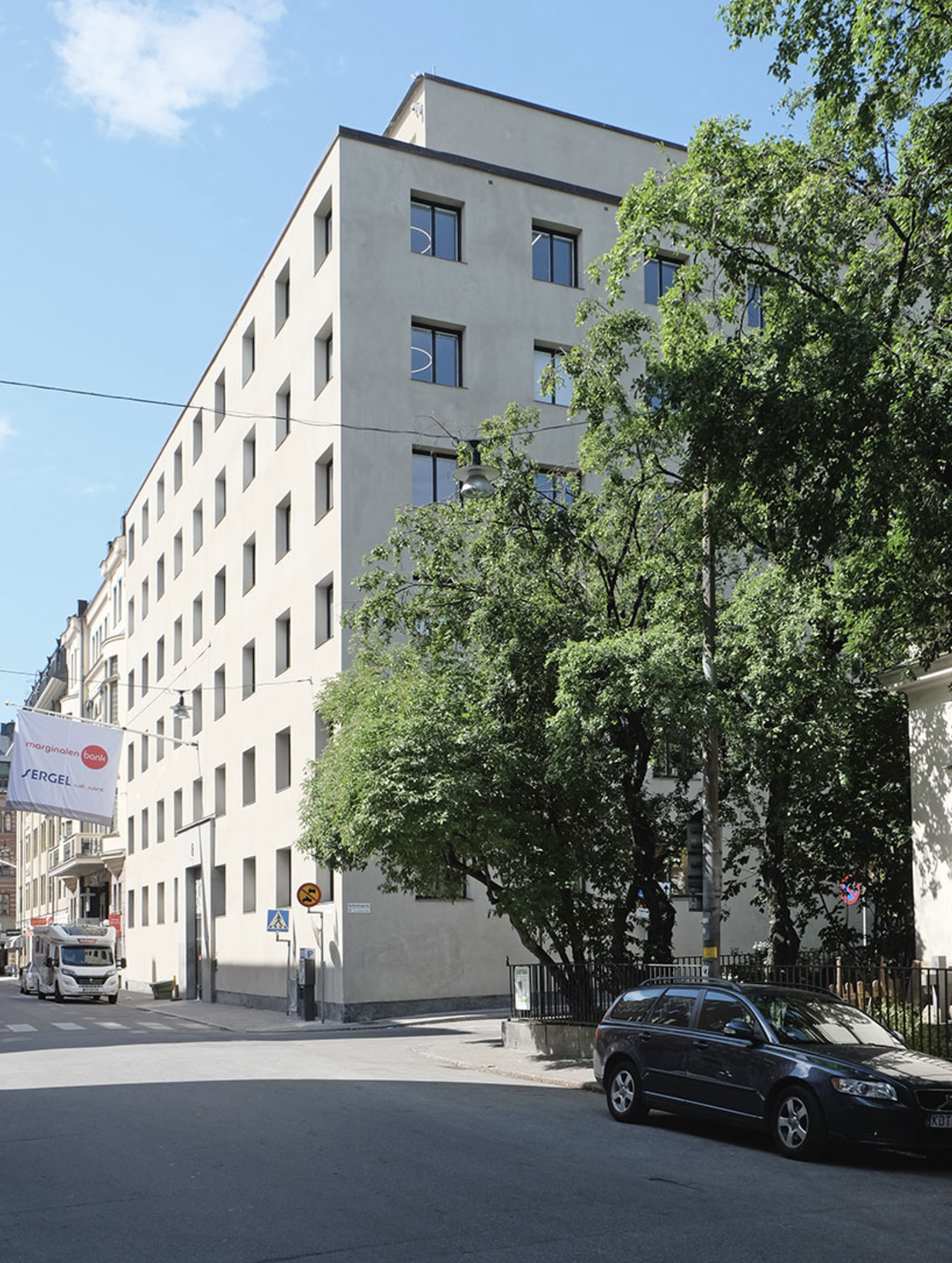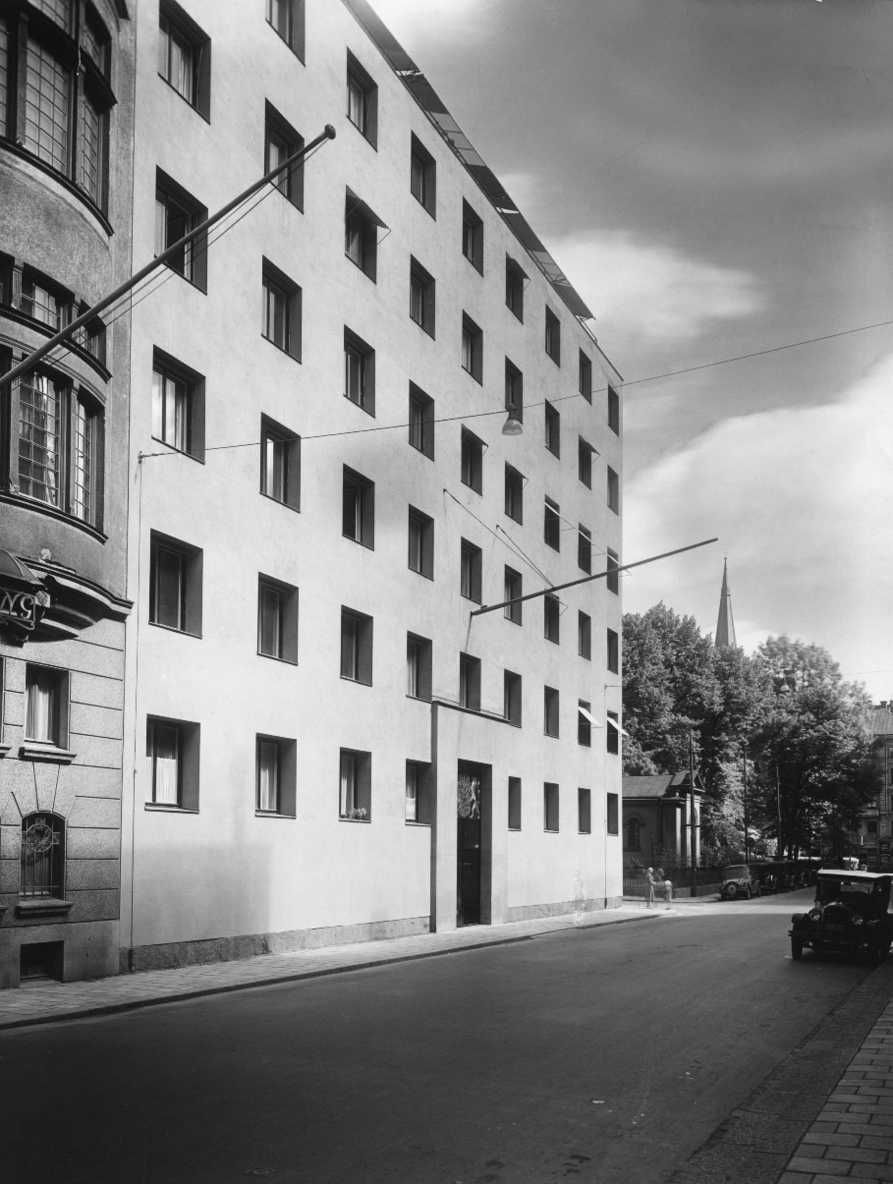 The new building in Stockholm for the Social Security Administration was the result of a closed competition organized by the National Board of Building and Planning. The Administration was in acute need of office space, as the temporary offices in Auditorium on Norra Bantorget were altogether too cramped and did not satisfy fire safety regulations.