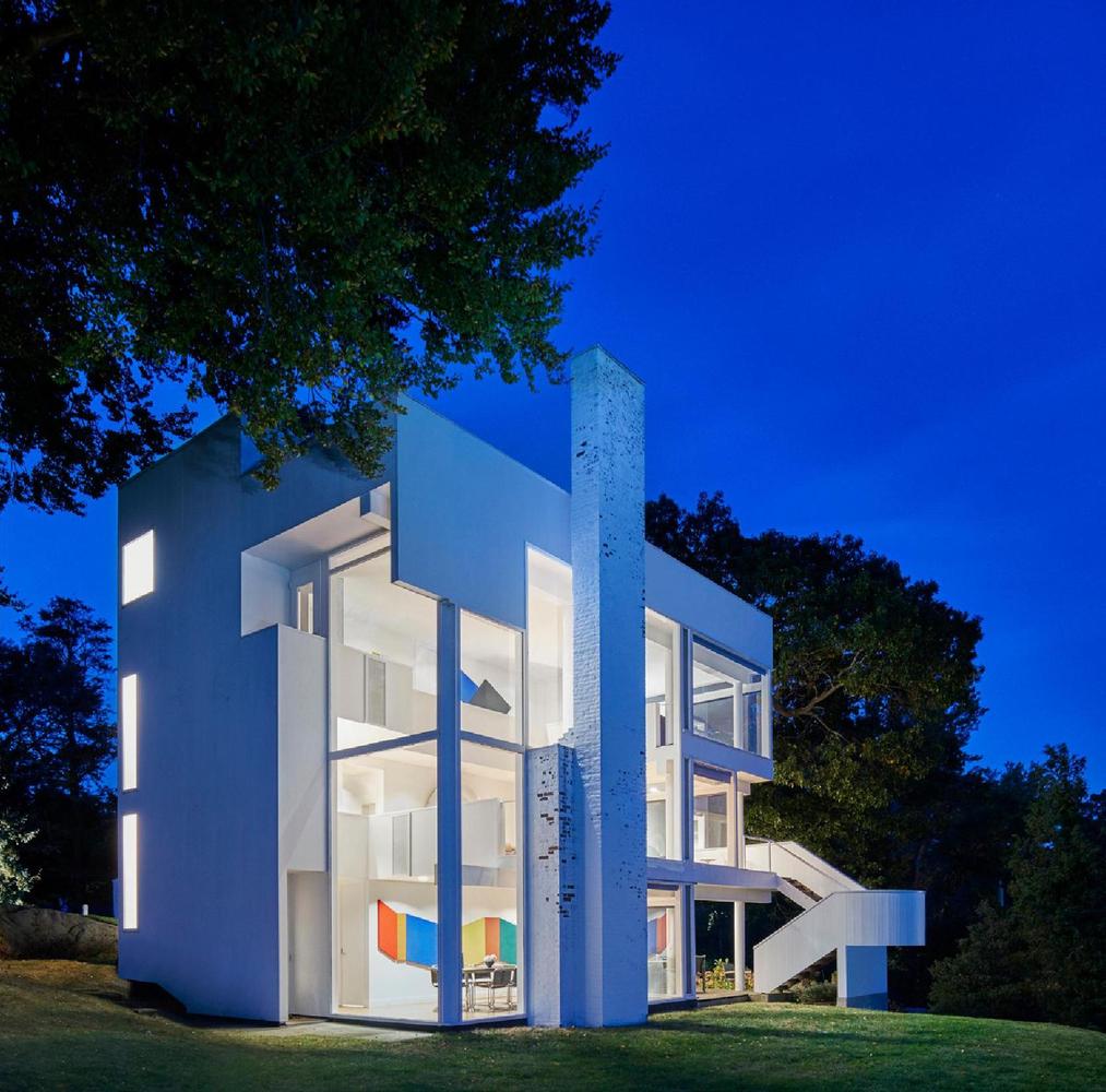 Smith: The white helps you appreciate the nature, for sure. But at night, the interesting thing is, everything reflects off the glass. The view disappears, and you see your reflection.