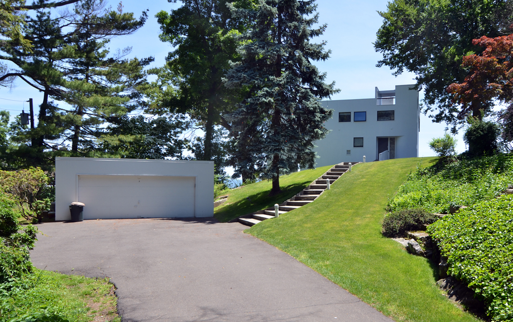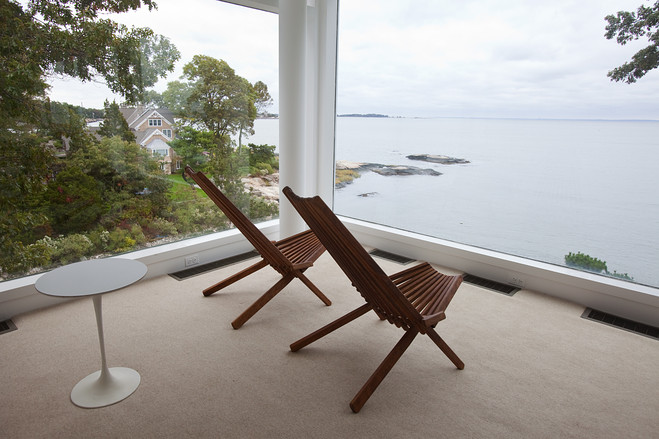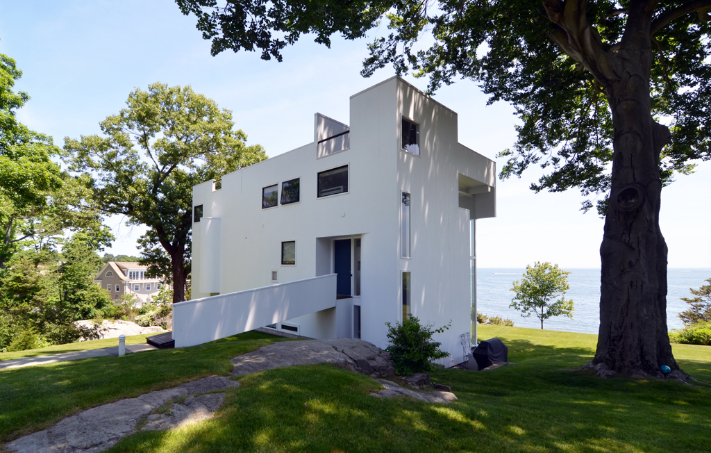 Meier: I said, “Wow. This is terrific!” The slope down to the water made the views stunning. But it was almost entirely rock. The excavation cost to do a traditional horizontal house would have been astronomical. The only way to build on this site was to build vertically.