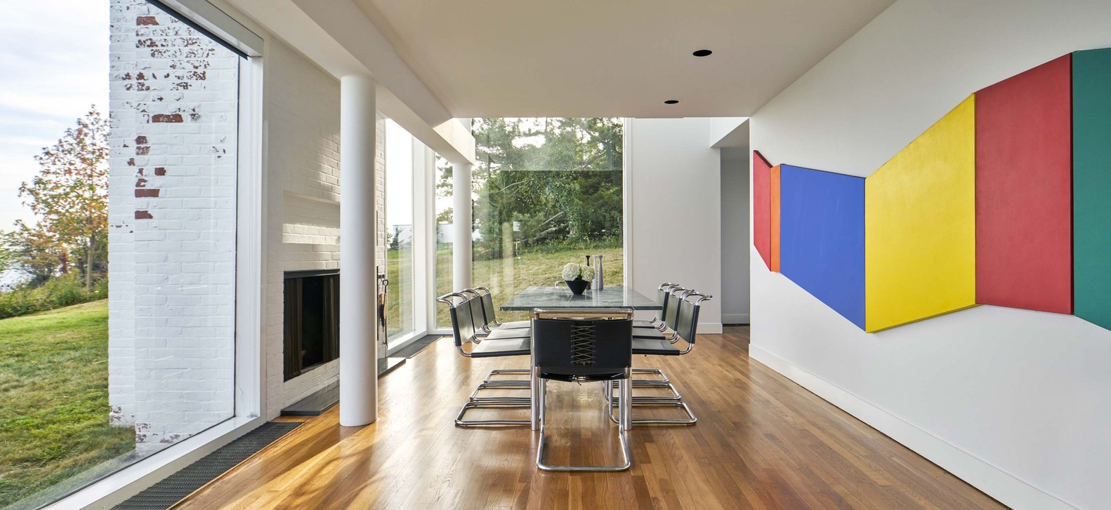 One of the glass pieces is almost three stories high. I remember when it first arrived, they brought it in by boat. We replaced it a few years ago, and we had to crane it over the house. During construction, these big poles went into the ground. Then, when it was done, it didn’t look much different because all that openness was still there. That was a big shock to move in finally and realize it looks a lot like it did early on.