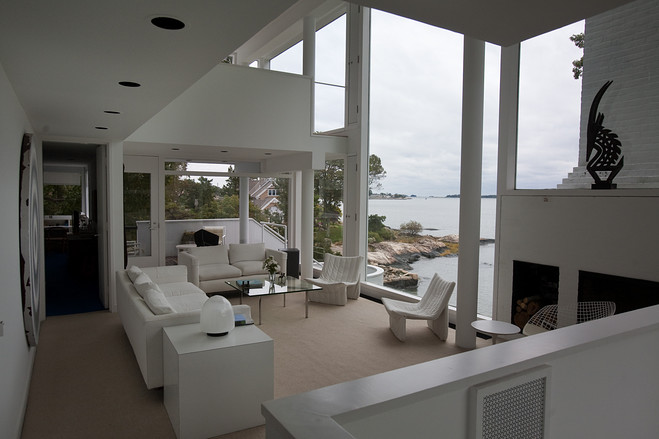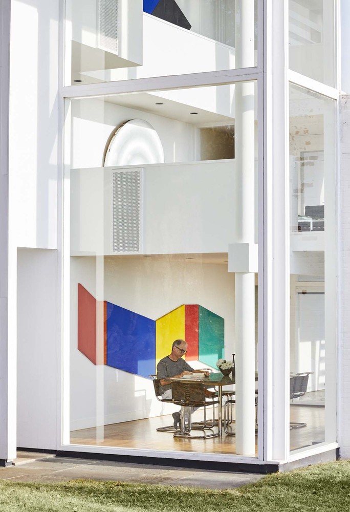 Before he championed crisp lines in an era of postmodern decadence or transformed Los Angeles’s cultural topography with the Getty Center, architect Richard Meier designed a house on a rocky site on Long Island Sound that exhibited many of the moves that would come to define his career. From the front, the Smith House—located in Darien, Connecticut, and completed in 1967—is a narrow, three-story white box. Its 2,800 square feet of living space has simple, industrial-inspired hardware and modestly scaled bedrooms, but it derives its considerable drama from the nearly the full-height glass walls that face the Sound and create sweeping views of the seascape. The house has been in the Smith family since they commissioned it, five decades ago. On the occasion of its 50th anniversary last year, photographer Mike Schwartz shot a new series of photographs of the home. In the following pages, we offer an exclusive first look at Schwartz’s images. We also mark the occasion by uniting Meier with Chuck Smith, who was 8 years old when the family moved in. On a recent morning at the house, the two met with Surface to discuss the design—one of the architect’s early triumphs.