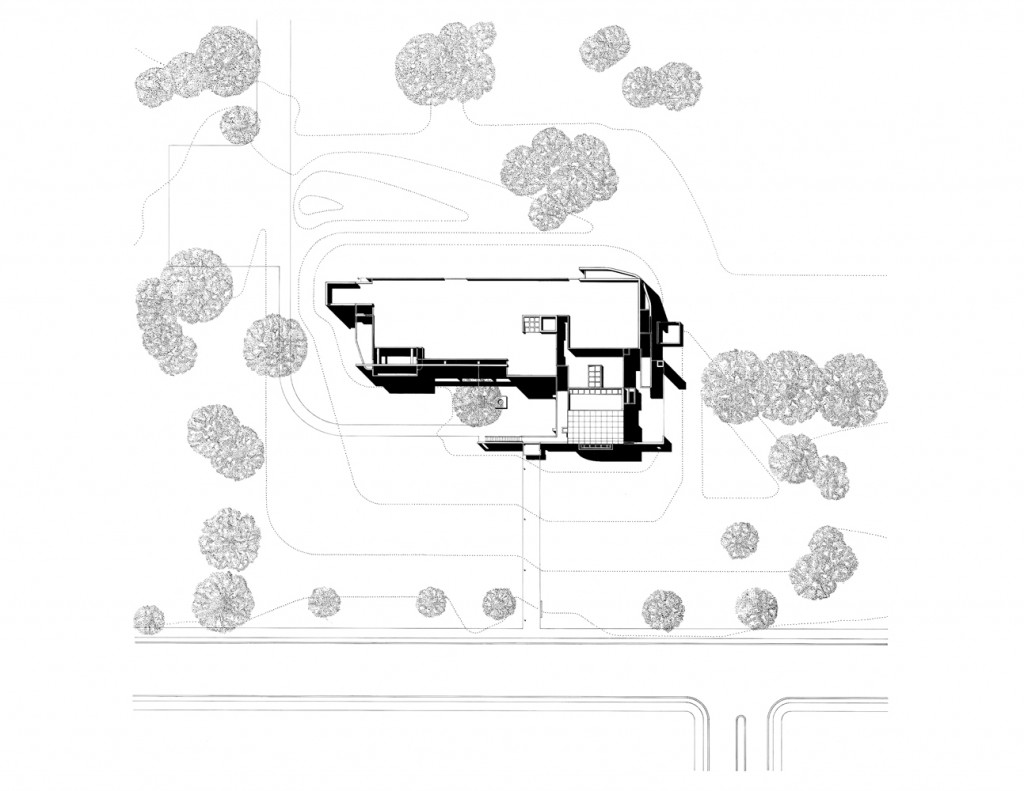 The building’s concept addresses the seminary’s dual role as an introverted institution devoted to contemplation and scholarship, and an extroverted one engaged in fostering religious understanding in the world at large. It consists of a partially cloistered, inward-directed organization of spaces, a place for peaceful gathering and quiet study. At the same time, it is intended to be the center of a larger domain that reaches out to the public, informs it, and invites it to take part. As such, the building’s only organizational hierarchy is the architectural distinction made between public and private areas of activity: public spaces dominate private ones.