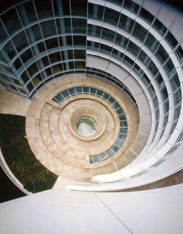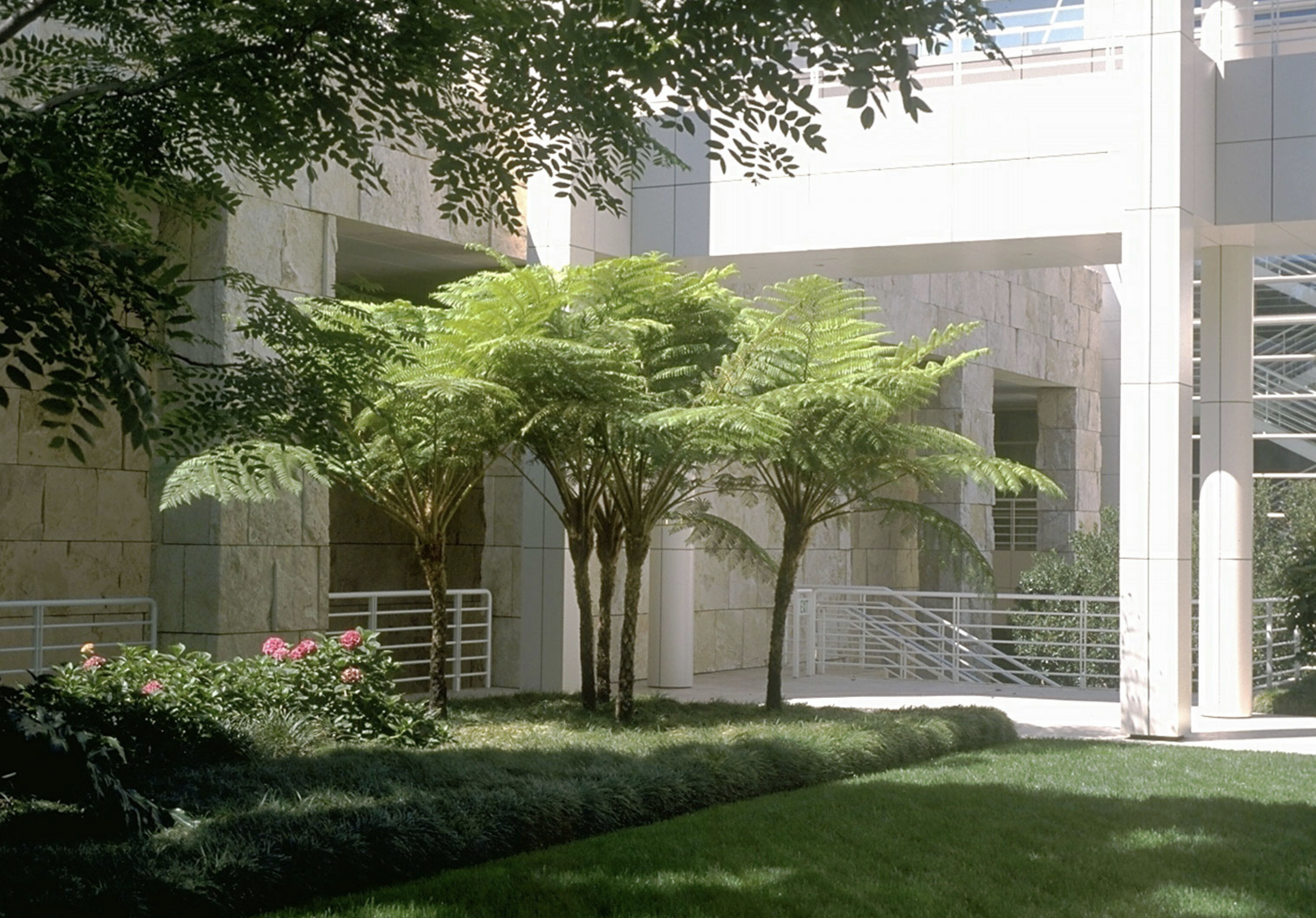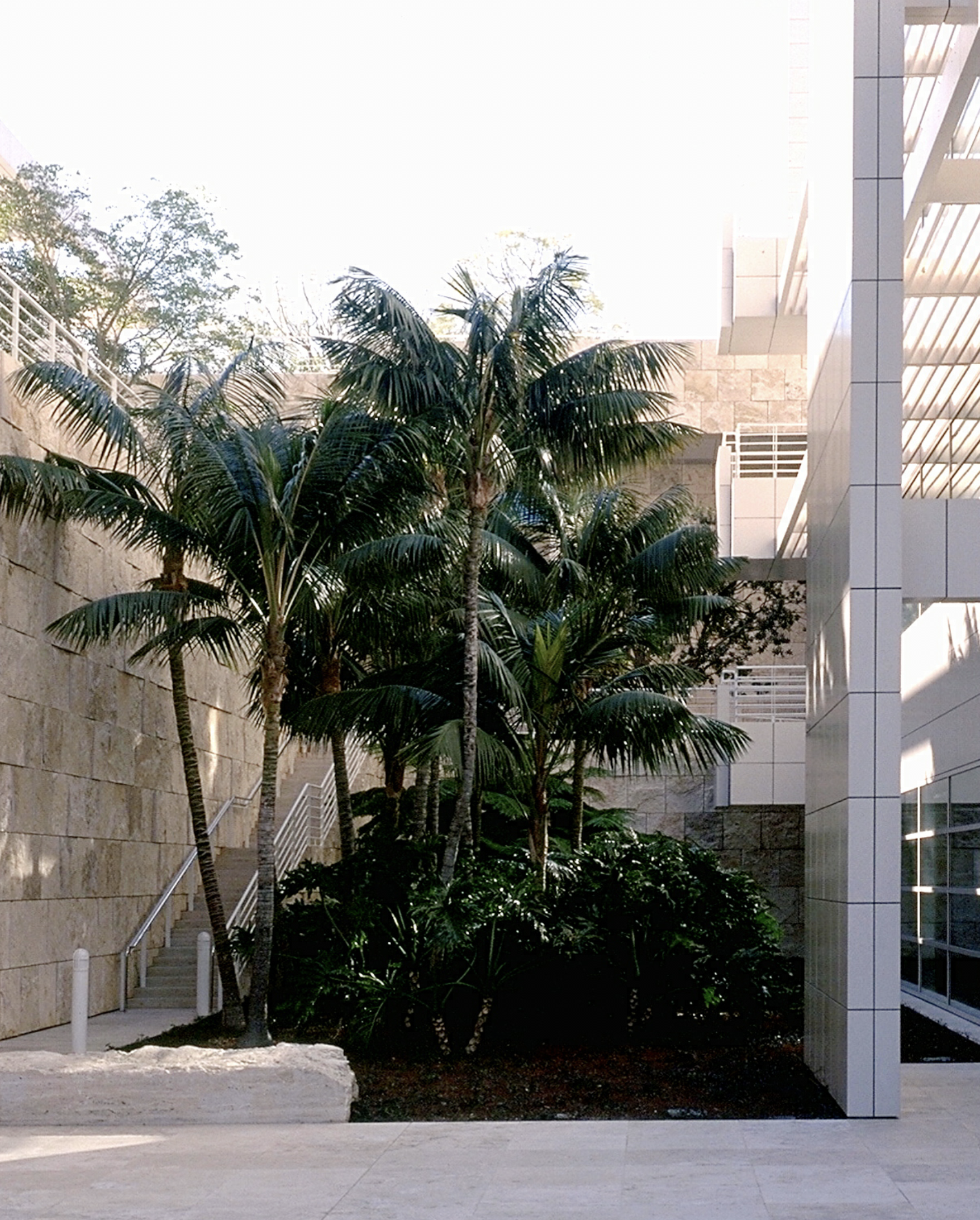 The deflecting axes of the overall layout and the focus on central circular forms in both the Museum Entrance Hall and the plan of the Research Institute exhibit elements evident in Meier's late work. Inconsistent elements in the completed complex include the decoration of the Museum's interiors by the architect and interior designer Thierry Despont and the central garden design by the artist Robert Irwin. Although the decision to create formal interiors consistent with the items of the collection offers some justification, the installation of Irwin's self-important scheme for the Central Garden is most unfortunate.