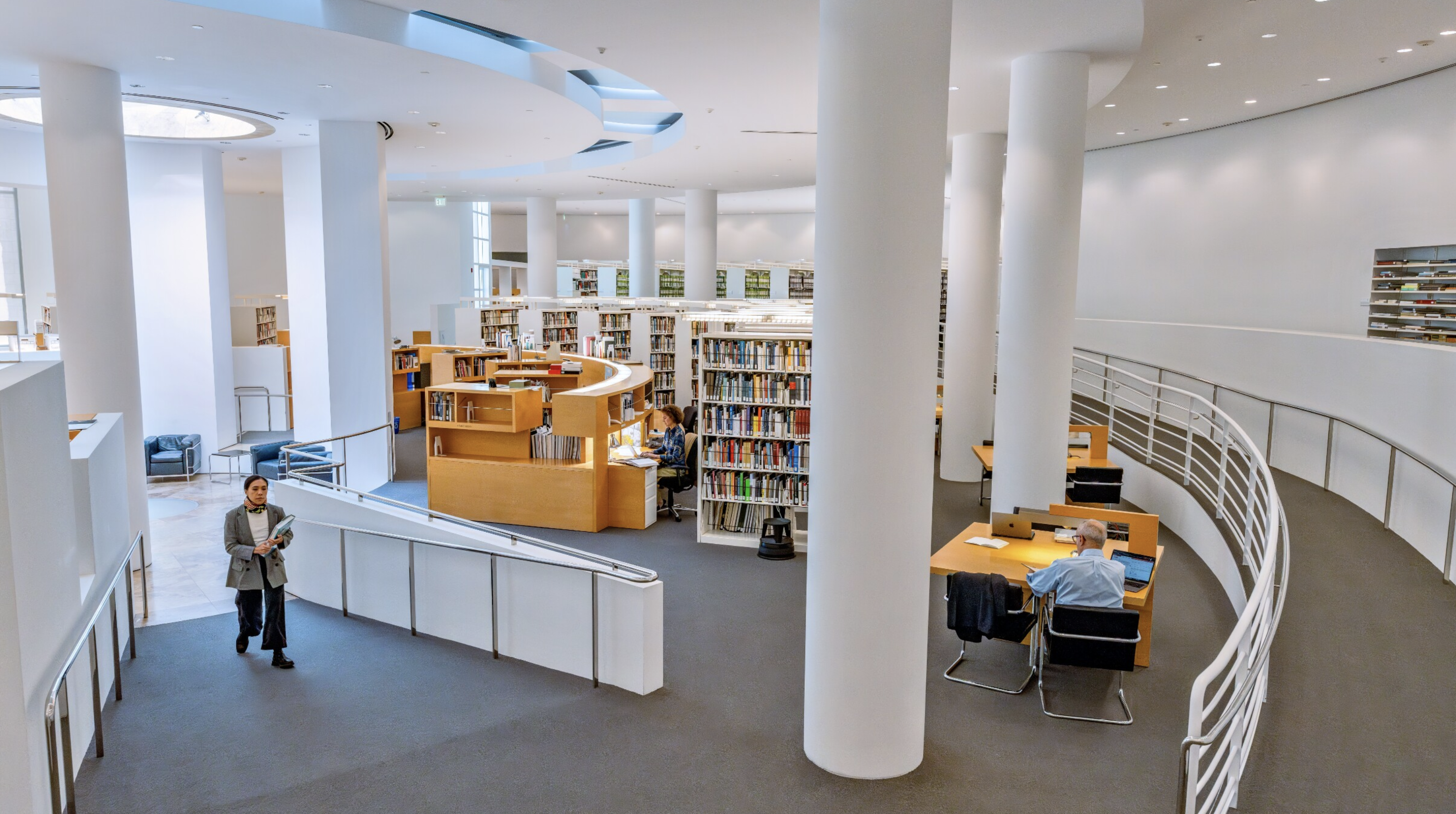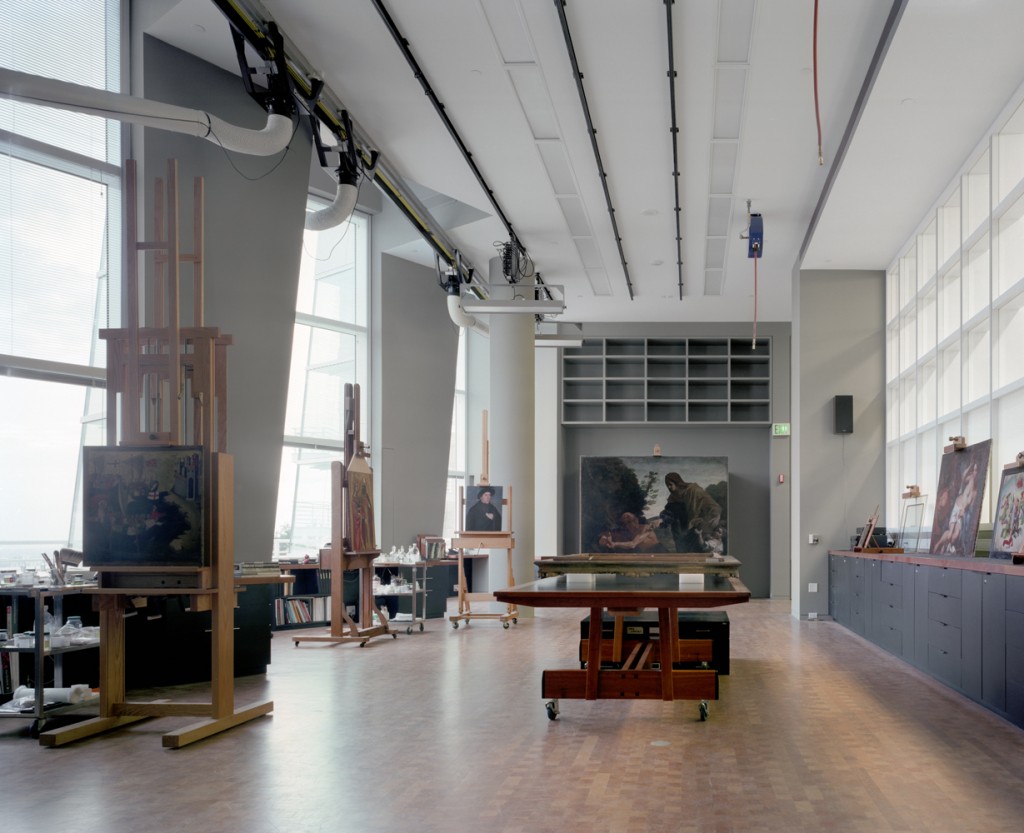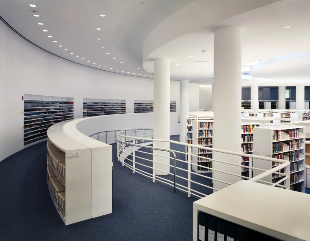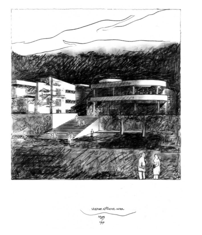 The deflecting axes of the overall layout and the focus on central circular forms in both the Museum Entrance Hall and the plan of the Research Institute exhibit elements evident in Meier's late work. Inconsistent elements in the completed complex include the decoration of the Museum's interiors by the architect and interior designer Thierry Despont and the central garden design by the artist Robert Irwin. Although the decision to create formal interiors consistent with the items of the collection offers some justification, the installation of Irwin's self-important scheme for the Central Garden is most unfortunate.