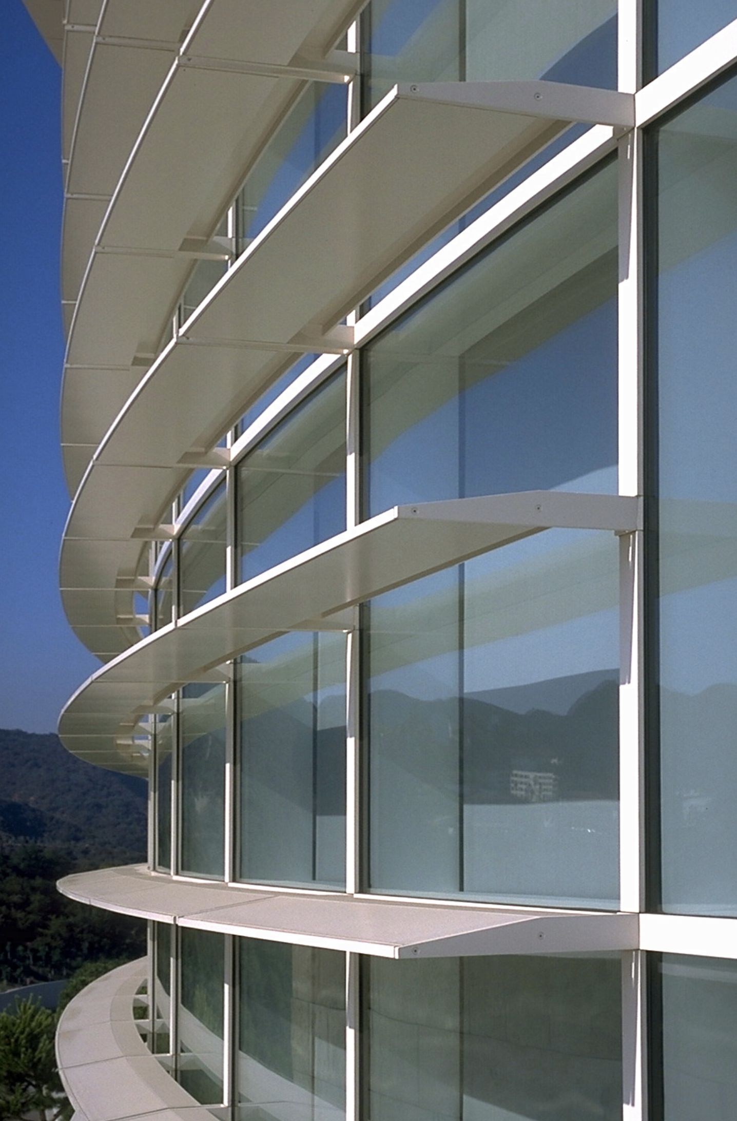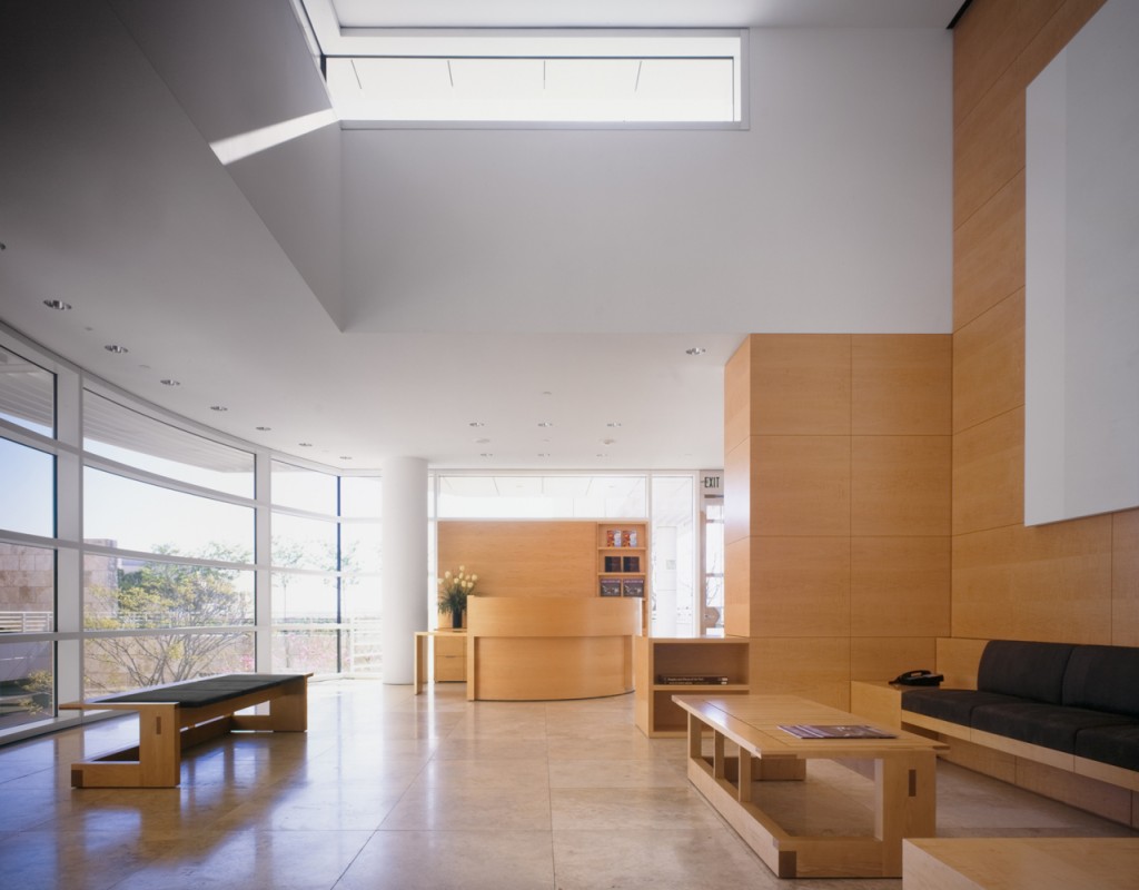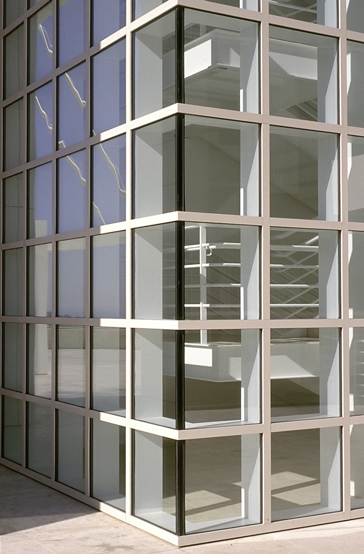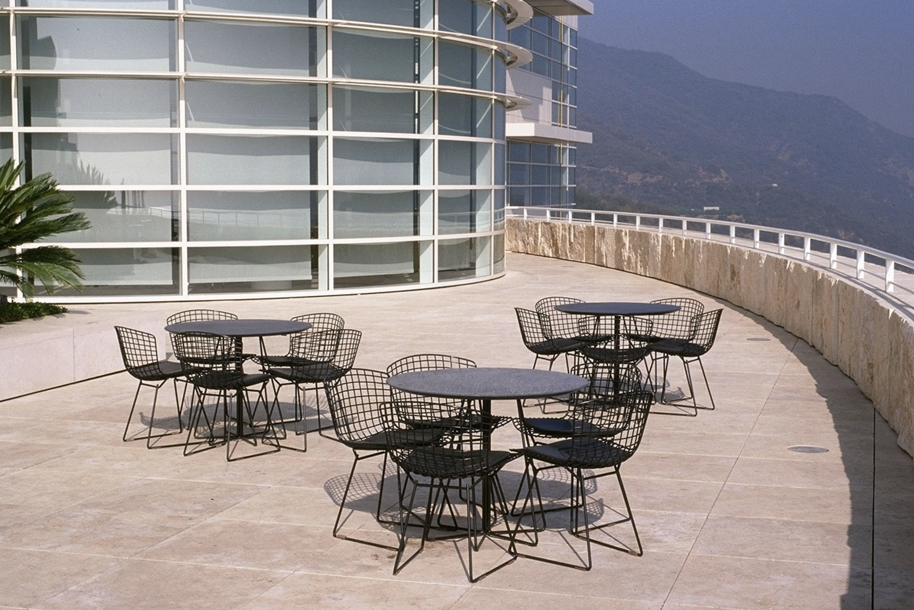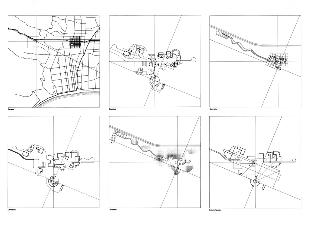 Although the individual steel-frame and reinforced-concrete structures vary in form, they continue the uniform aesthetic by repeating Meier's characteristic 1920s vocabulary of ship railings, flat roofs, and extensive glazing. References to the work of Le Corbusier, Rudolph Schindler, Frank Lloyd Wright, and others provide the distinguishing features between the individual structures and the institutions they house. The design of the Research Institute and the Museum rotunda stand out as original and sensitive compositions, whereas the other buildings appear conservative and understated, achieving their greatest success in dramatic terraces and passages that carefully frame views of Los Angeles, the mountains, and the ocean.