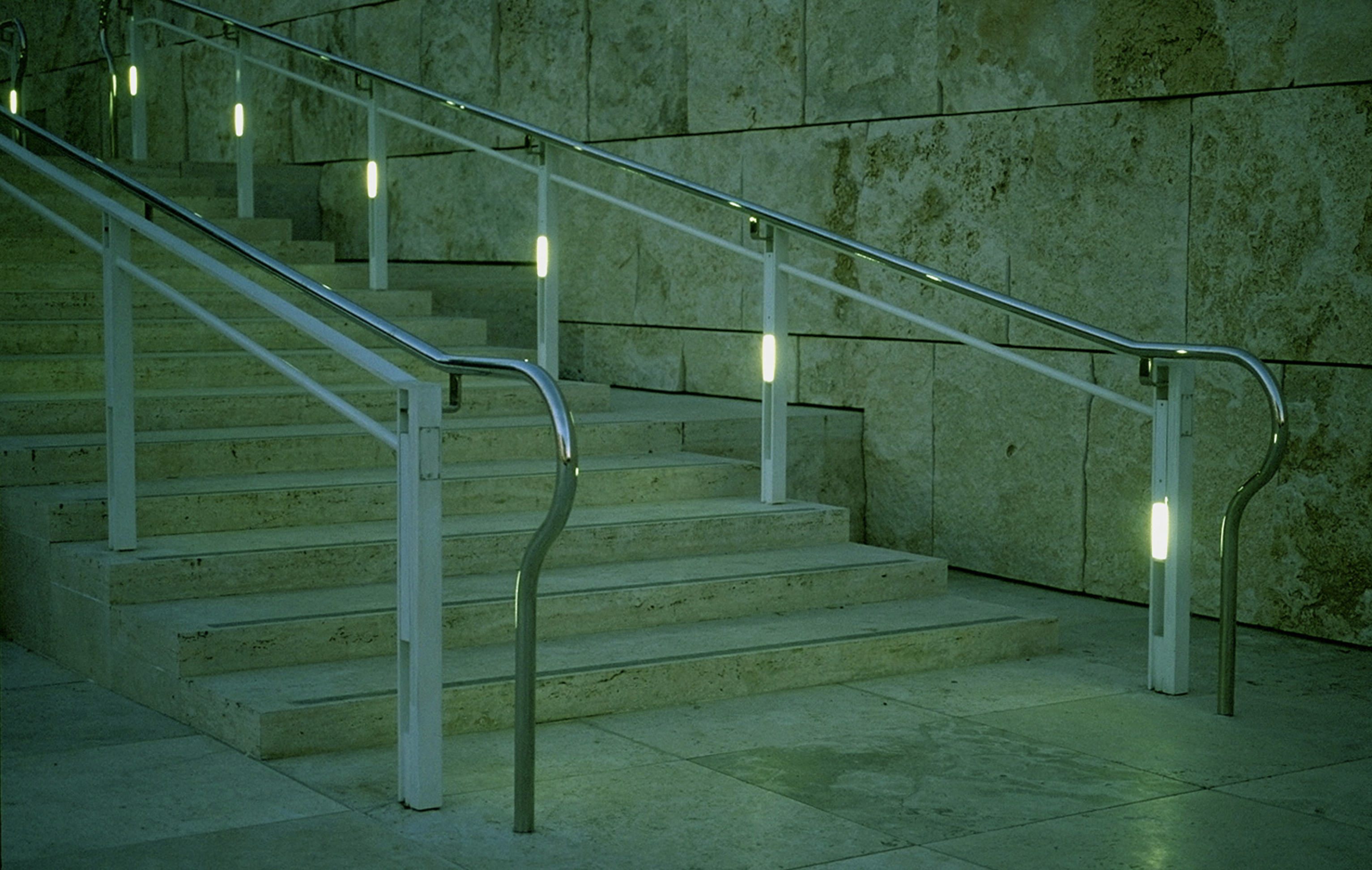 Irwin's flagrant excess ignores and mars the tranquility and importance of the place expressed in Meier's earlier plan for the garden. Discounting Irwin's incompatible intrusion, Meier's scheme reaches its highest level in the equipoise attained between the luminous aesthetic of buildings bathed in golden California sunlight and the spectacular spaces and landscape to which they relate. Architectural historian and critic Charles Jencks has praised Meier's ability to create a sense of intoxicating disorientation through the combination of all-encompassing space and continuous surfaces that promote a sense of suspended time and transcendence. At the Getty, this aesthetic experience, which Jencks calls "liminal space," pervades the Getty complex and provides an uplifting experience for the visitor and a true work of art.
