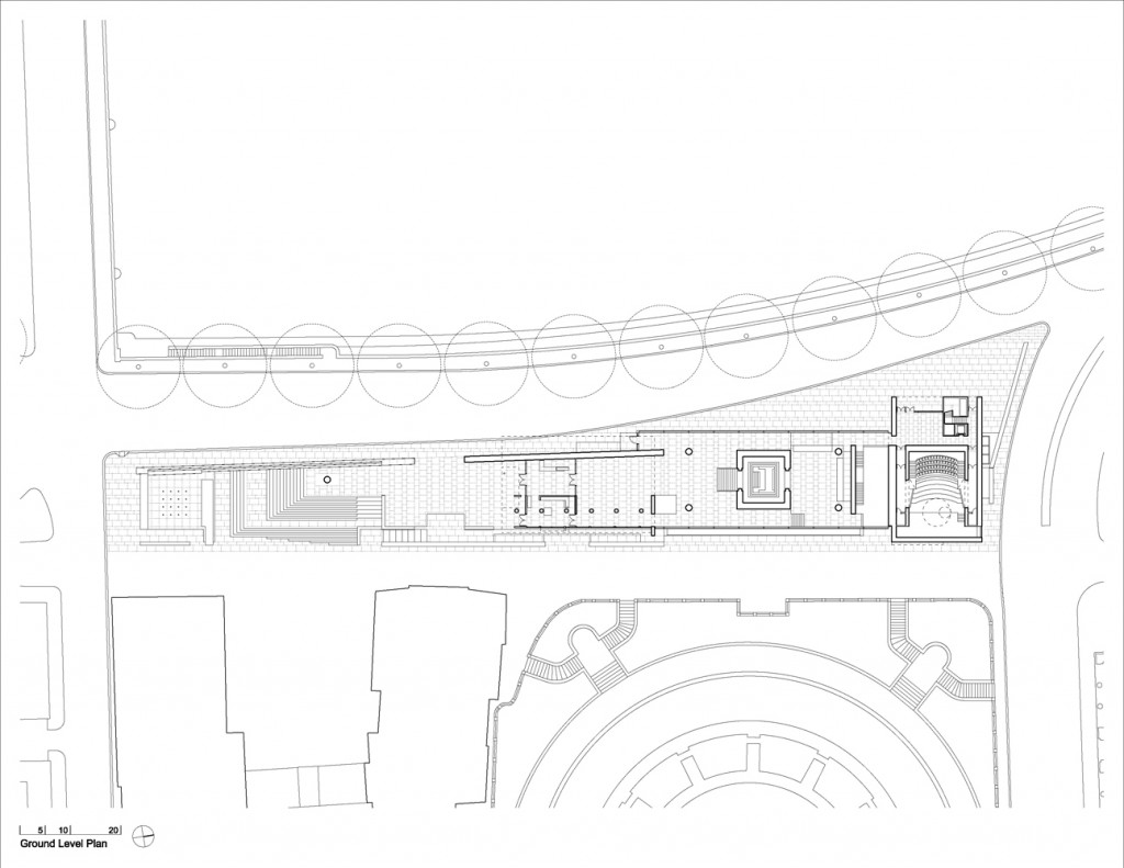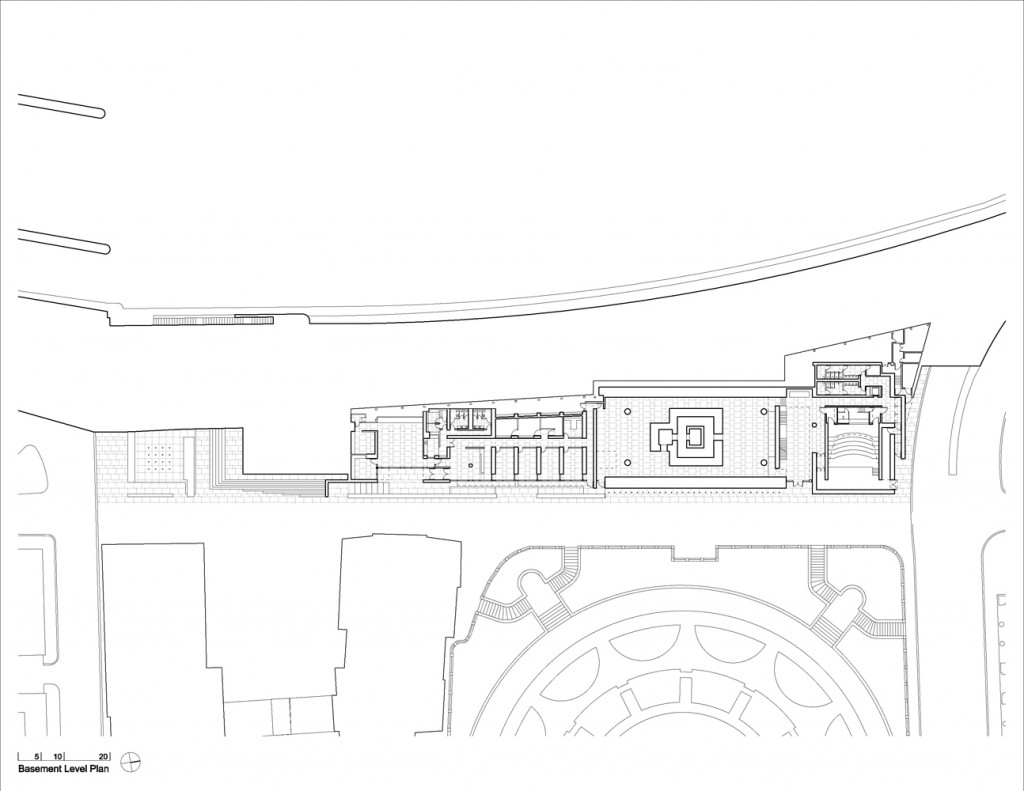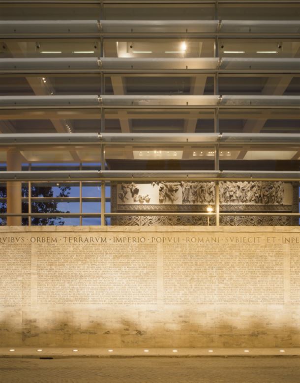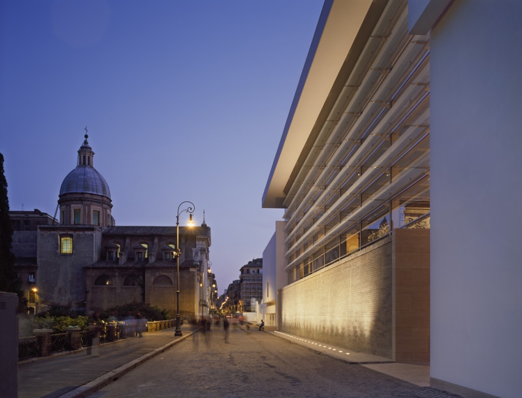 Although housing and protecting the ancient altar was the main focus of this museum, the building also provides space for temporary exhibitions and installations dedicated to archaeological themes and a state-of-the-art digital library of Augustan culture. An outdoor roof terrace above the auditorium functions as an essential part of the circulation of the museum and includes a contiguous bar and café with views over the Mausoleum of Augustus to the east and the Tiber River to the west. |