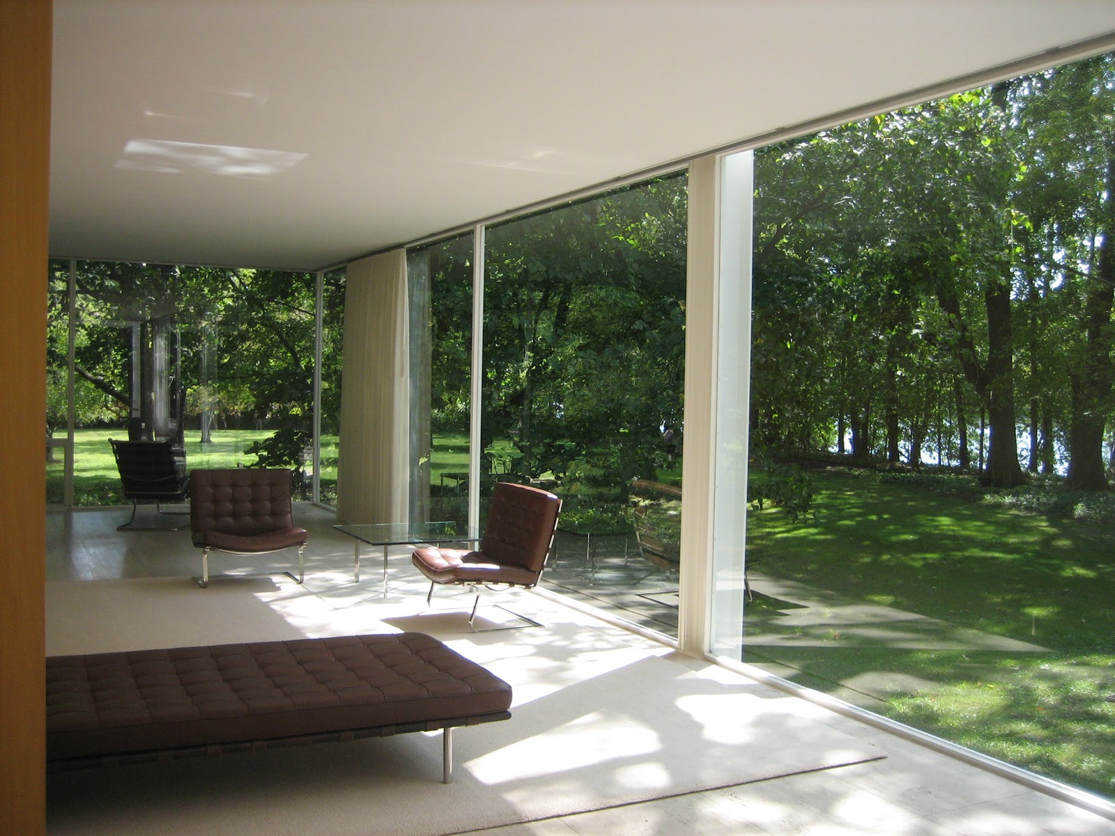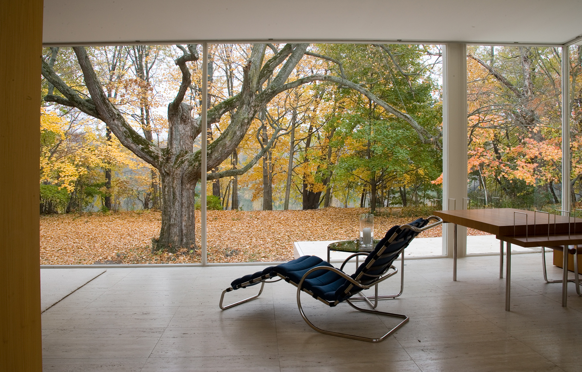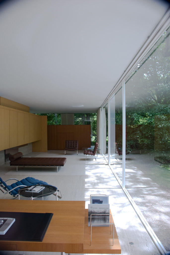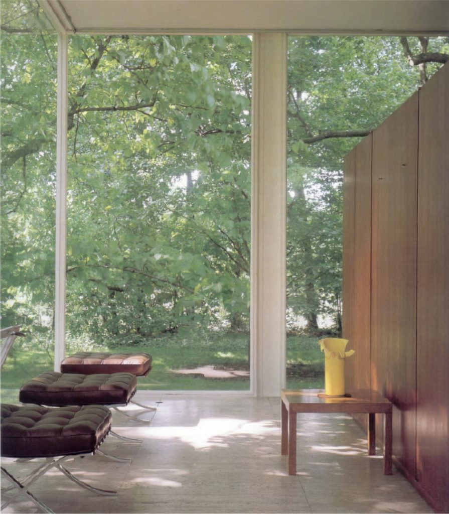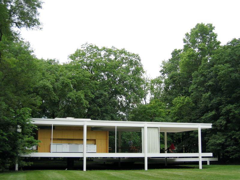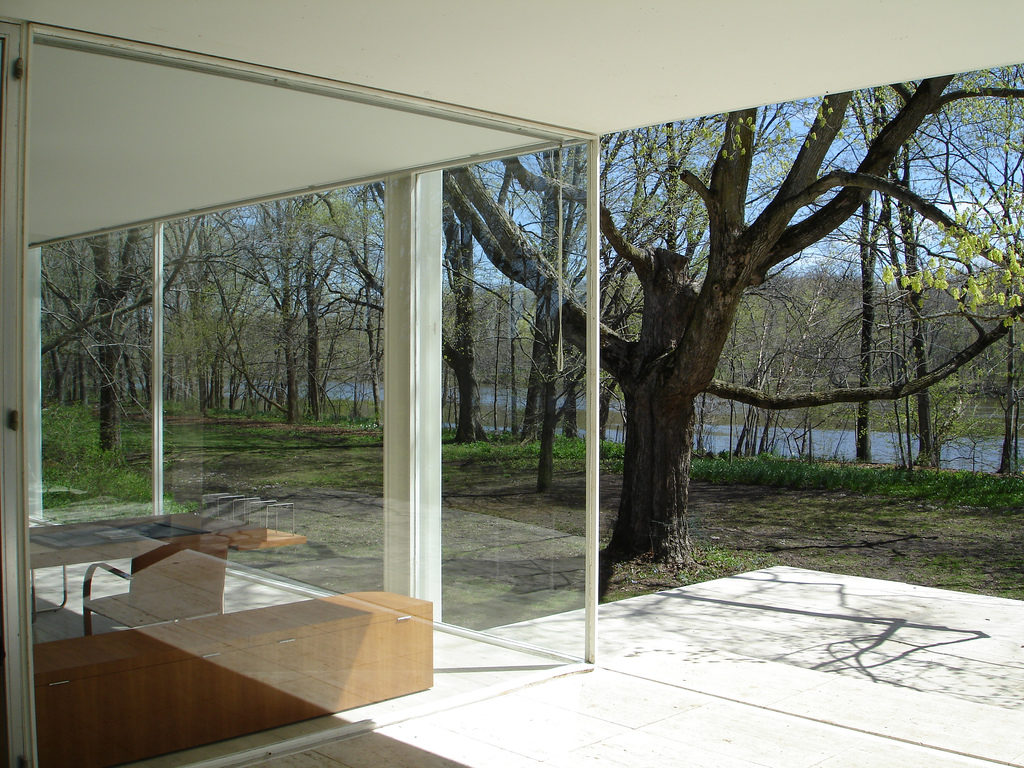 In an interview given a few years later, Mies explained the principles of the glass pavilion as they has been realized in the Farnsworth house: "Nature, too, shall live its own life. We must beware not to disrupt it with the color of our houses and interior fittings. Yet we should attempt to bring nature , houses and human beings together into a higher unity. If you view nature through the glass walls of the Farnsworth house, it gains a more profound significance than if viewed from outside. That way more is said about nature — it becomes a part of a larger whole. " Mies concluded his work in domestic design with this building and the contemporaneous unbuilt scheme for a "50 x 50" house; he seems to have had little else to say about domestic construction after the conclusion of these two open pavilions, both for living in direct contemplation of nature.