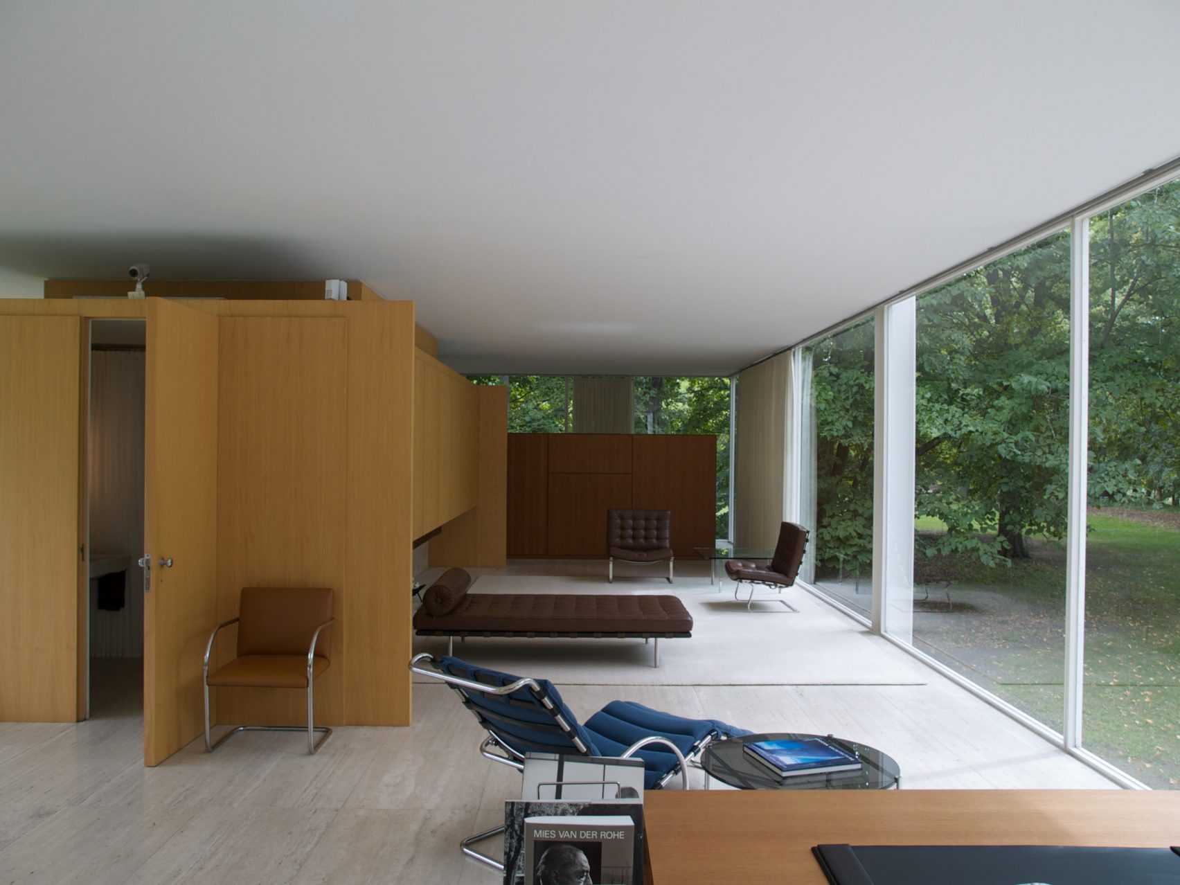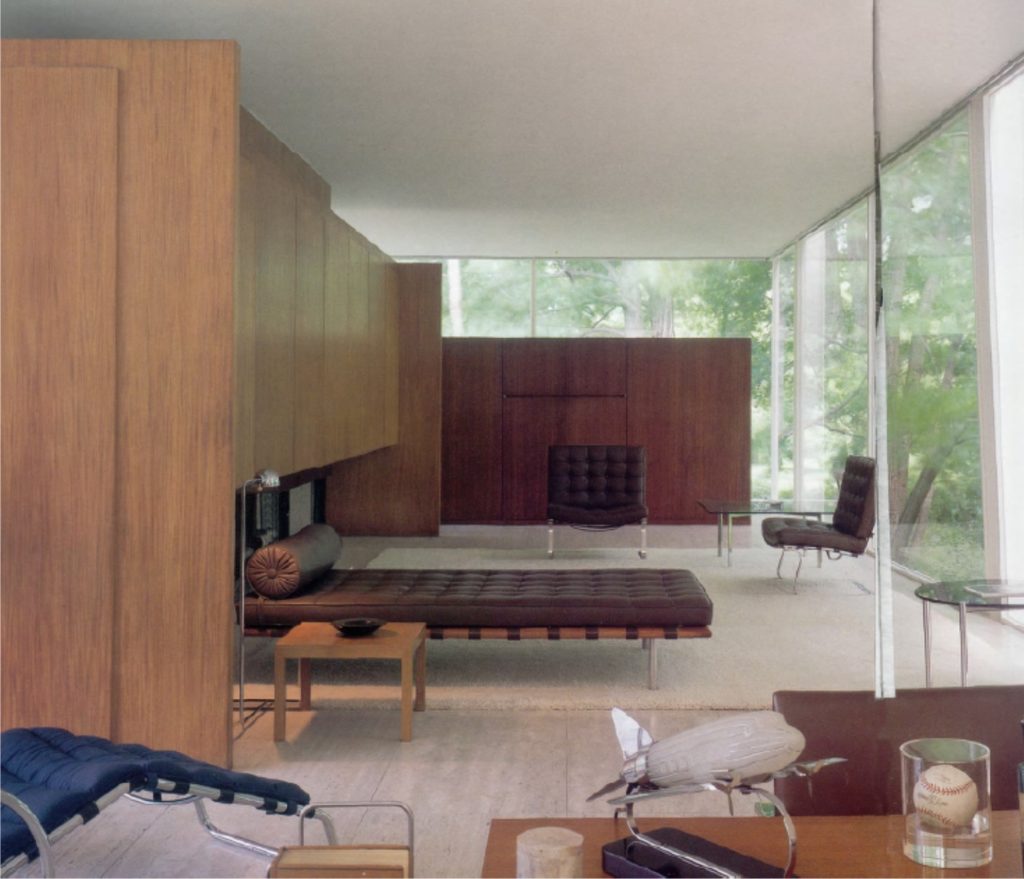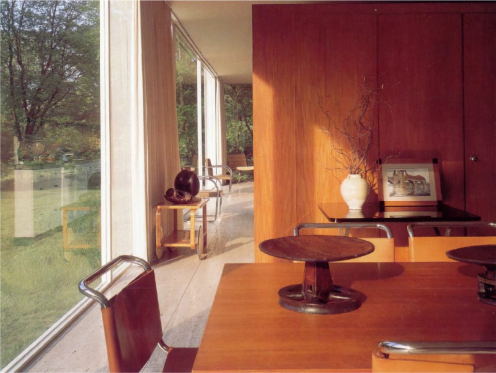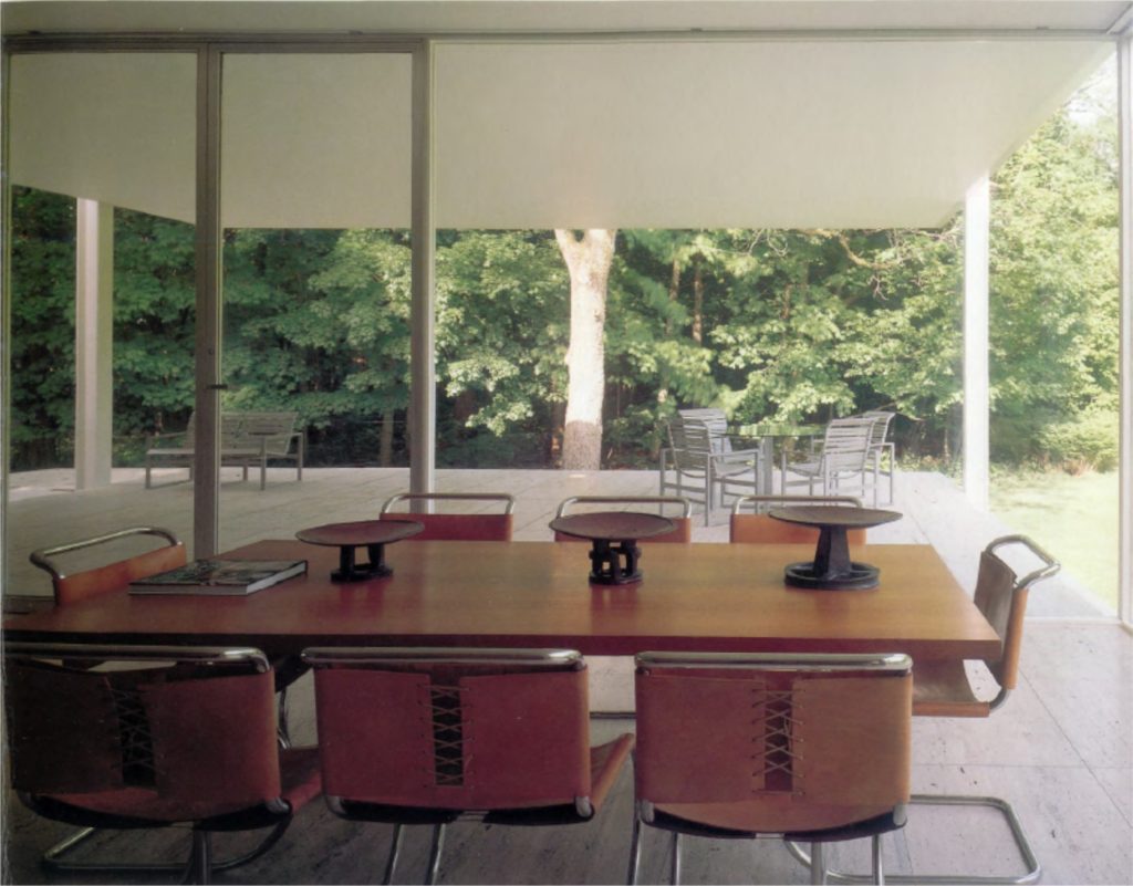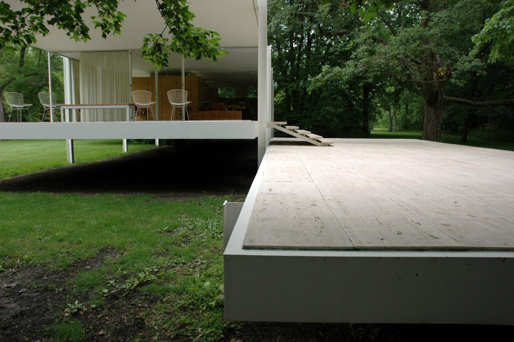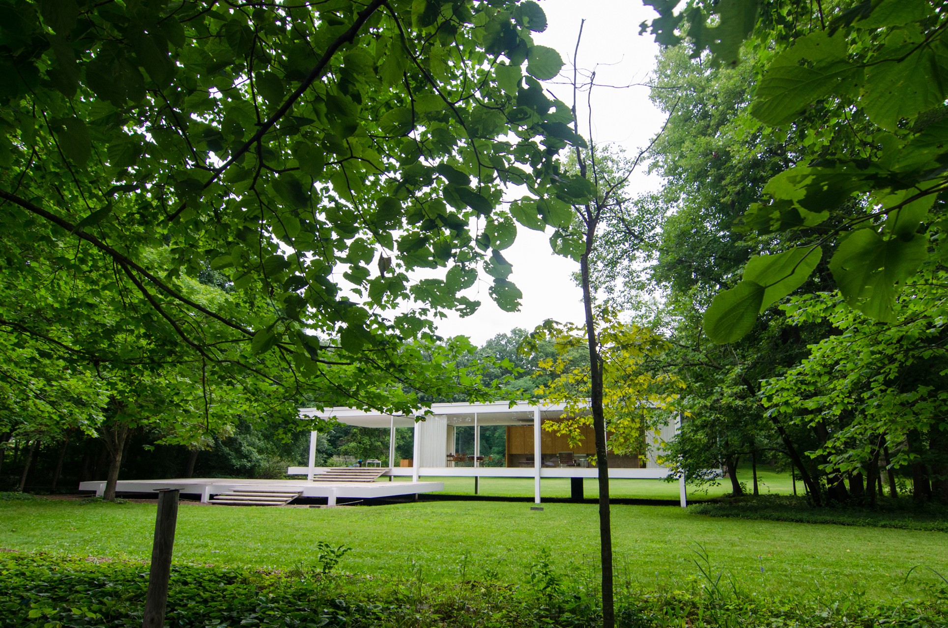 In an interview given a few years later, Mies explained the principles of the glass pavilion as they has been realized in the Farnsworth house: "Nature, too, shall live its own life. We must beware not to disrupt it with the color of our houses and interior fittings. Yet we should attempt to bring nature , houses and human beings together into a higher unity. If you view nature through the glass walls of the Farnsworth house, it gains a more profound significance than if viewed from outside. That way more is said about nature — it becomes a part of a larger whole. " Mies concluded his work in domestic design with this building and the contemporaneous unbuilt scheme for a "50 x 50" house; he seems to have had little else to say about domestic construction after the conclusion of these two open pavilions, both for living in direct contemplation of nature.