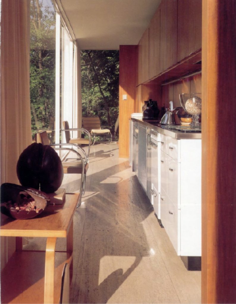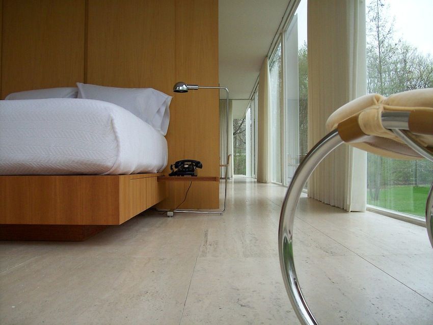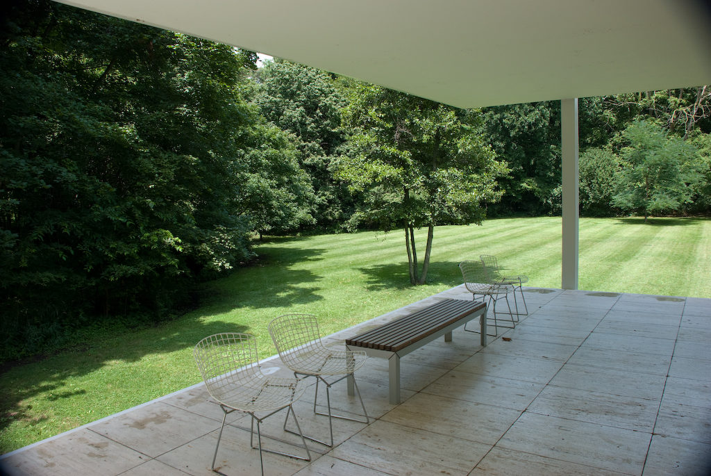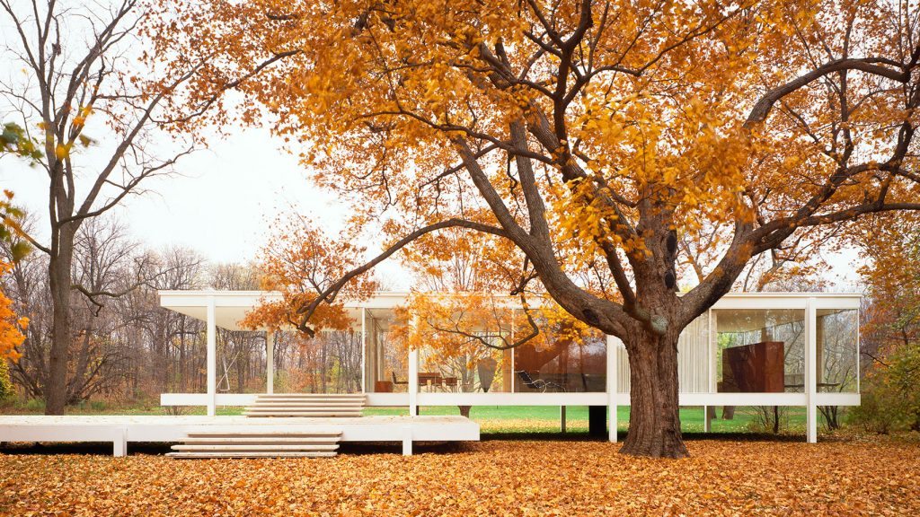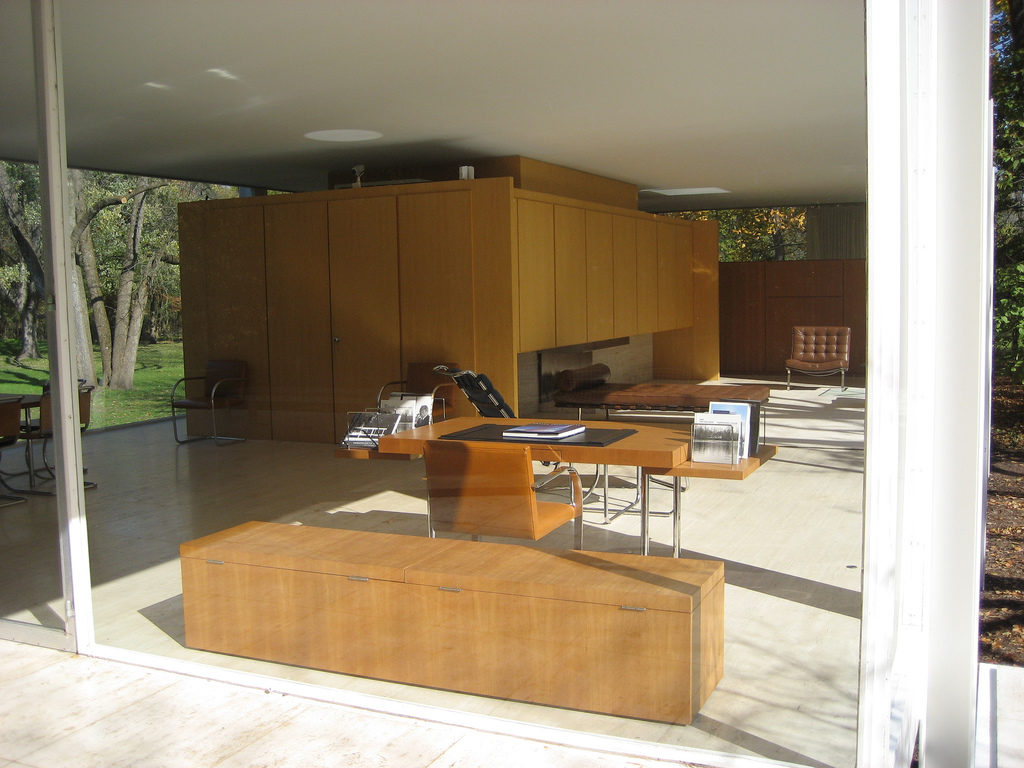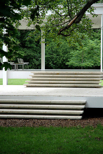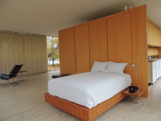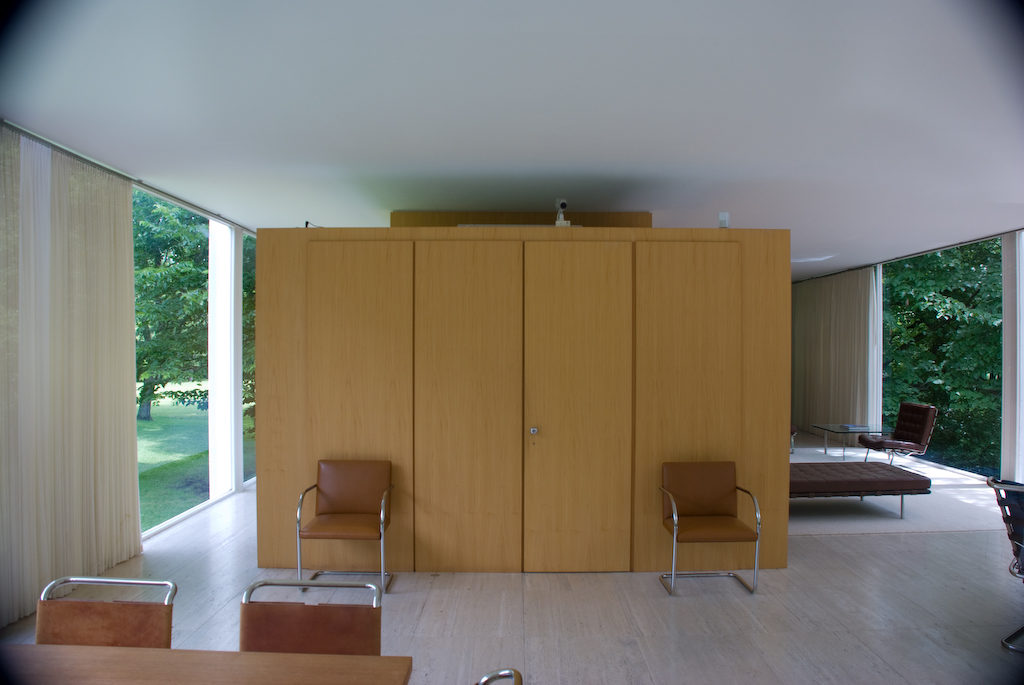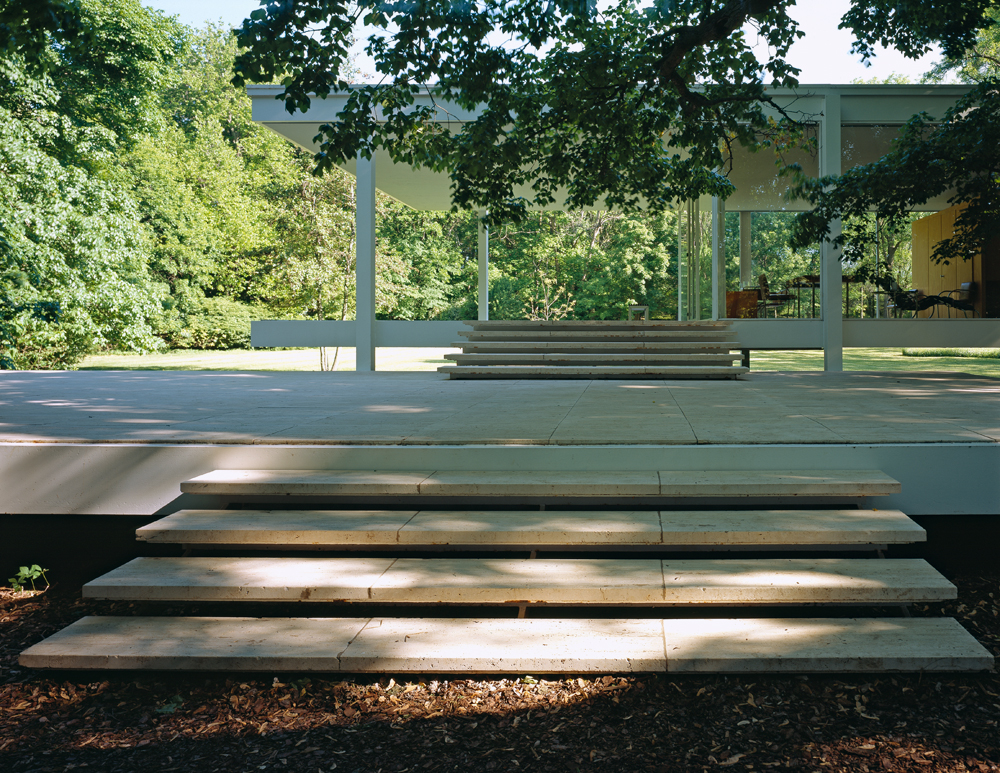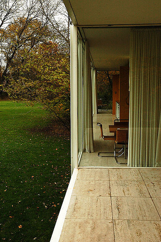 In an interview given a few years later, Mies explained the principles of the glass pavilion as they has been realized in the Farnsworth house: "Nature, too, shall live its own life. We must beware not to disrupt it with the color of our houses and interior fittings. Yet we should attempt to bring nature , houses and human beings together into a higher unity. If you view nature through the glass walls of the Farnsworth house, it gains a more profound significance than if viewed from outside. That way more is said about nature — it becomes a part of a larger whole. " Mies concluded his work in domestic design with this building and the contemporaneous unbuilt scheme for a "50 x 50" house; he seems to have had little else to say about domestic construction after the conclusion of these two open pavilions, both for living in direct contemplation of nature.