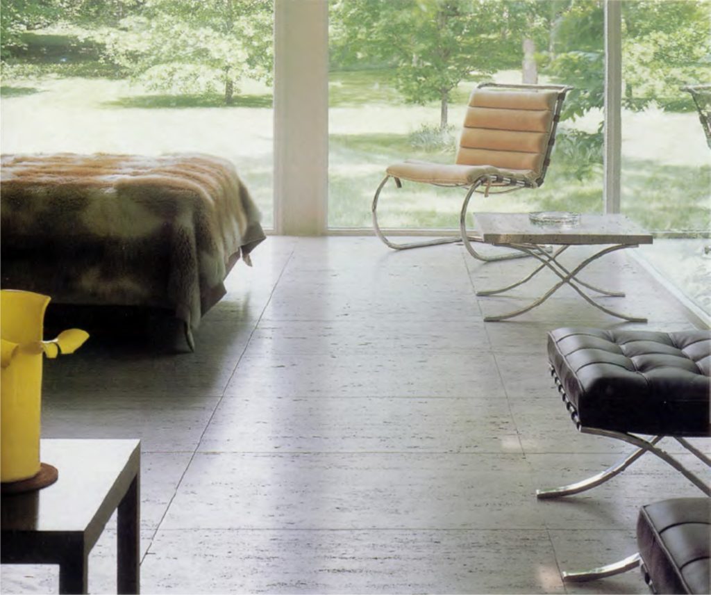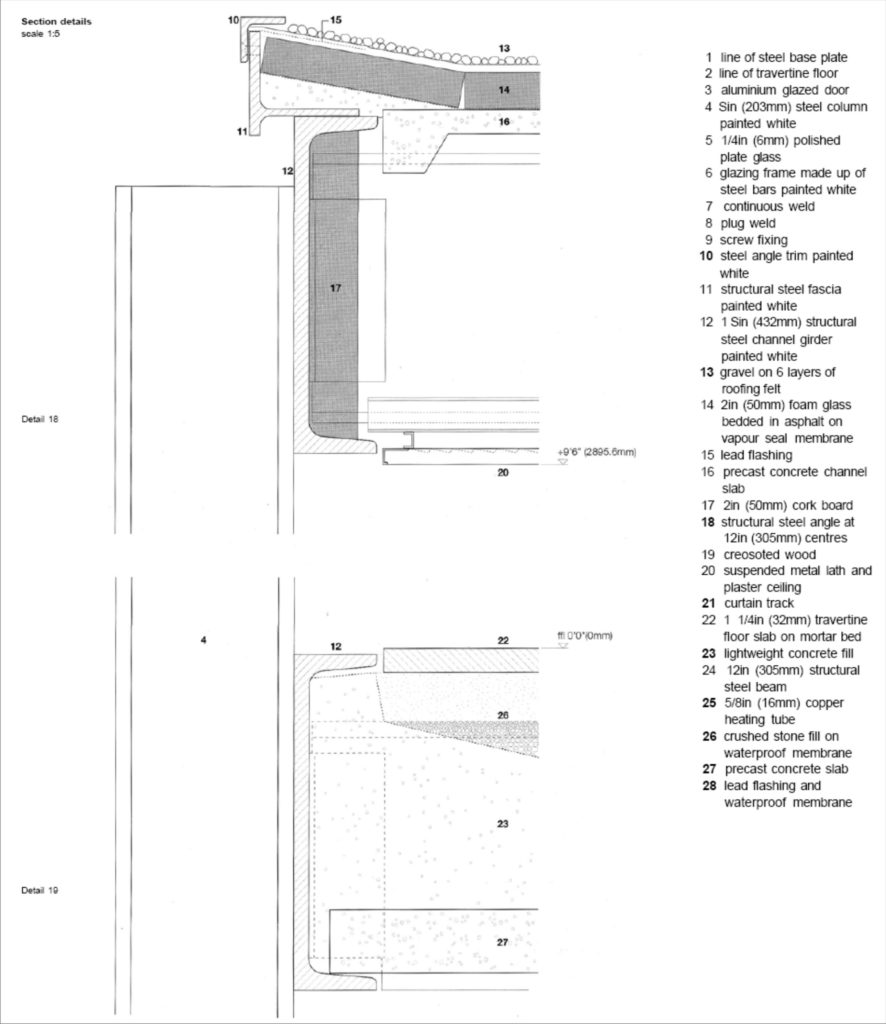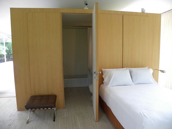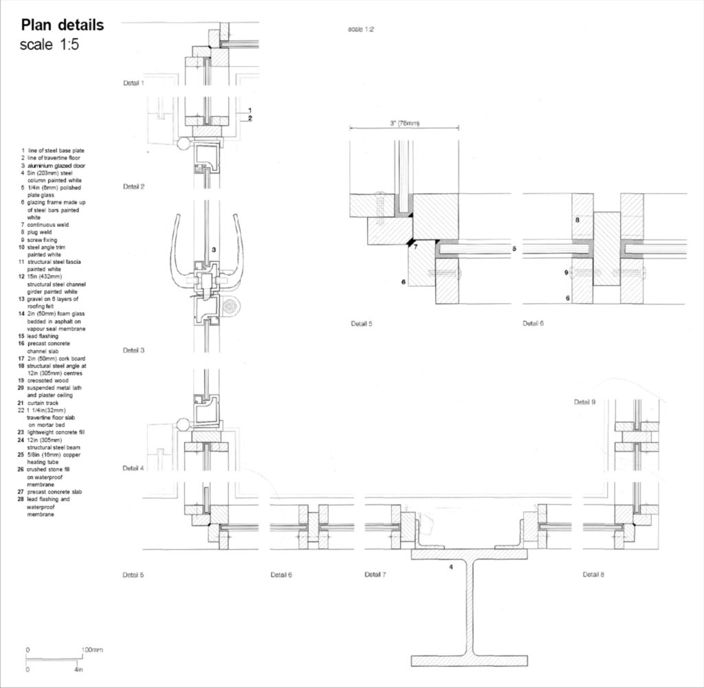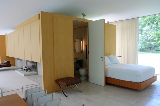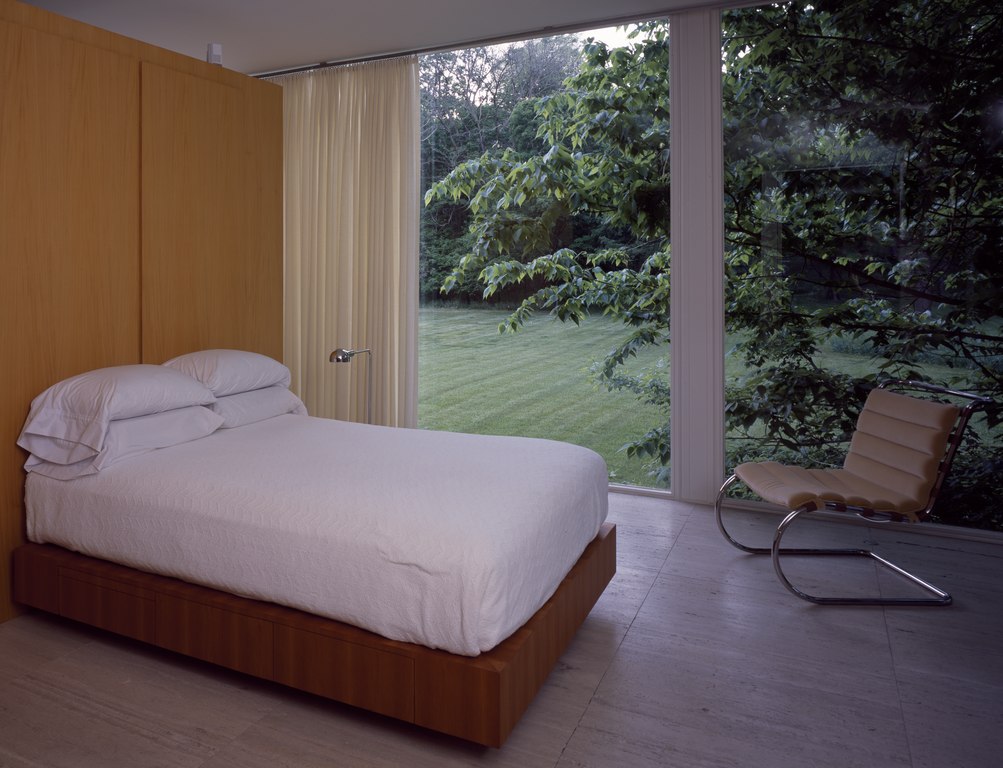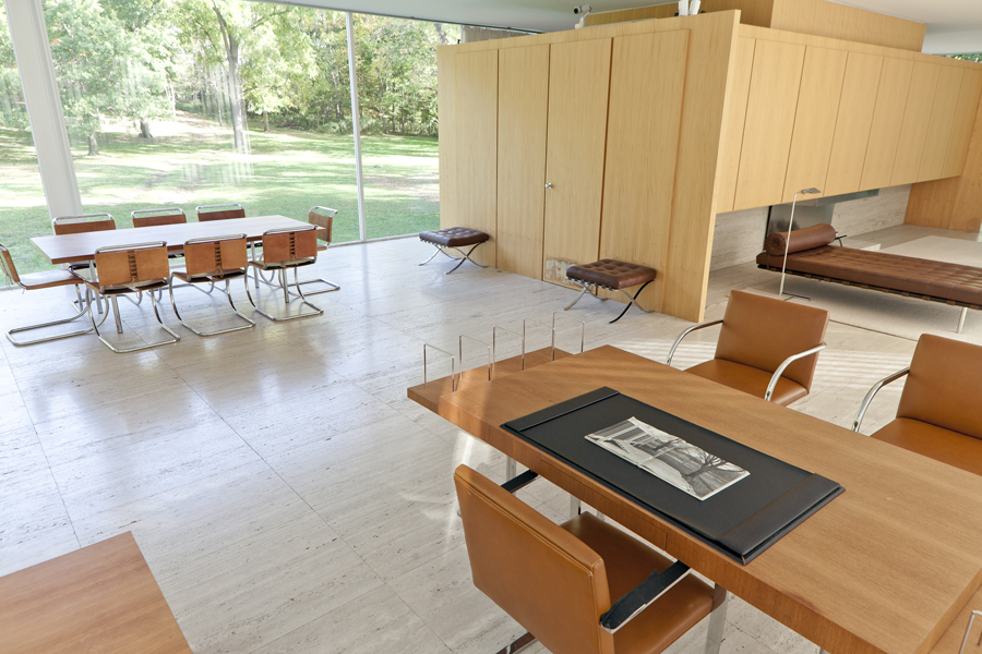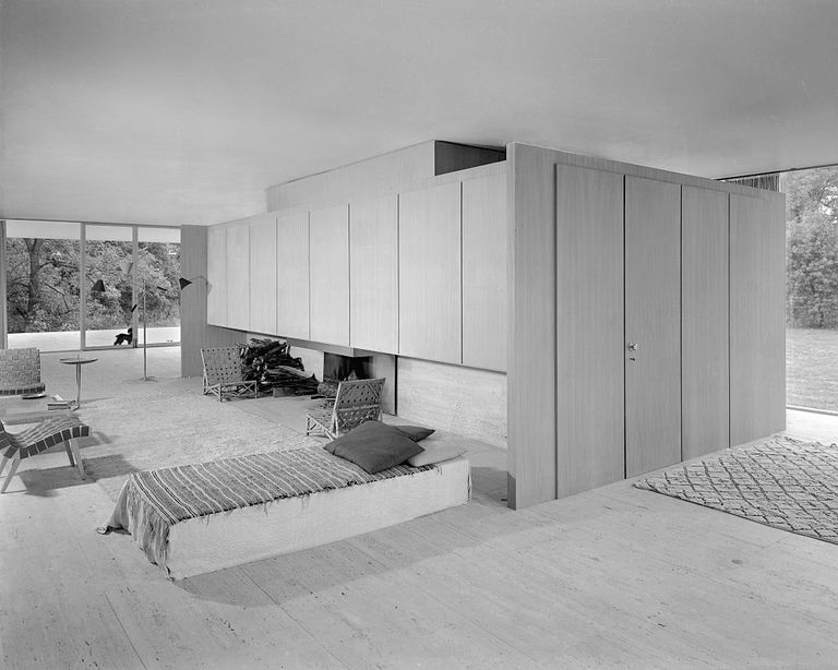 In an interview given a few years later, Mies explained the principles of the glass pavilion as they has been realized in the Farnsworth house: "Nature, too, shall live its own life. We must beware not to disrupt it with the color of our houses and interior fittings. Yet we should attempt to bring nature , houses and human beings together into a higher unity. If you view nature through the glass walls of the Farnsworth house, it gains a more profound significance than if viewed from outside. That way more is said about nature — it becomes a part of a larger whole. " Mies concluded his work in domestic design with this building and the contemporaneous unbuilt scheme for a "50 x 50" house; he seems to have had little else to say about domestic construction after the conclusion of these two open pavilions, both for living in direct contemplation of nature.
