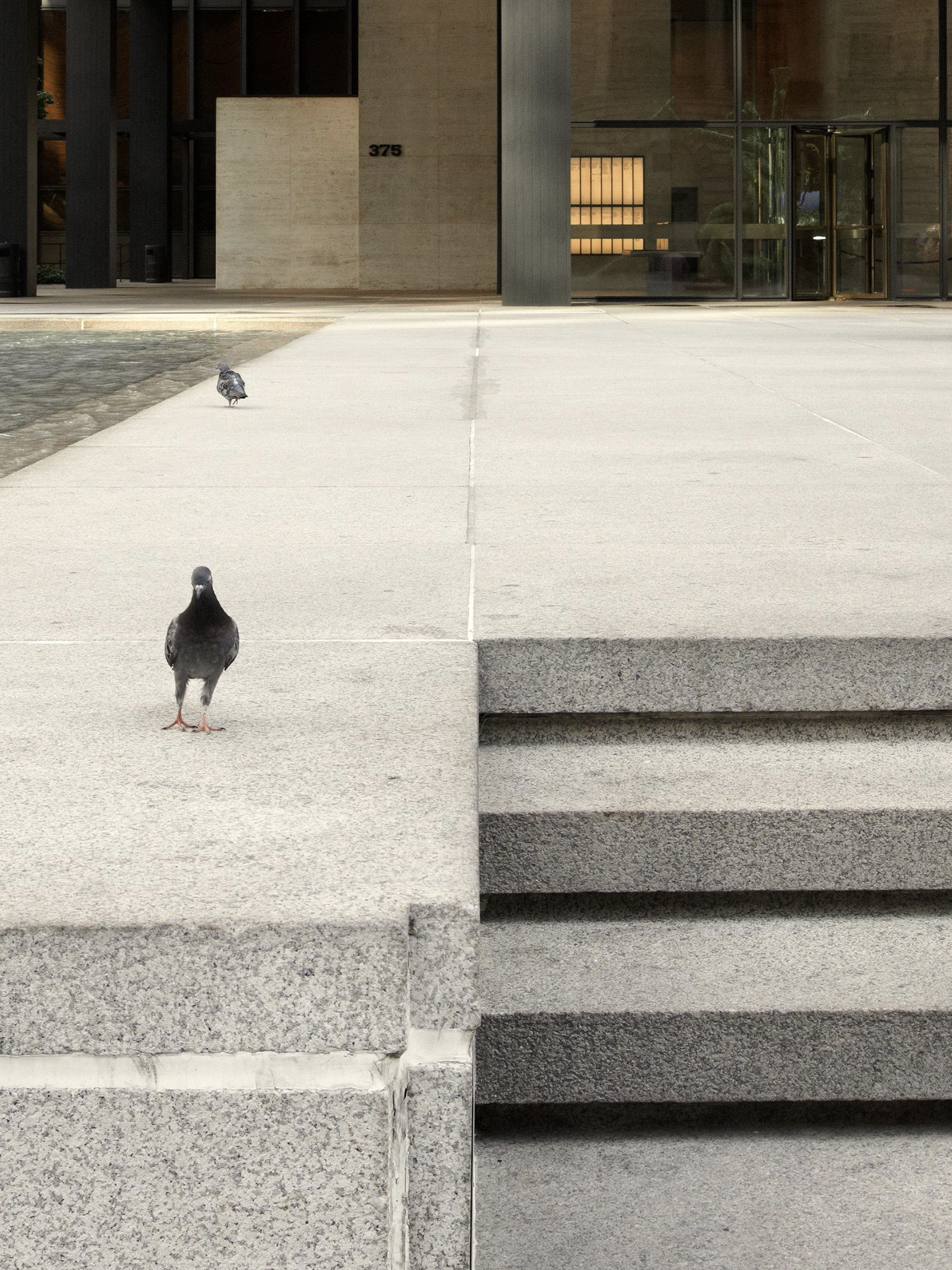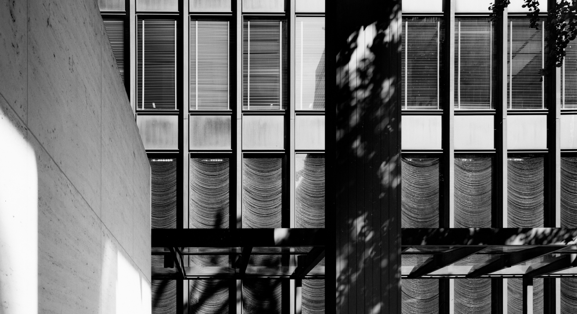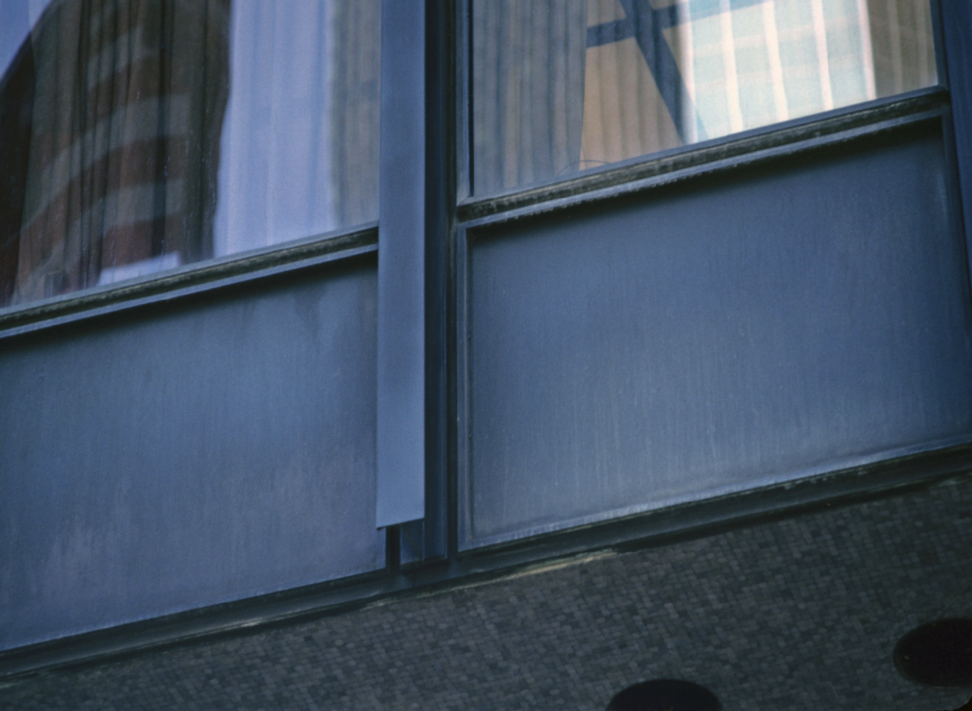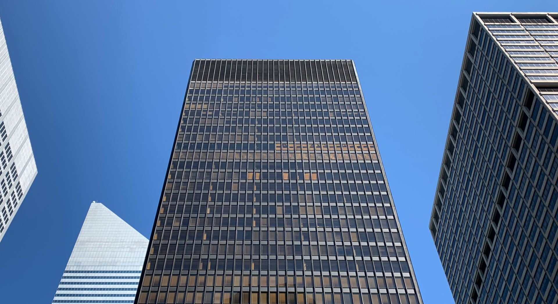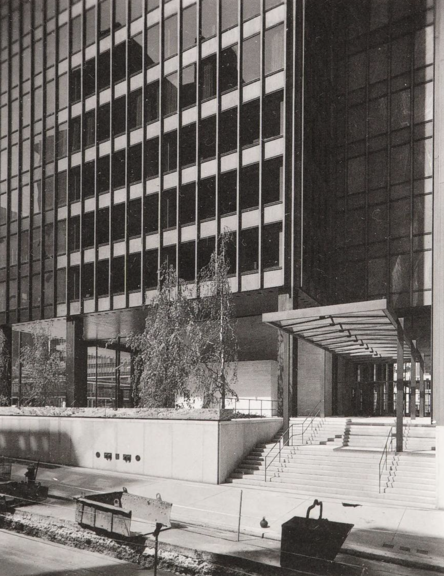 In Chicago Mies experimented with cladding the steel frame within a curtain wall of glass. Having no structural role beyond supporting its own weight means that a curtain wall can have minimal structural components, such as the frames carrying the sheets of glass, leaving maximum area for the glazing. The idea was not entirely new, but at the Seagram the system was refined to produce a shimmering skin of amazing sophistication and sleekness with slender steel mullions of the smallest possible dimension.