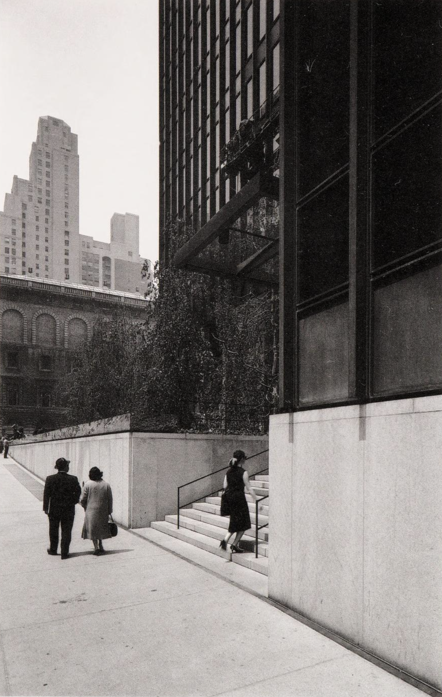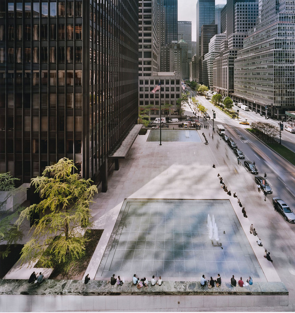 The assumption of city planners was that a public urban amenity would thus be created and financed through private corporate funding. Although the concept of a plaza of negative space could be fully animated by Mies, by a less-deft planner the modern plaza has all too often proven to be no urban amenity. Poor imitation of the Seagram plaza has led to urban plazas that are not, as Mies’s is, confined voids in an aesthetic dialectical relationship with the solid form of a building but rather simply voids of leftover space. Planners have learned that it is better to maintain a continuous street setback than to disrupt it arbitrarily.