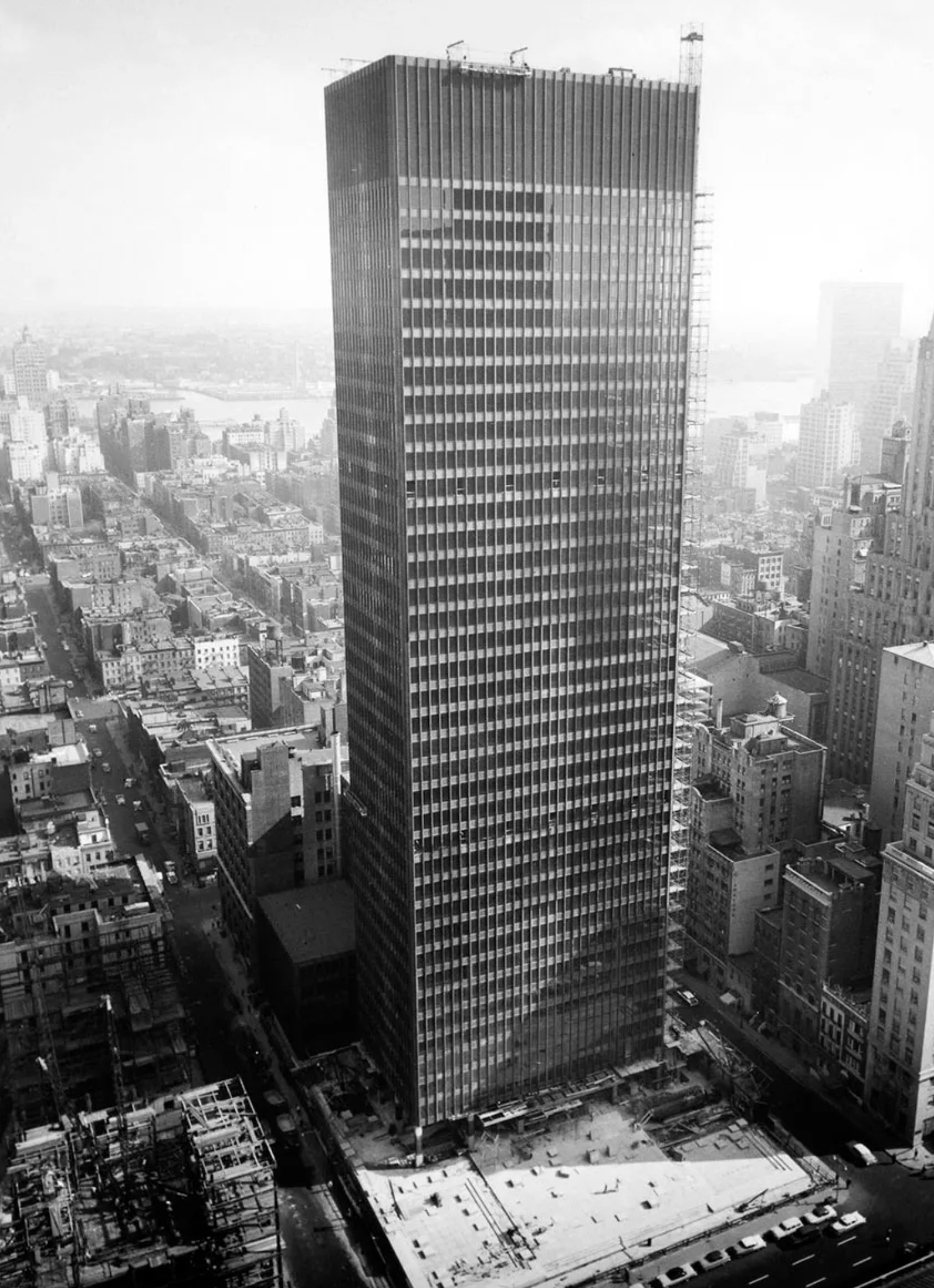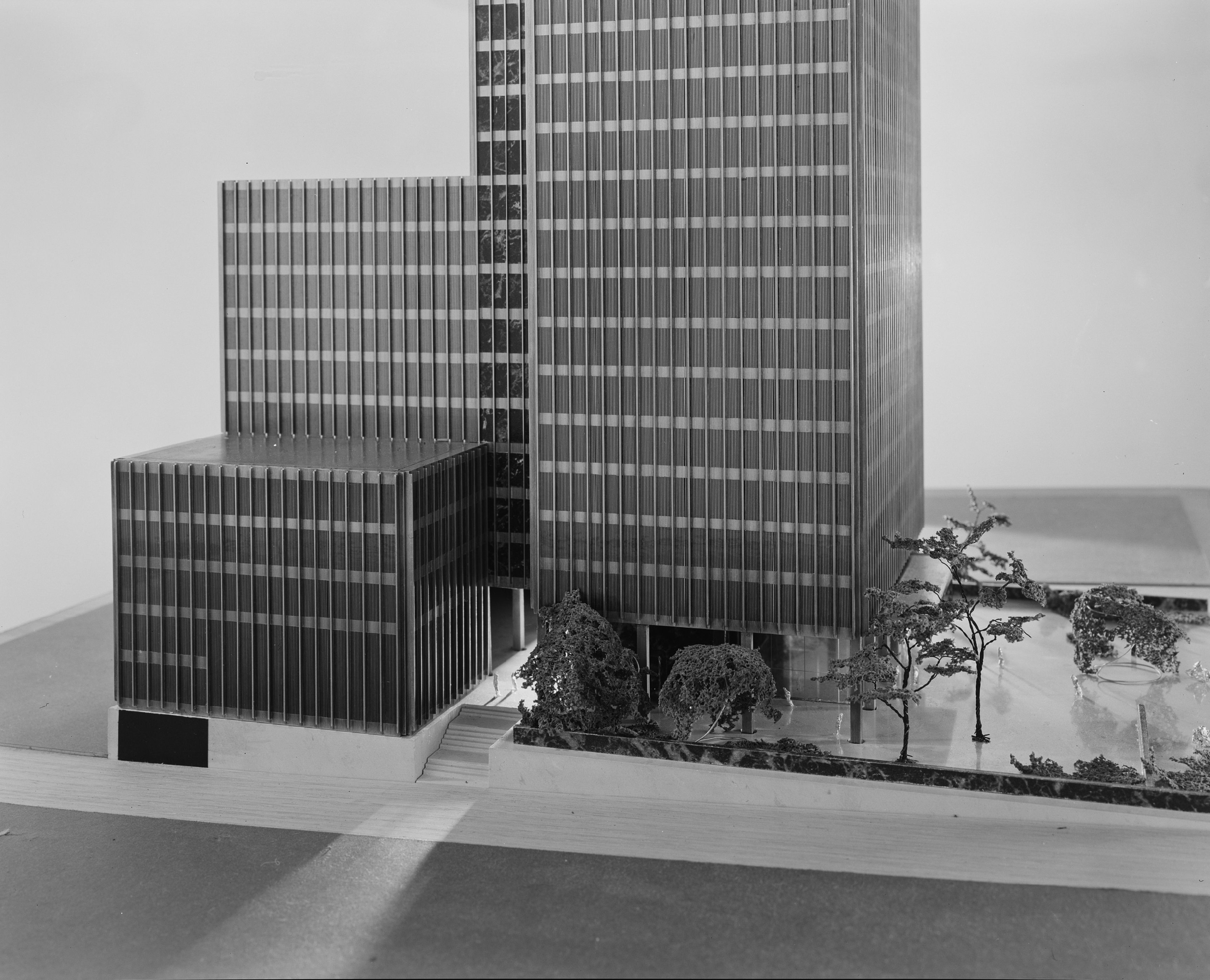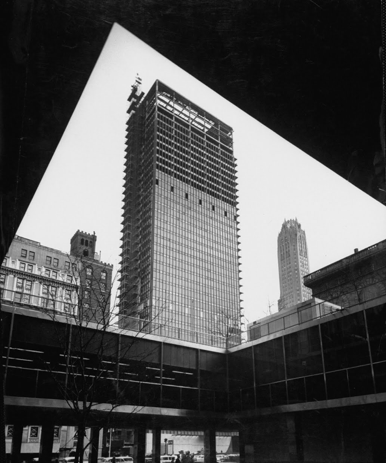 Mies had been at the forefront of high-rise architecture, evolving radical ideas for sheer towers of steel and glass while working in Germany before the Second World War. In the United States he developed these ideas, notably and initially at the Lake Shore Apartments in Chicago, which were completed in 1951.