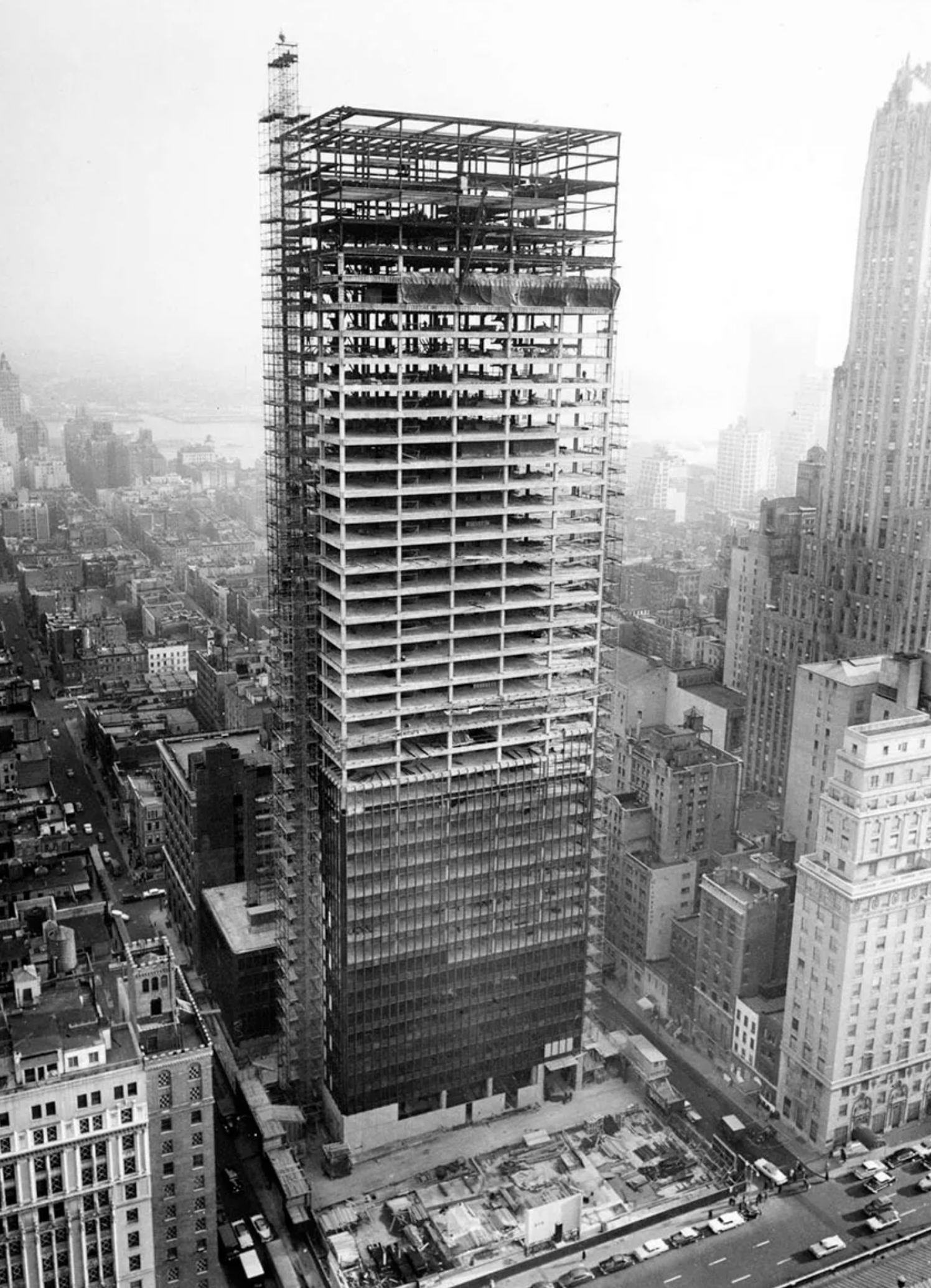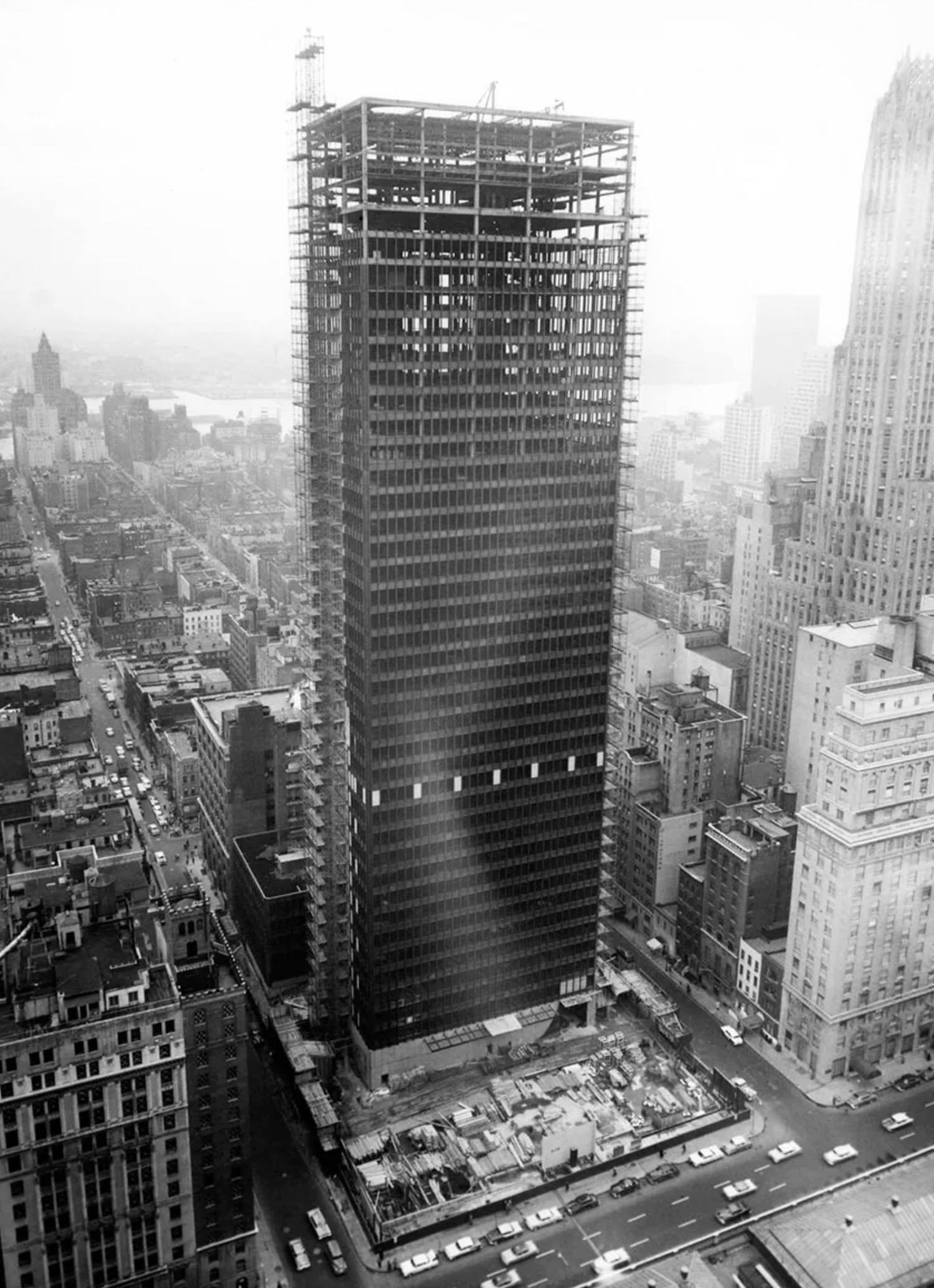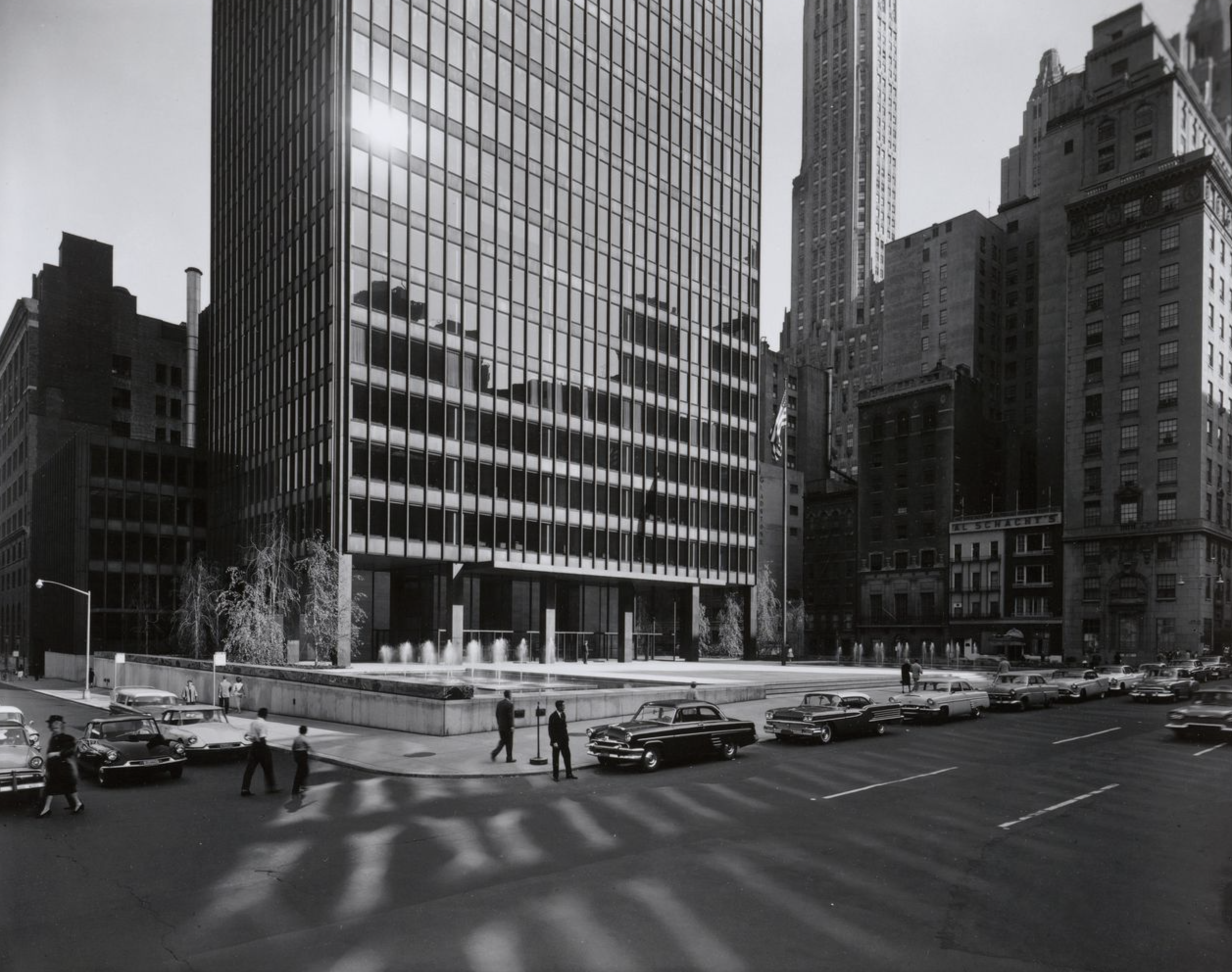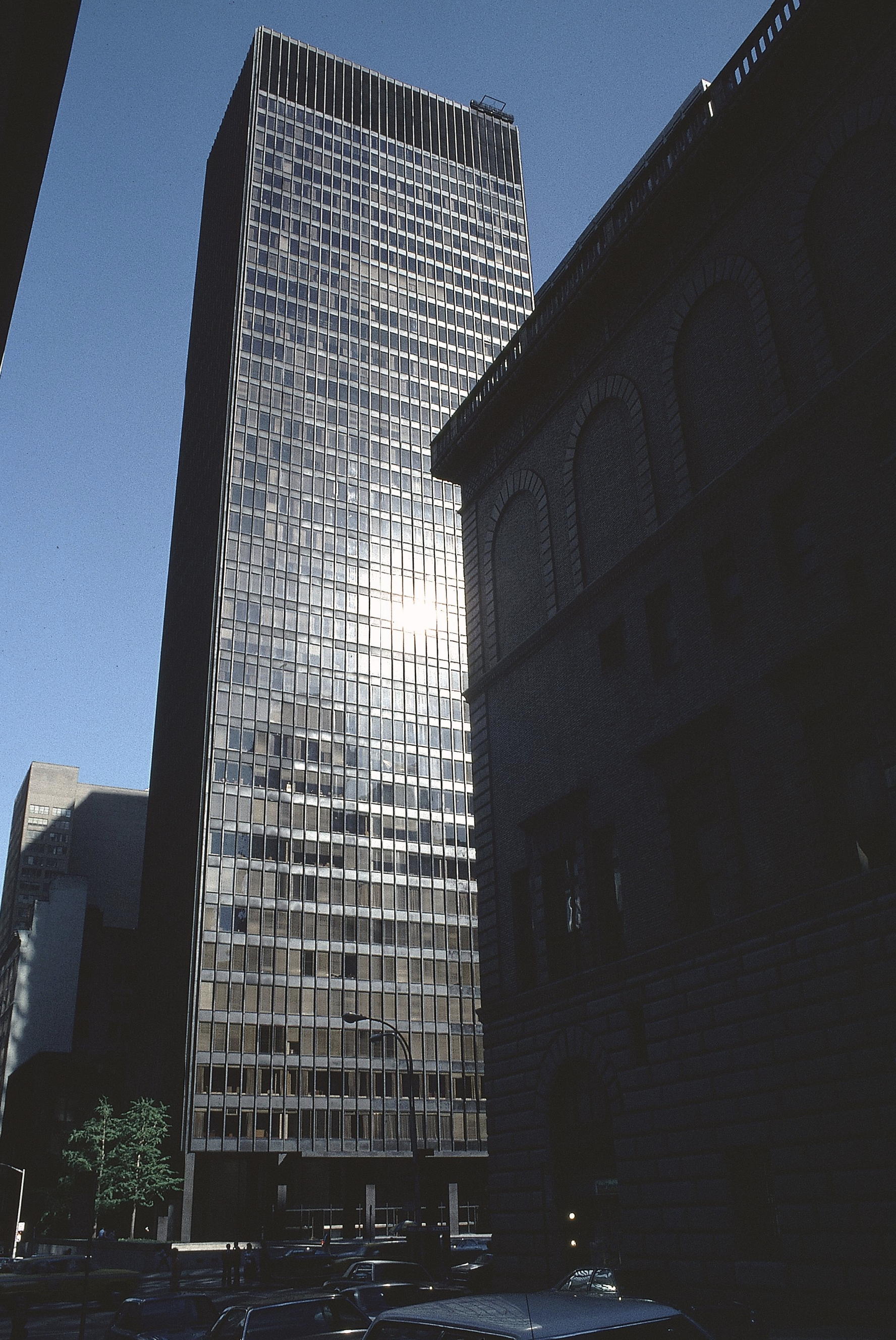 Mies had been at the forefront of high-rise architecture, evolving radical ideas for sheer towers of steel and glass while working in Germany before the Second World War. In the United States he developed these ideas, notably and initially at the Lake Shore Apartments in Chicago, which were completed in 1951.