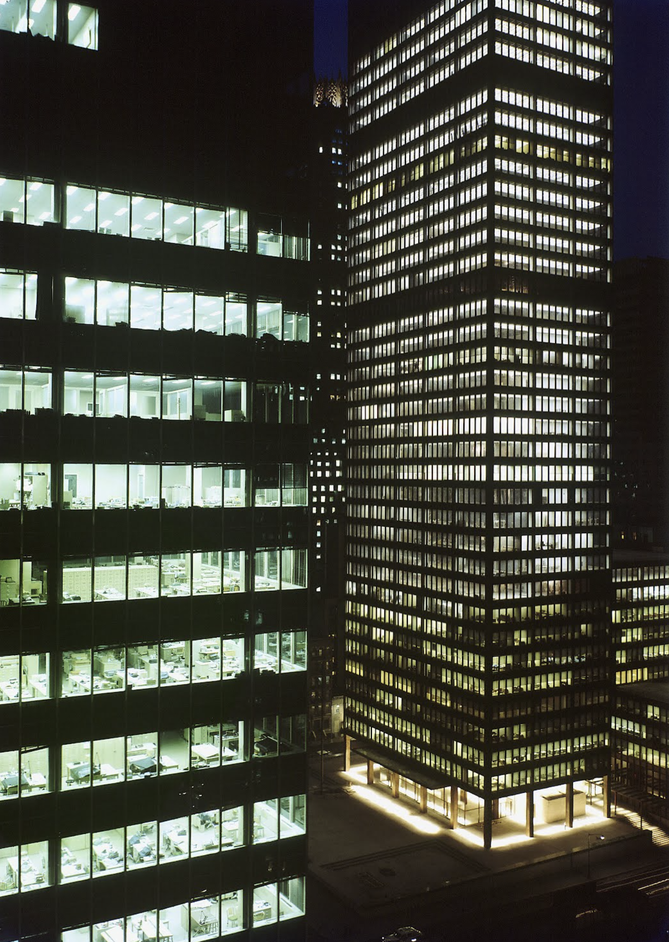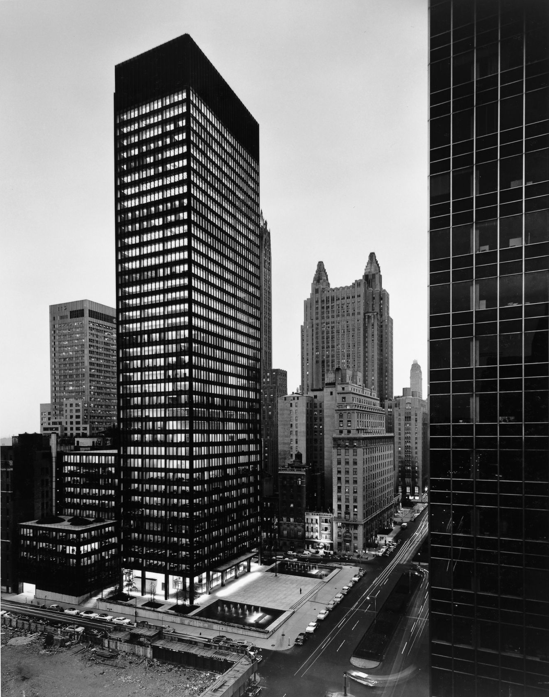 For the thoughtful architect, the Seagram has been inspirational, a standard against which tall buildings will always be judged. Less-gifted builders have simply lowered the standard set by Mies for the gridded glass-and-steel skyscraper. His work has been exploited, copied, and shortchanged as a standardized form by developers the world over, cheaply, in terms of both dollars and aesthetics. Thus, it is critical for an appreciation of early skyscraper design never to read the chronology of modern architecture backward, blaming the beautiful early type forms, such as the Seagram, for the debased works of later imitators.
