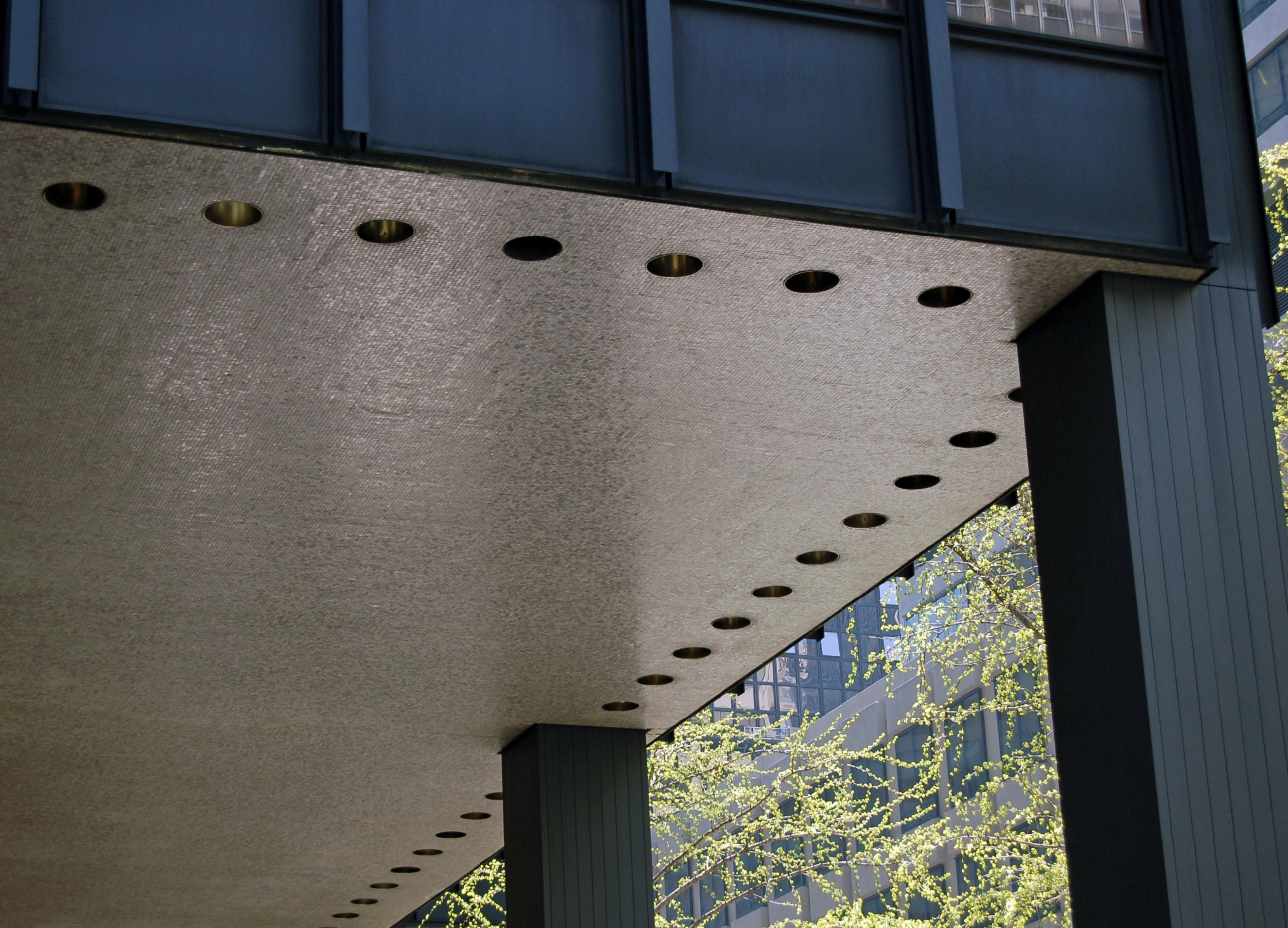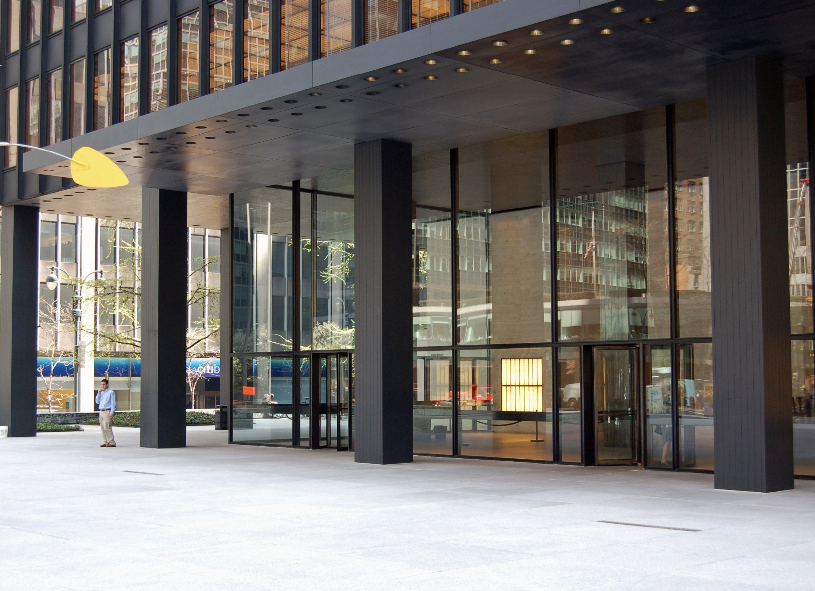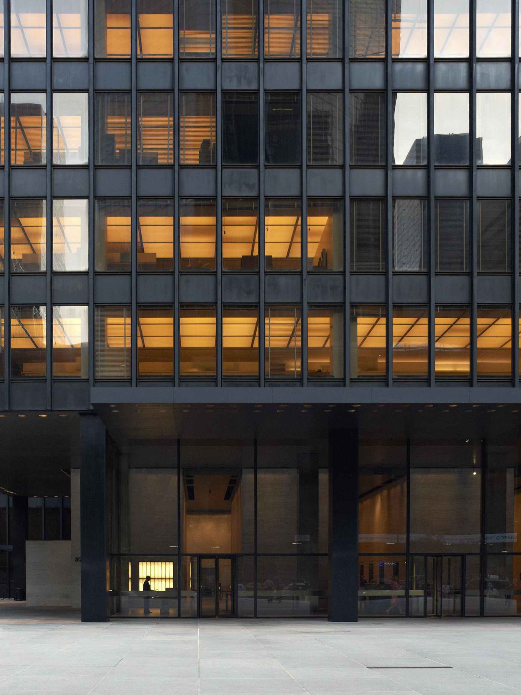 Like its creator, the Seagram is both simple and complex. The simplicity is the gridded steel frame with glass-curtain wall as a modern extension of the archaic building. The complexity is inherent in the expression of that simplicity through the applied bronze I beams, which, although they symbolically stand for the meaning of structure, are themselves unstructural. Thus, the aesthetic of truth-in-structure is expressed through an untruthfully convoluted visual metaphor.