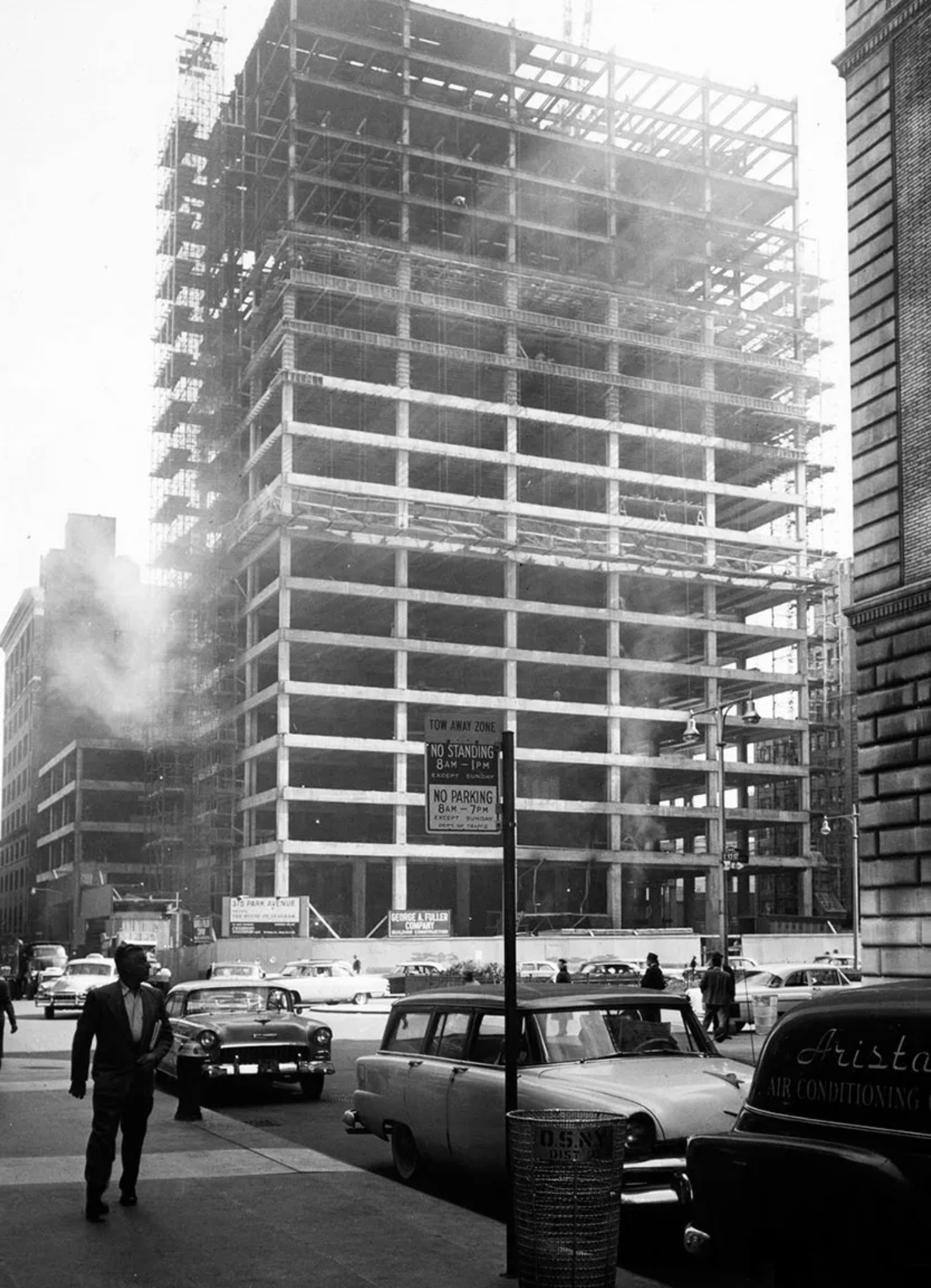 It is possible that the Seagram’s influence on architectural style has been even wider than Mies could have expected, for the perfection and reduction of this building perhaps engendered the reactionary excesses of Postmodernism. After working with Mies on the Seagram, architect Philip Johnson left Mies but continued to react to the Miesian influence for decades. Johnson’s prolific later ornamental Postmodernism, the antithesis of his own International Style tenets, may be read as a reactionary comment on his own work on the Seagram Building. The high-rise building, as it developed in the United States during the very early twentieth century, was a response to the increasing demand for city-centre space and was made possible by rapid technological developments.