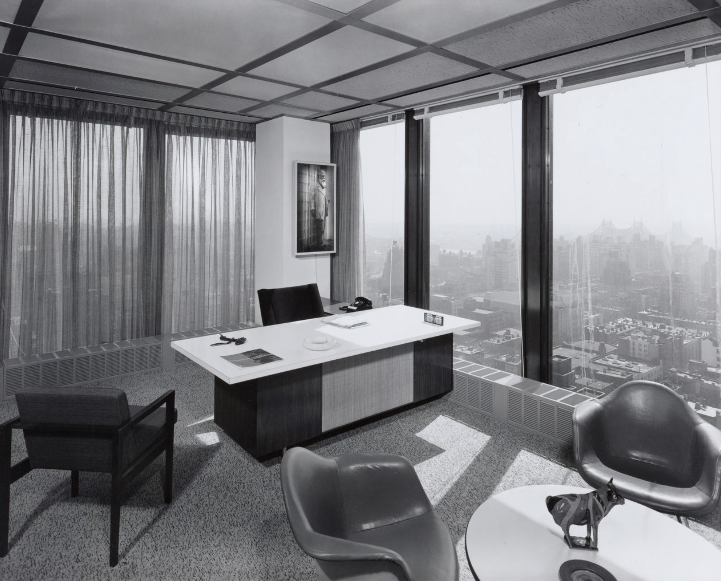 For modernism, the Seagram is an ideal, perhaps even a Platonic ideal, of perfection and purity of form. It symbolizes the type form of the gridded glass skyscraper, emblem of the 20th century. The building has always seemed the epitome of form and function united in its most integrated and reductive sense, the clearest expression of Mies’ edicts that “form follows function” and that architecture is “almost nothing.” It is émigré Mies’ American sublime manifestation of his German utopian renderings.