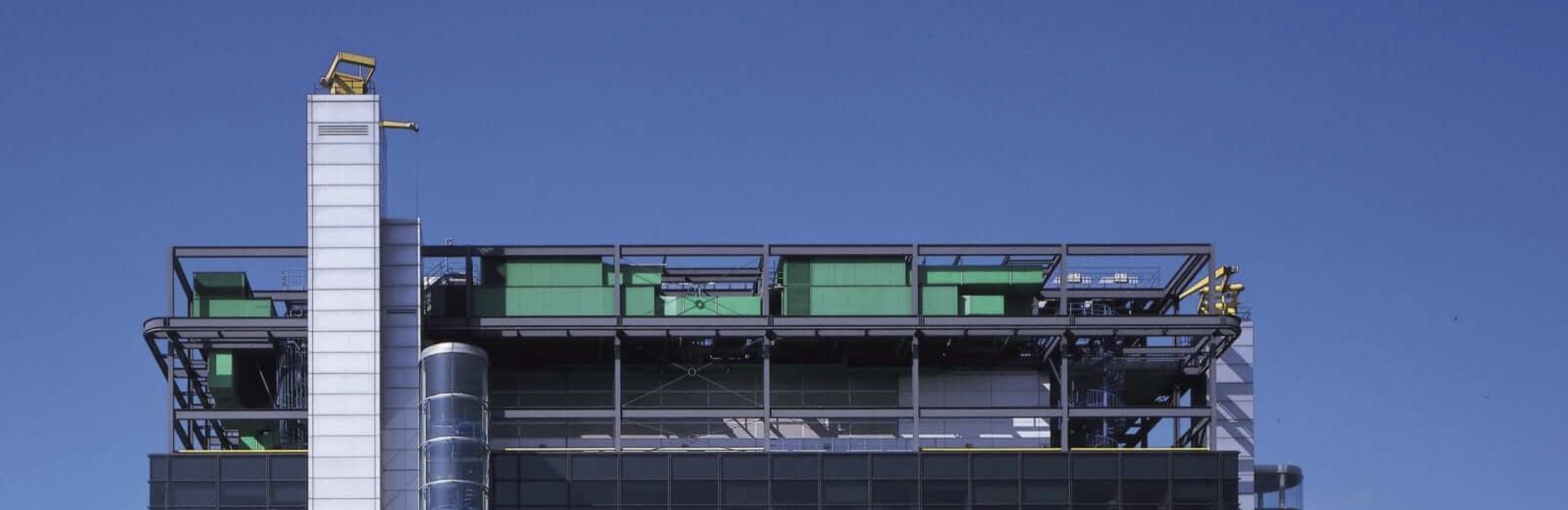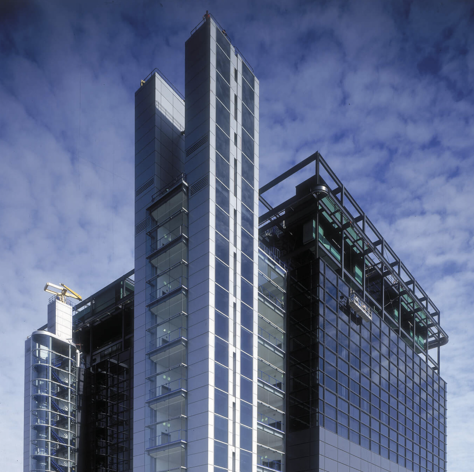An interchangeable cladding system of solid and glazed panels reflects the flexibility of the interior. To maintain flexibility, lifts and staircases are concentrated in perimeter towers. Main plant is placed at roof level and services are distributed downwards through internal cores. Cranes are made into features and colour used to denote the various functions. Though essentially a ‘functional’ building – rigorous, economical and rational – constructed to a strict time schedule, Since the building opened, it has undergone a number of refits as both technology has changed and alternative uses are housed. The strength of the building is in its enduring ability to change to meet contemporary demands. |