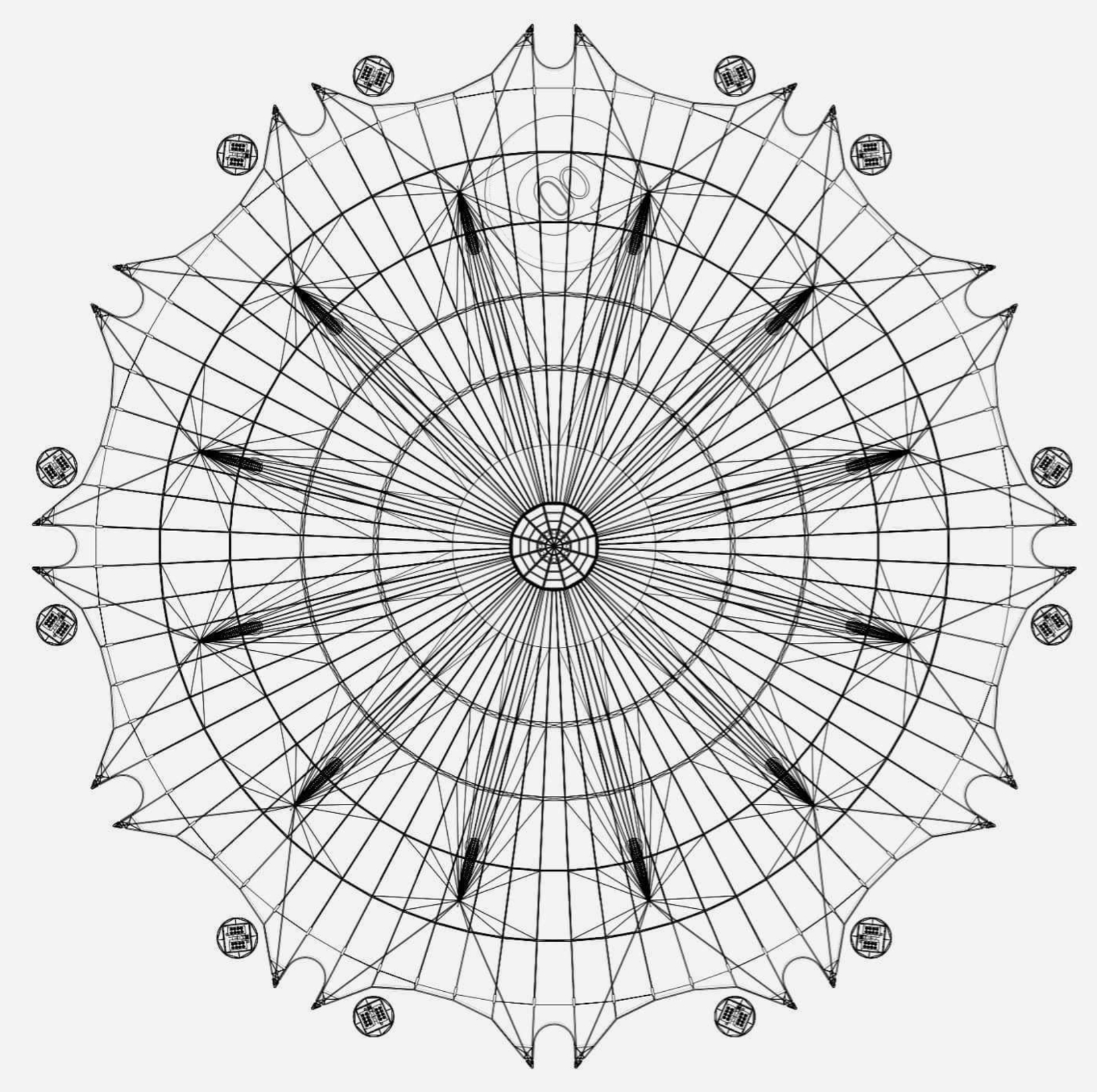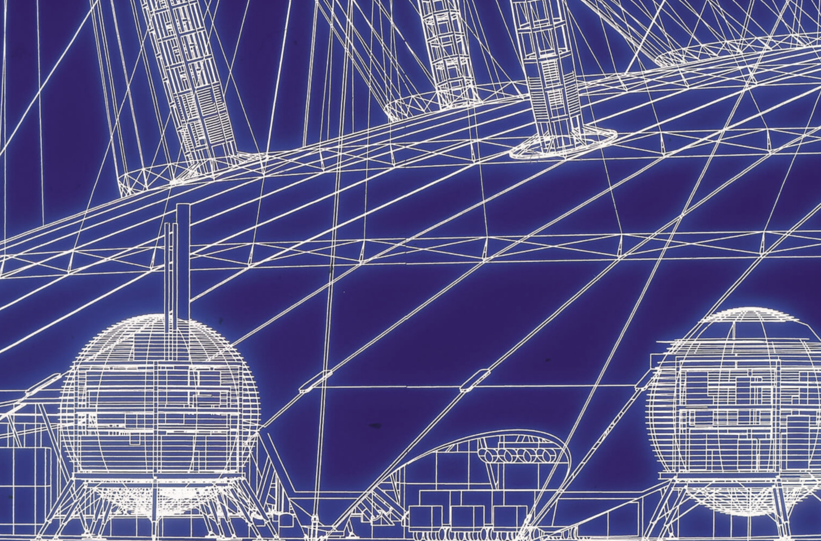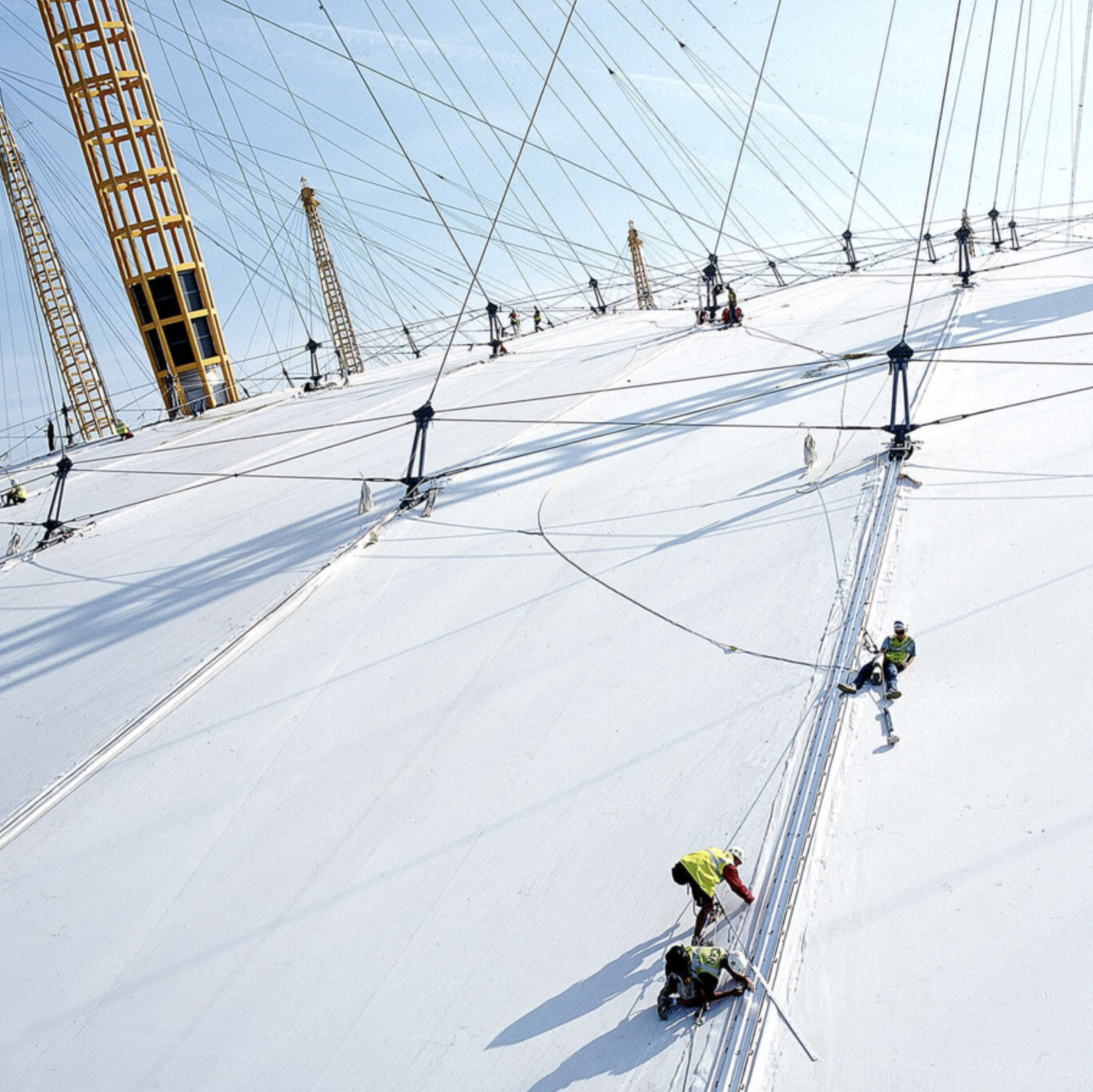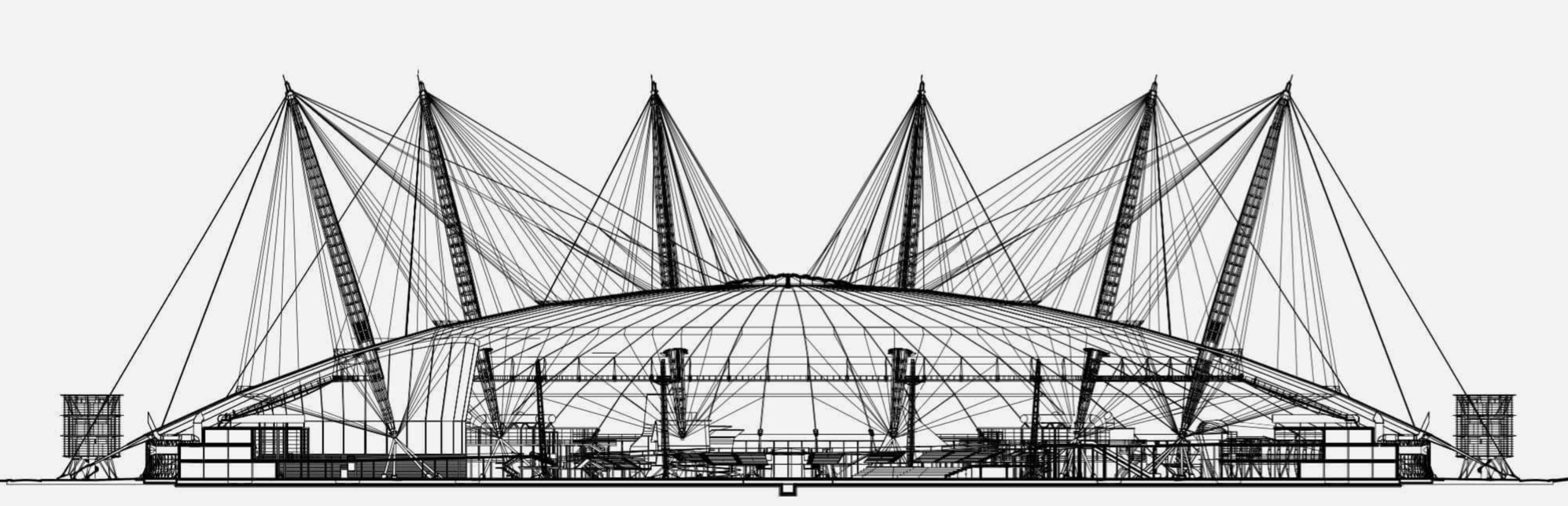 Designed in association with engineers Buro Happold, the key objectives for the structure were lightness, economy and speed of construction. The Dome is firmly rooted in the early work of the Practice, in particular the Fleetguard Factory (Brittany, 1979), the INMOS Microprocessor Factory (Newport, 1987), the Dome in the Royal Docks masterplan (London, 1986) and the Massy Autosalon (Massy, 1987) – all of which are assisted span structures.
