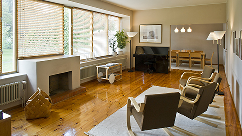 The story of the Villa Tammekann took a dramatic turn with the beginning of World War Two. The Tammekann family fled to Finland in the summer of 1940 and would never return to live in Tartu. During the Soviet era the house was divided into several apartments, and in the 1950s, the flat roof was replaced by a hipped roof. These changes, together with bad maintenance over several decades, brought the house into critical condition by the late 1990s. The Turku University Foundation bought the building in 1998 and carried out a thorough renovation and restoration project during the next two years, which included the construction of features that were part of Aalto’s original design but had never been realized for financial reasons: a terrace with a pergola, a garage, and the living room fireplace beneath the strip windows. Since 2000 the building has housed the Granö Centre of the universities of Turku and Tartu. |