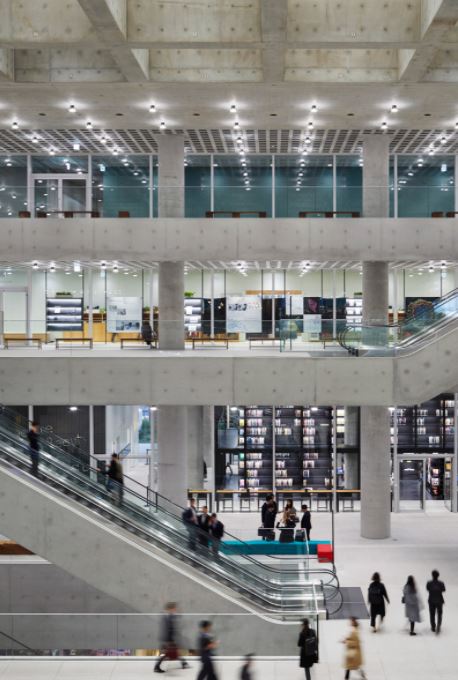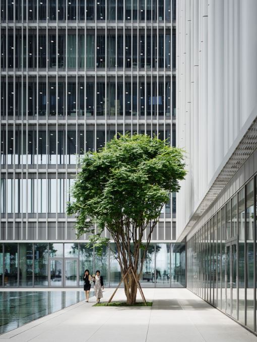 The new headquarters for Amorepacific, Korea’s largest beauty company, is located in the centre of Seoul at a site which has been occupied by the company since 1956. It is situated next to a former US military zone that is being transformed into the spacious public Yongsan Park and a business district, which was part of a masterplan representing the largest high-rise development in Korea that substantially altered the urban fabric of the Yongsan district.