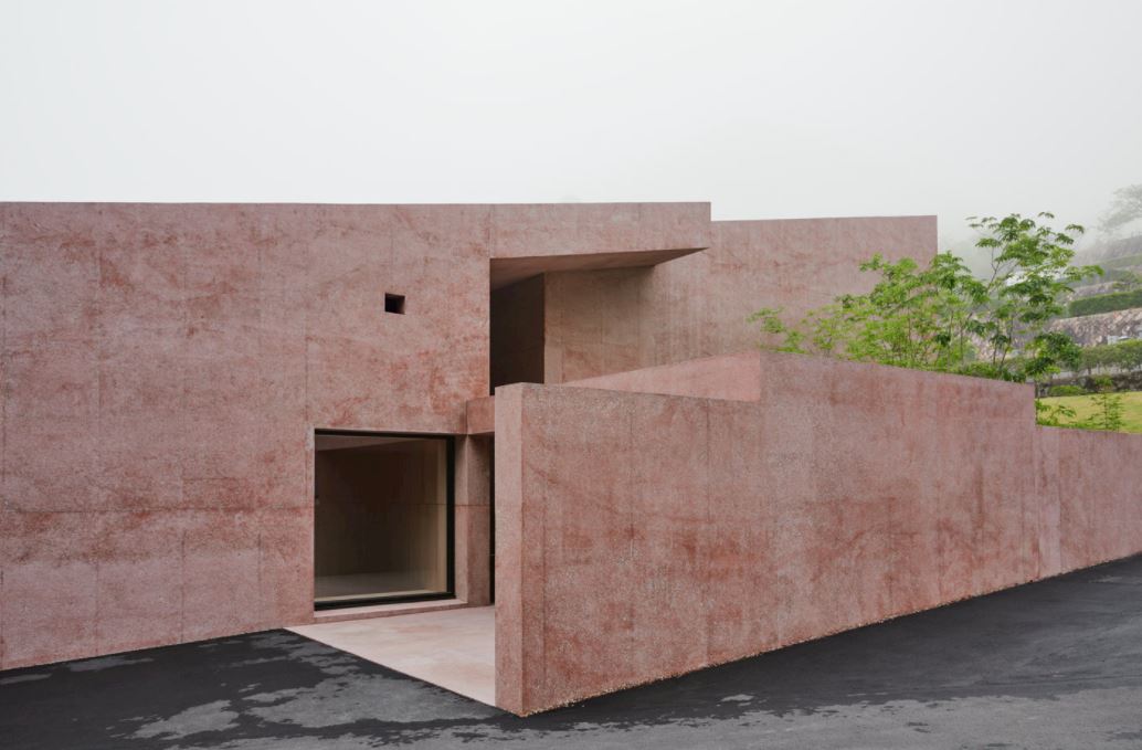 The floors, walls and roof are formed as pure building elements and poured from the same earth-like red coloured concrete – honed for internal floors and ground and sandblasted for walkway walls and soffits – giving the overall structure a monolithic appearance. A range of furniture designed specifically for the project consisting of simple, informal painted wooden chairs, benches, tables can be re-arranged depending on the occasion.