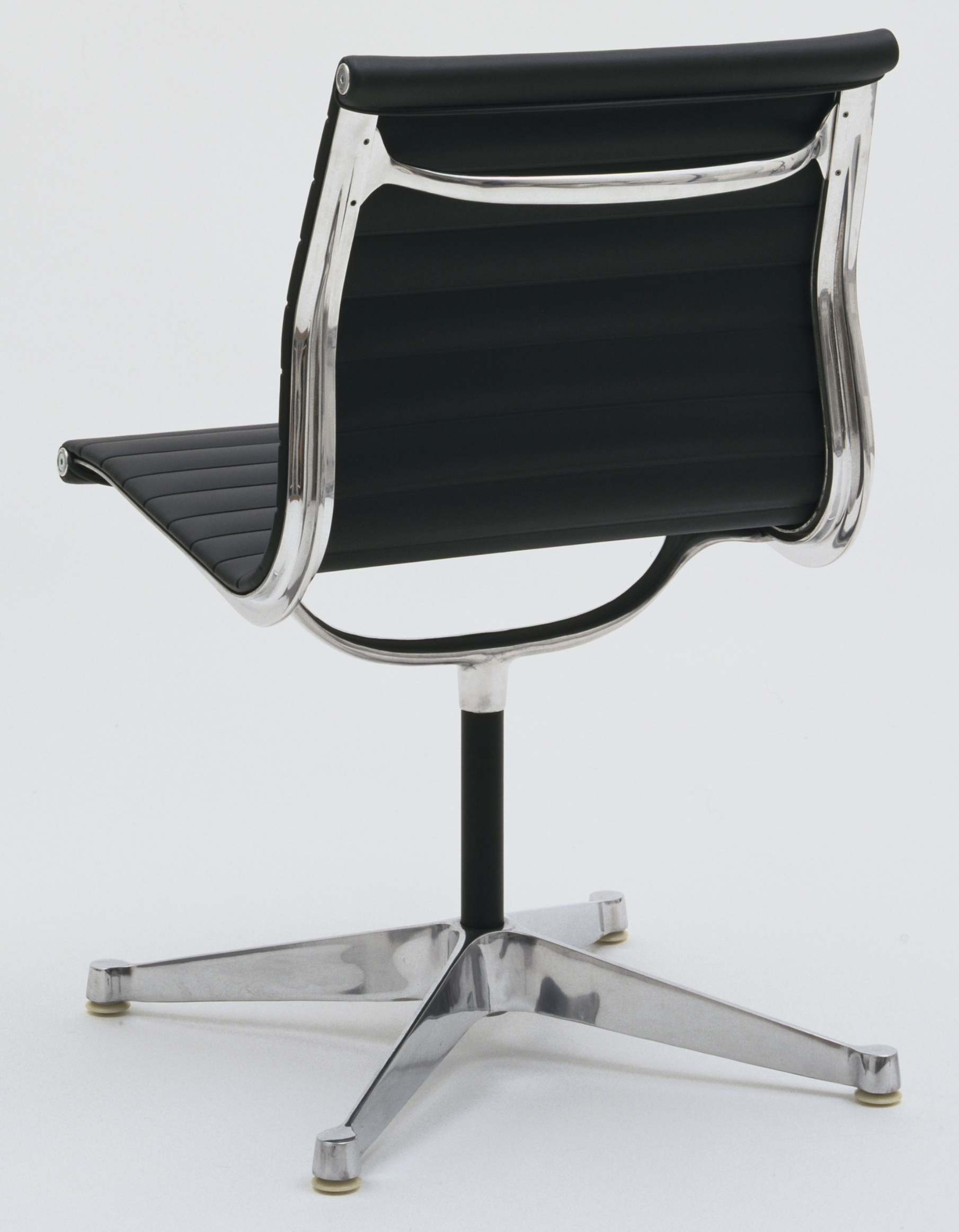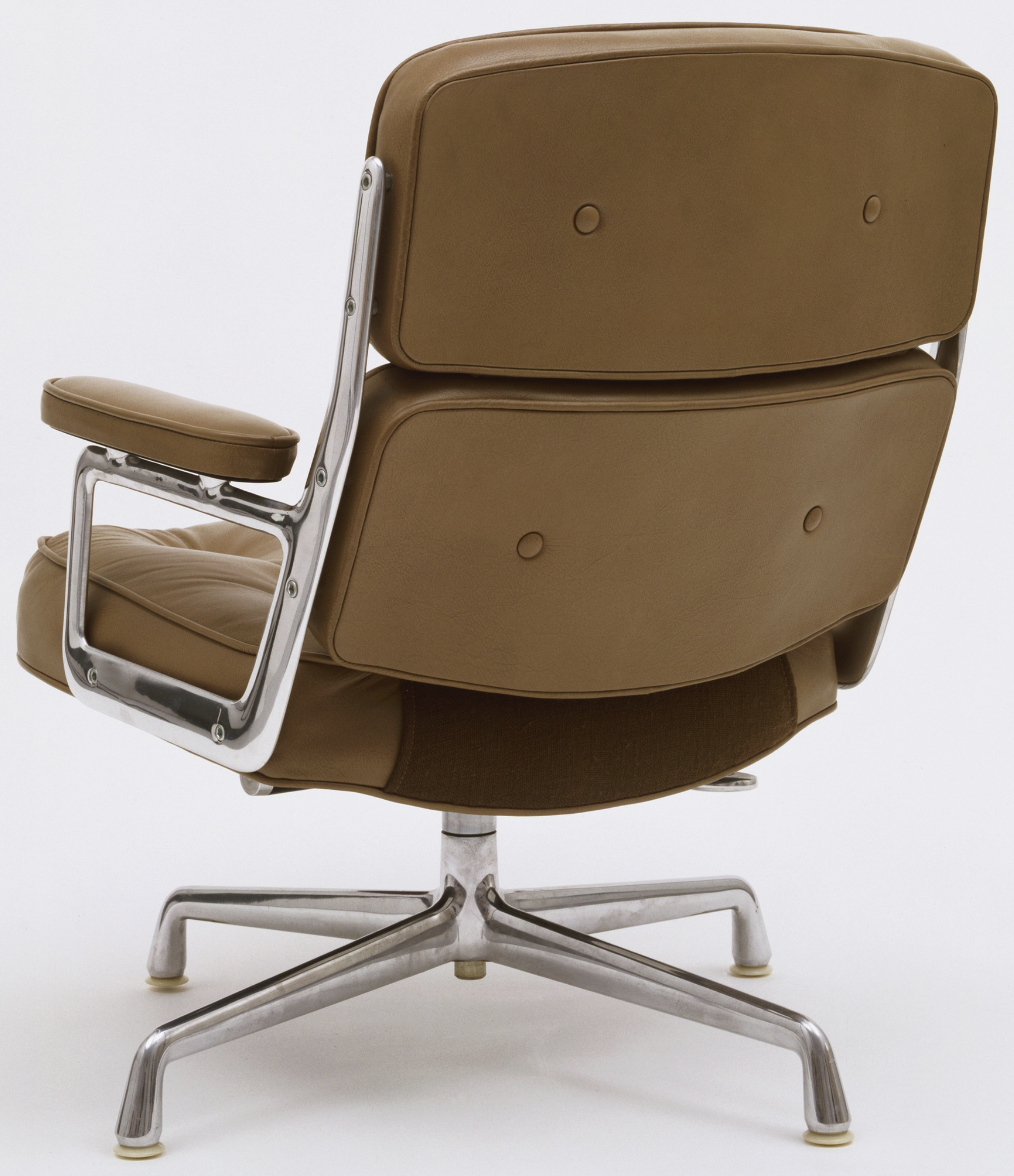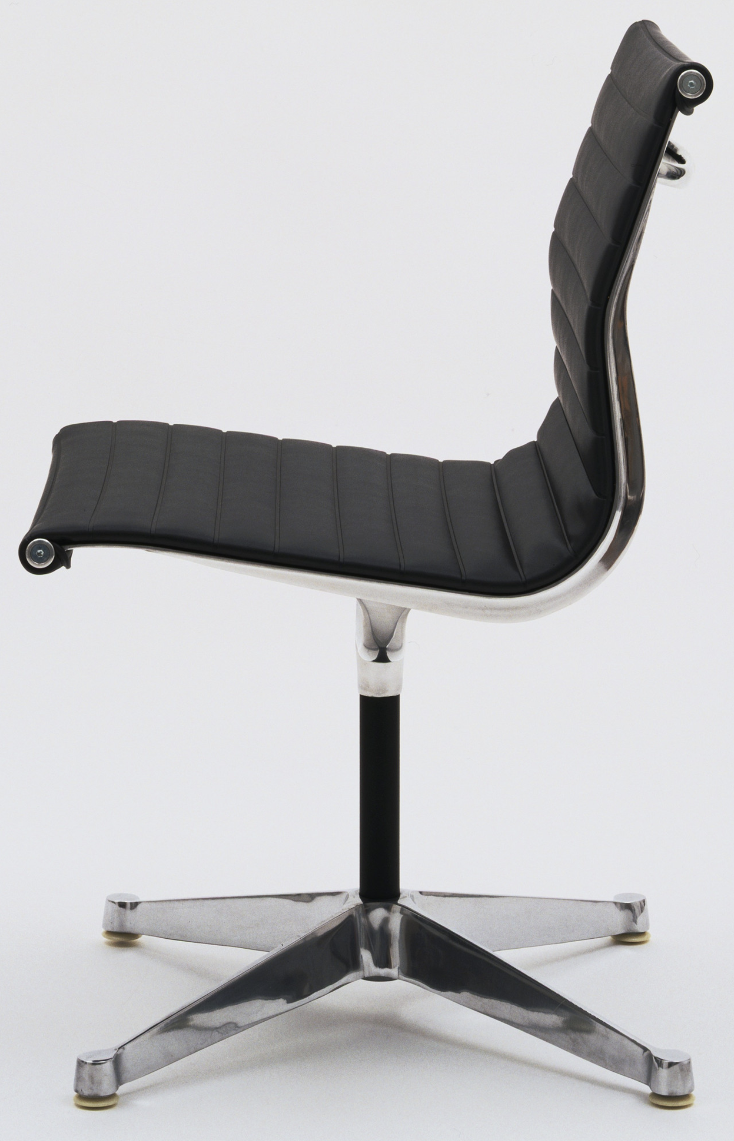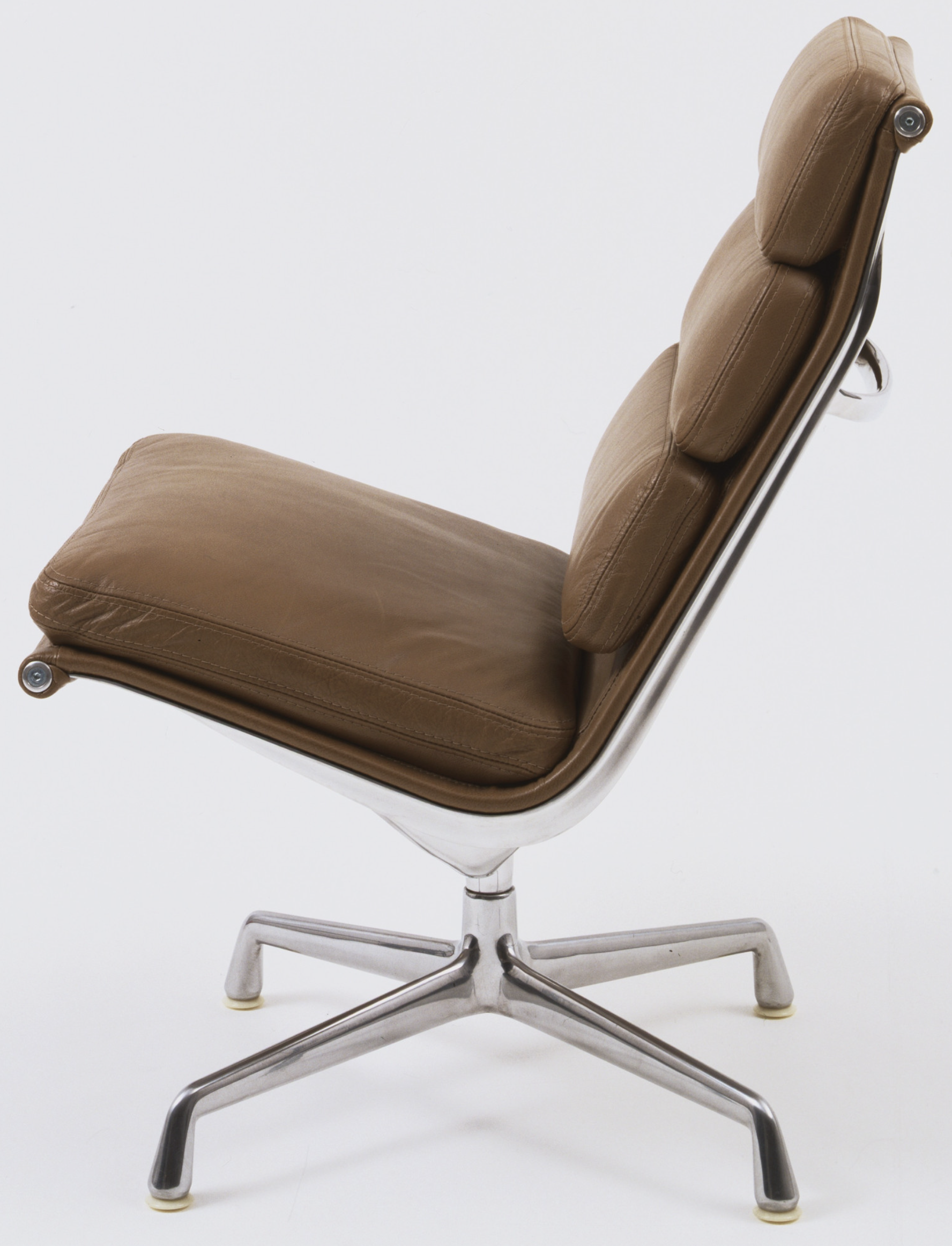 Polished die-cast aluminum, leather cushions with polyester foam padding, and nylon glides