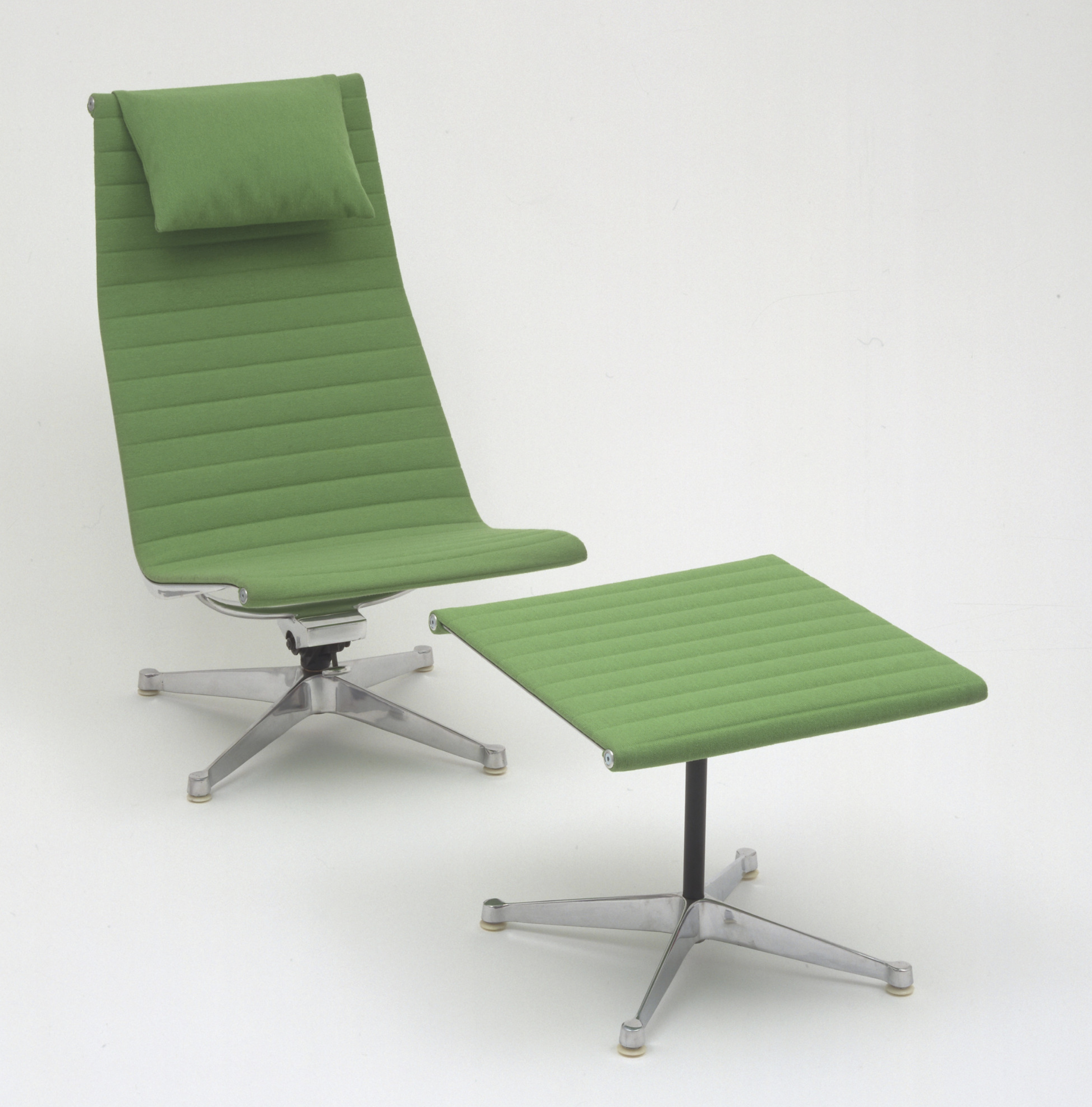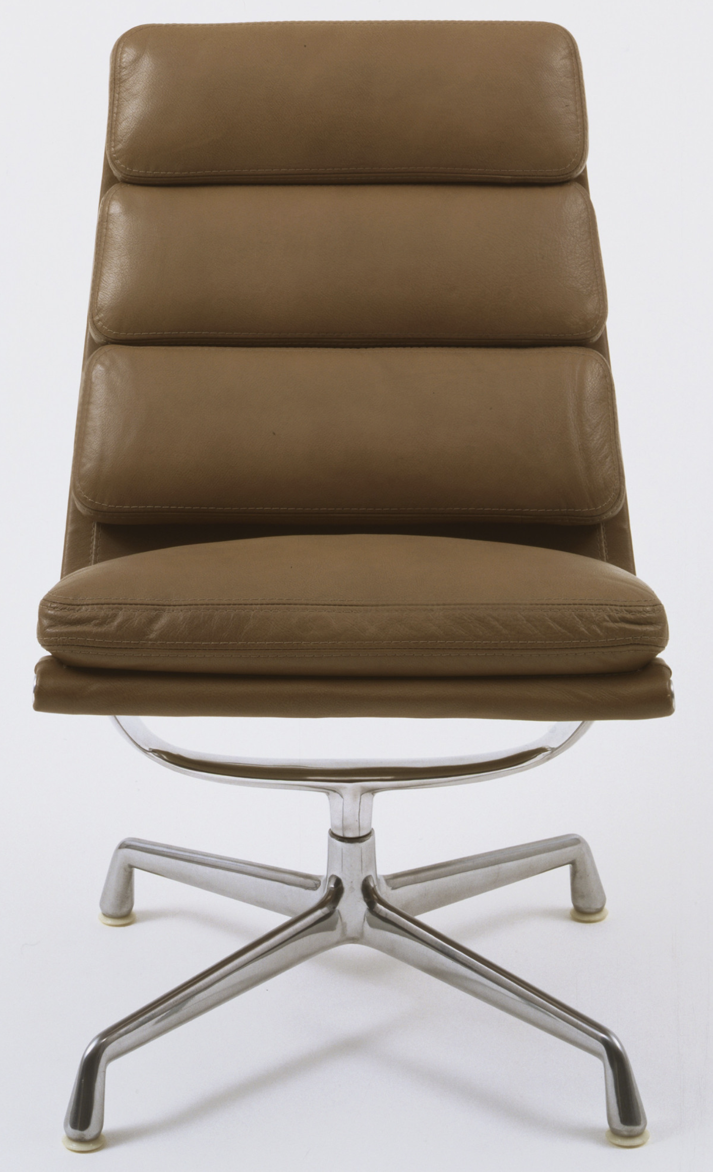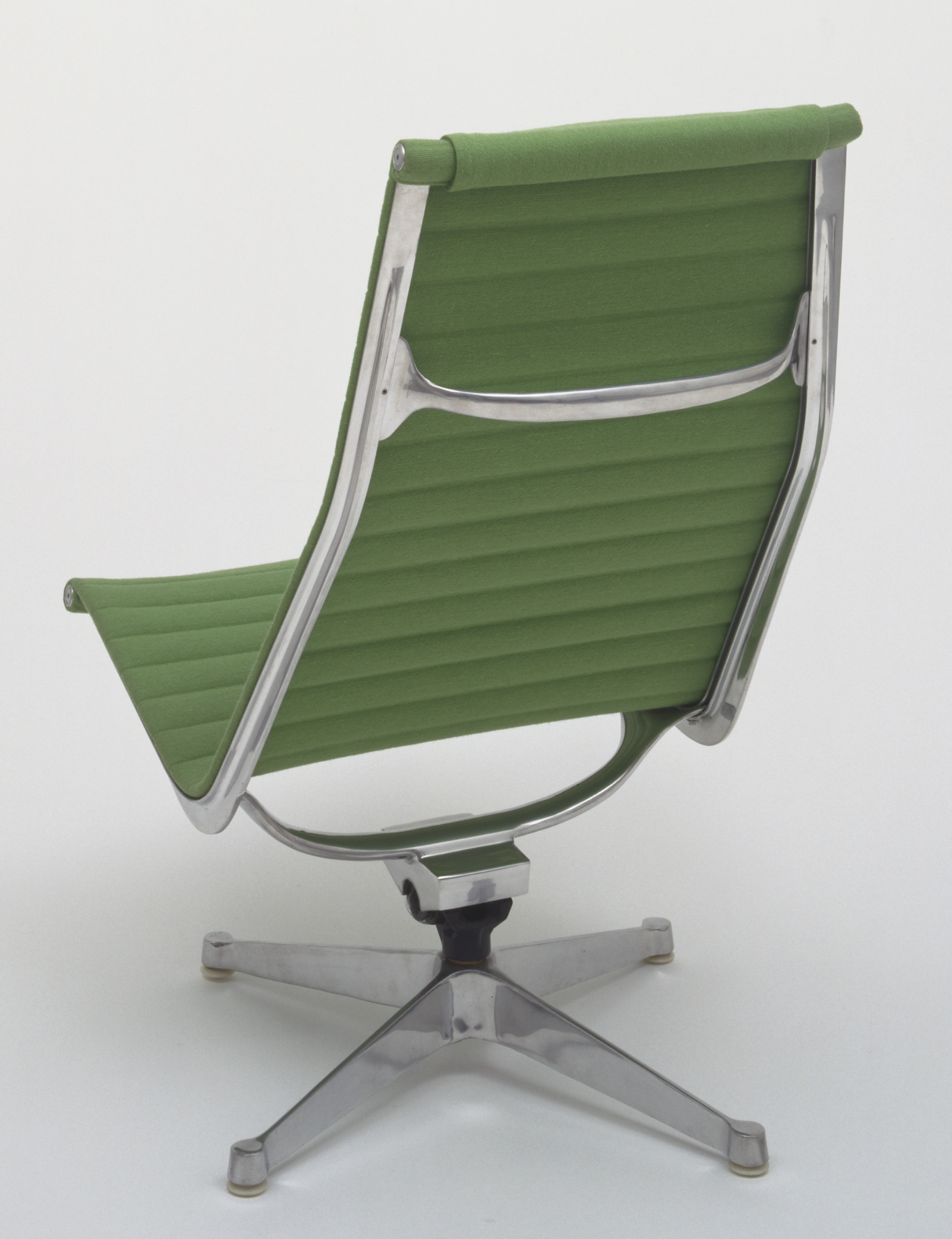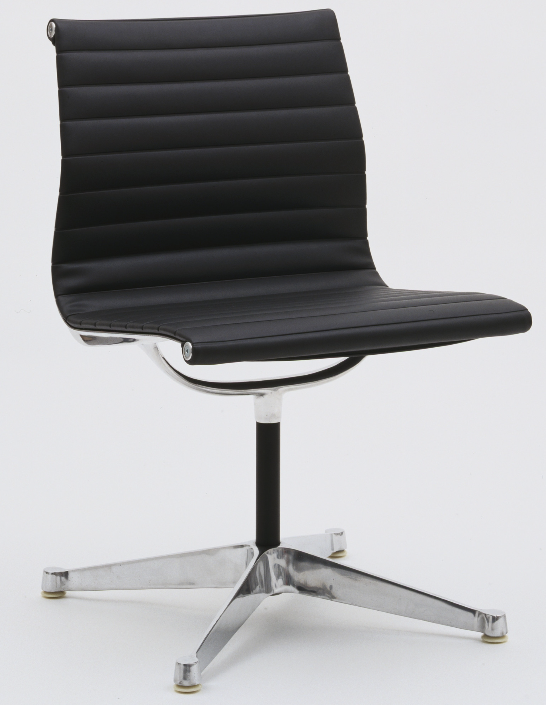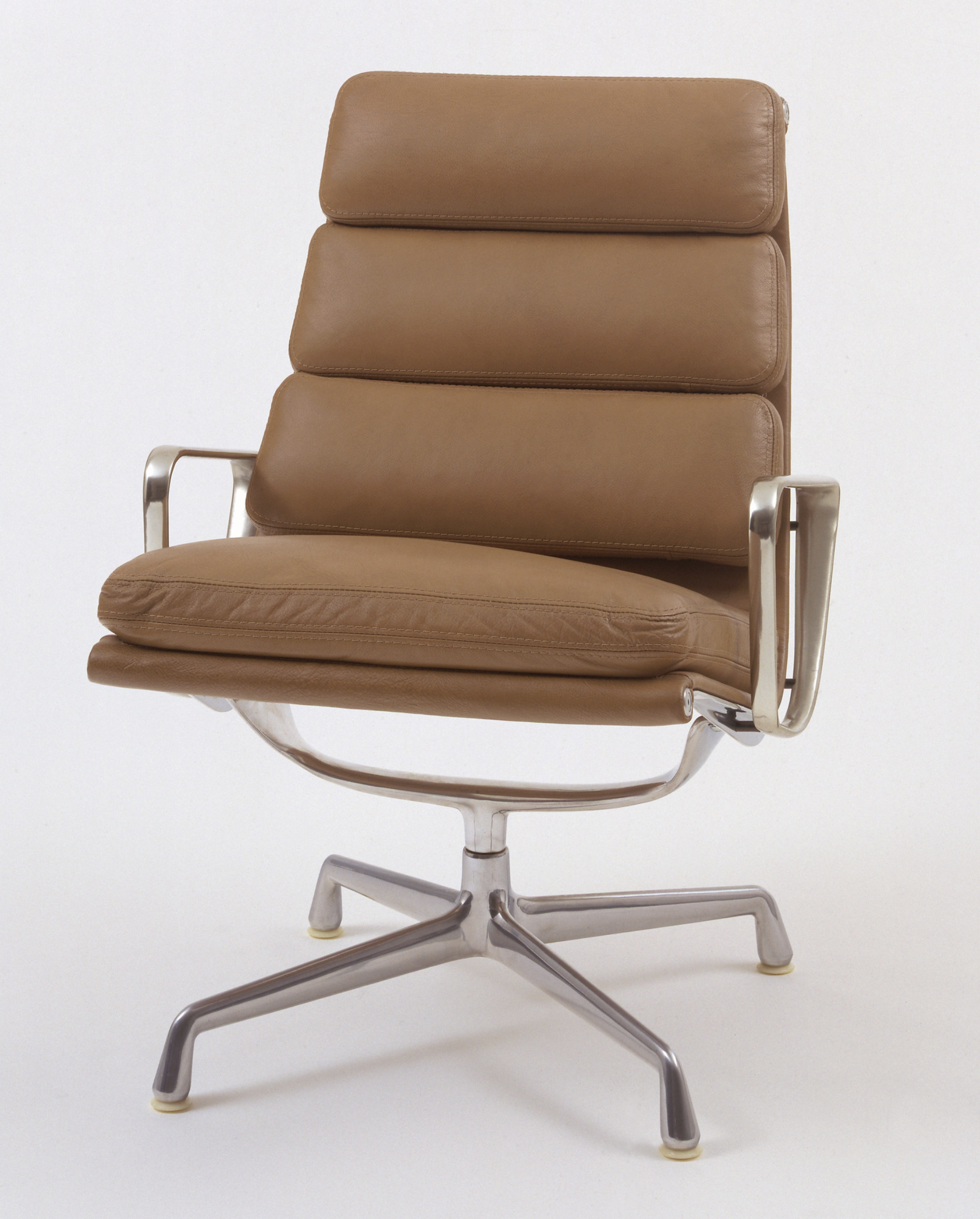 Polished die-cast aluminum, leather cushions with polyester foam padding, and nylon glides