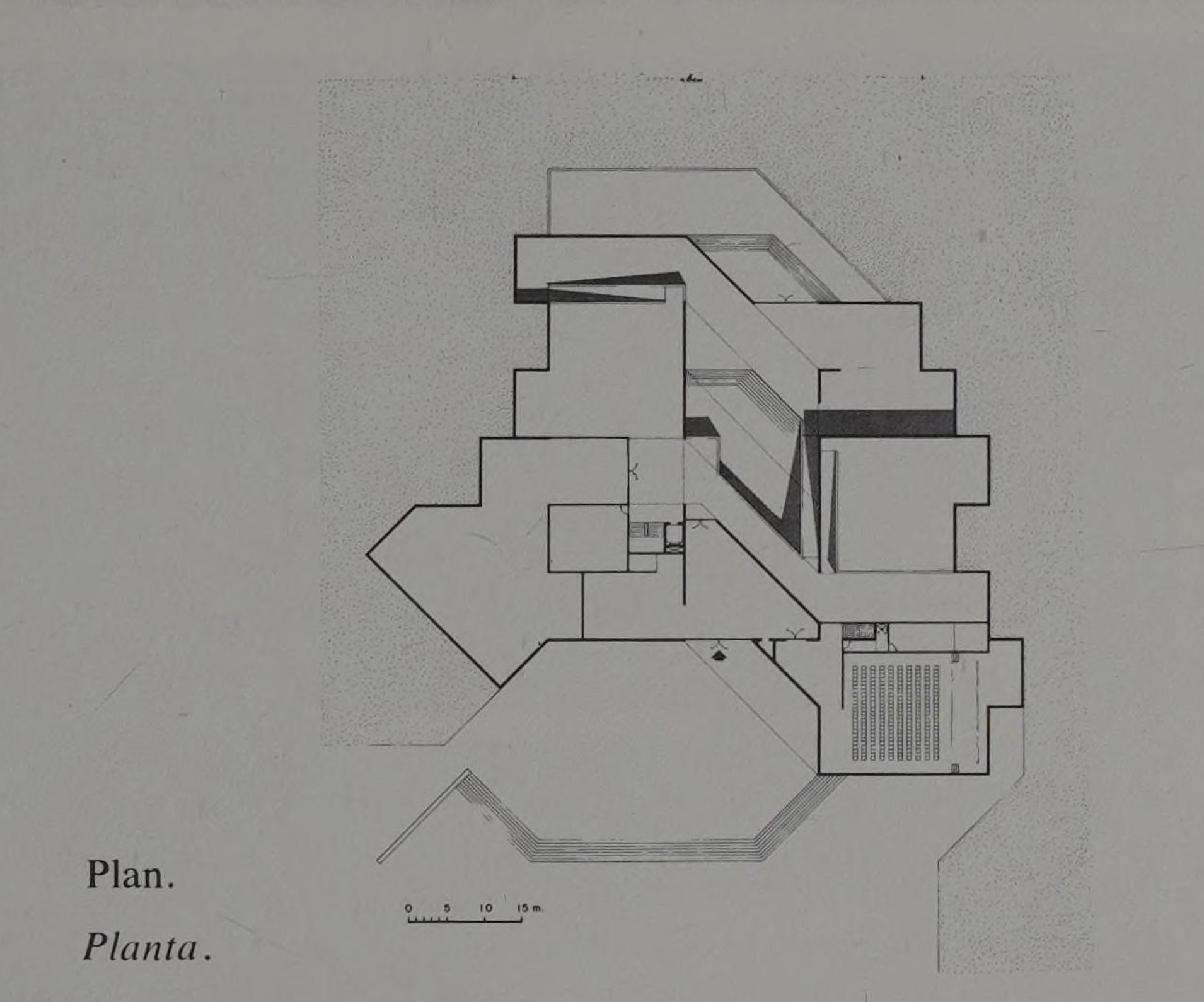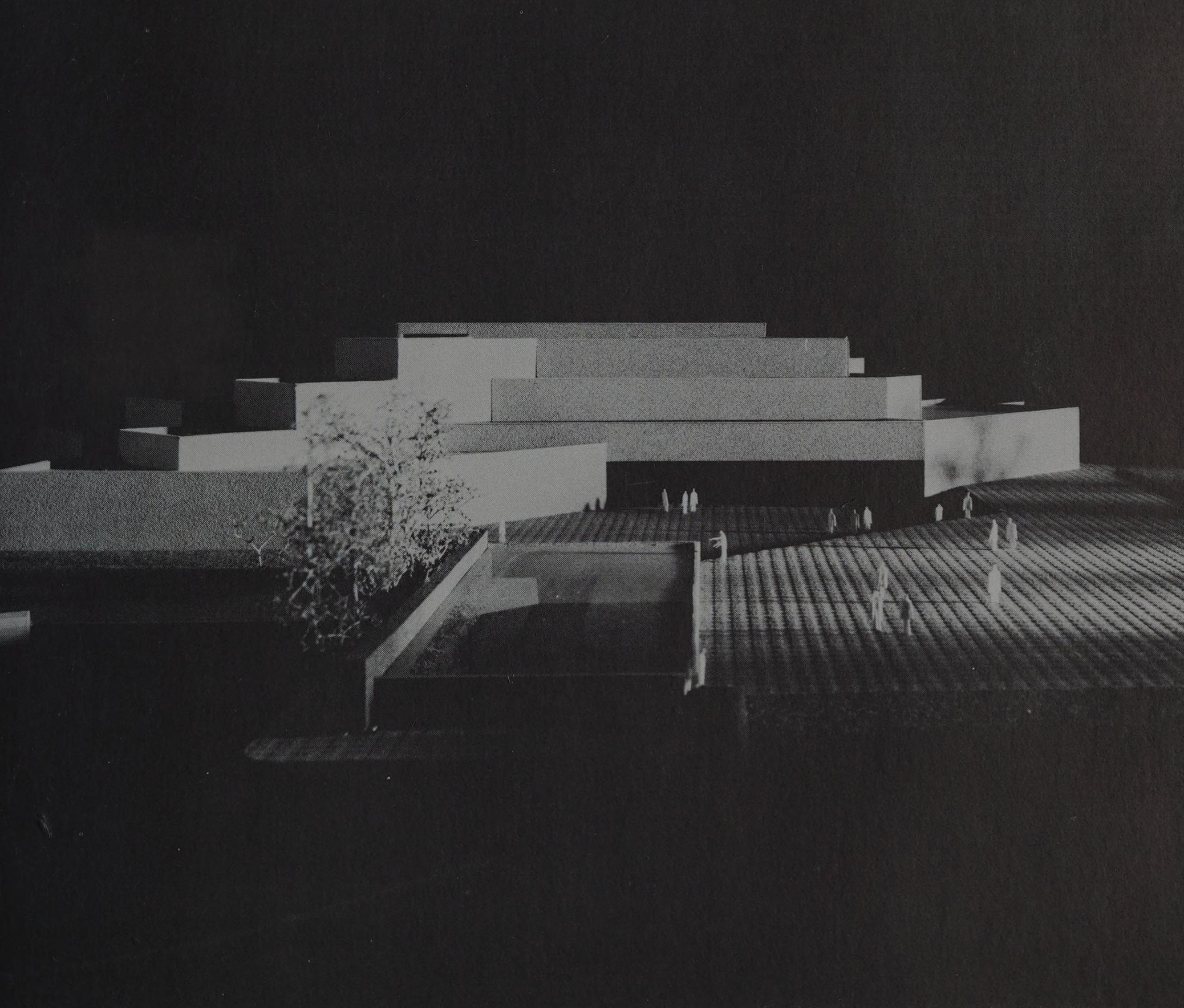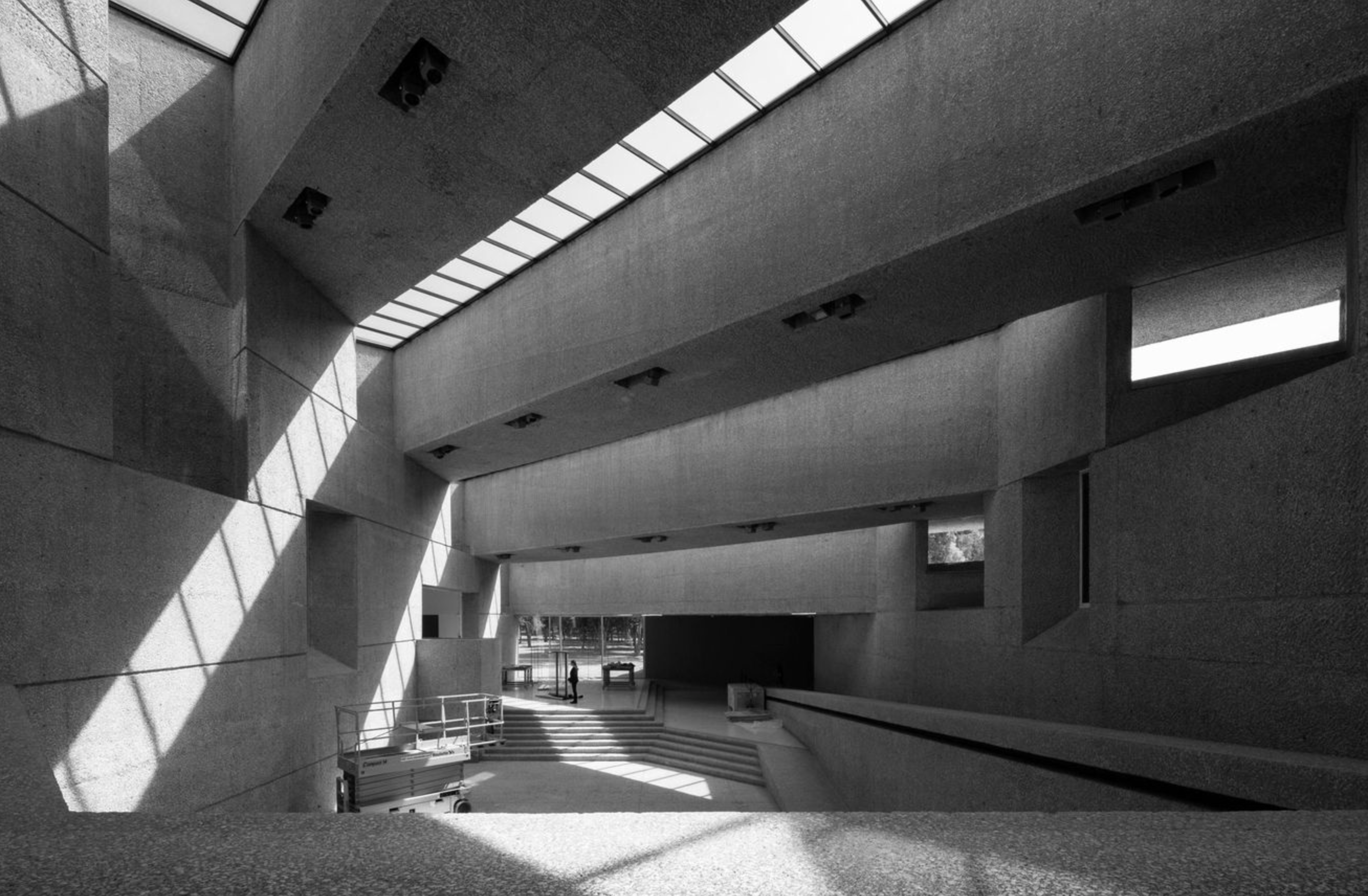 auditorium and projection room, a library, cafeteria and a workshop for mounting and restoring works of art.