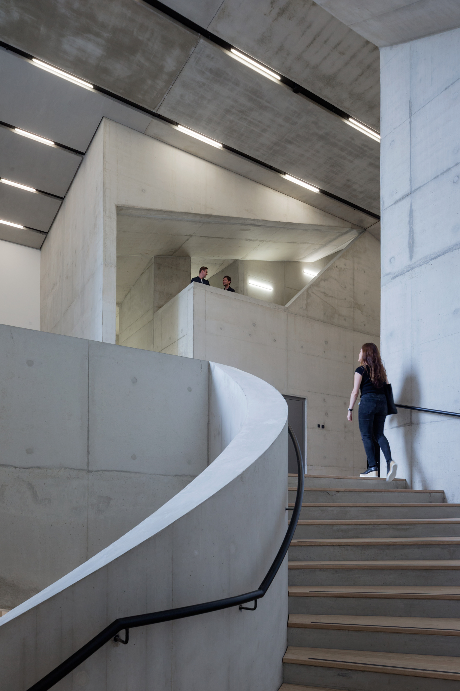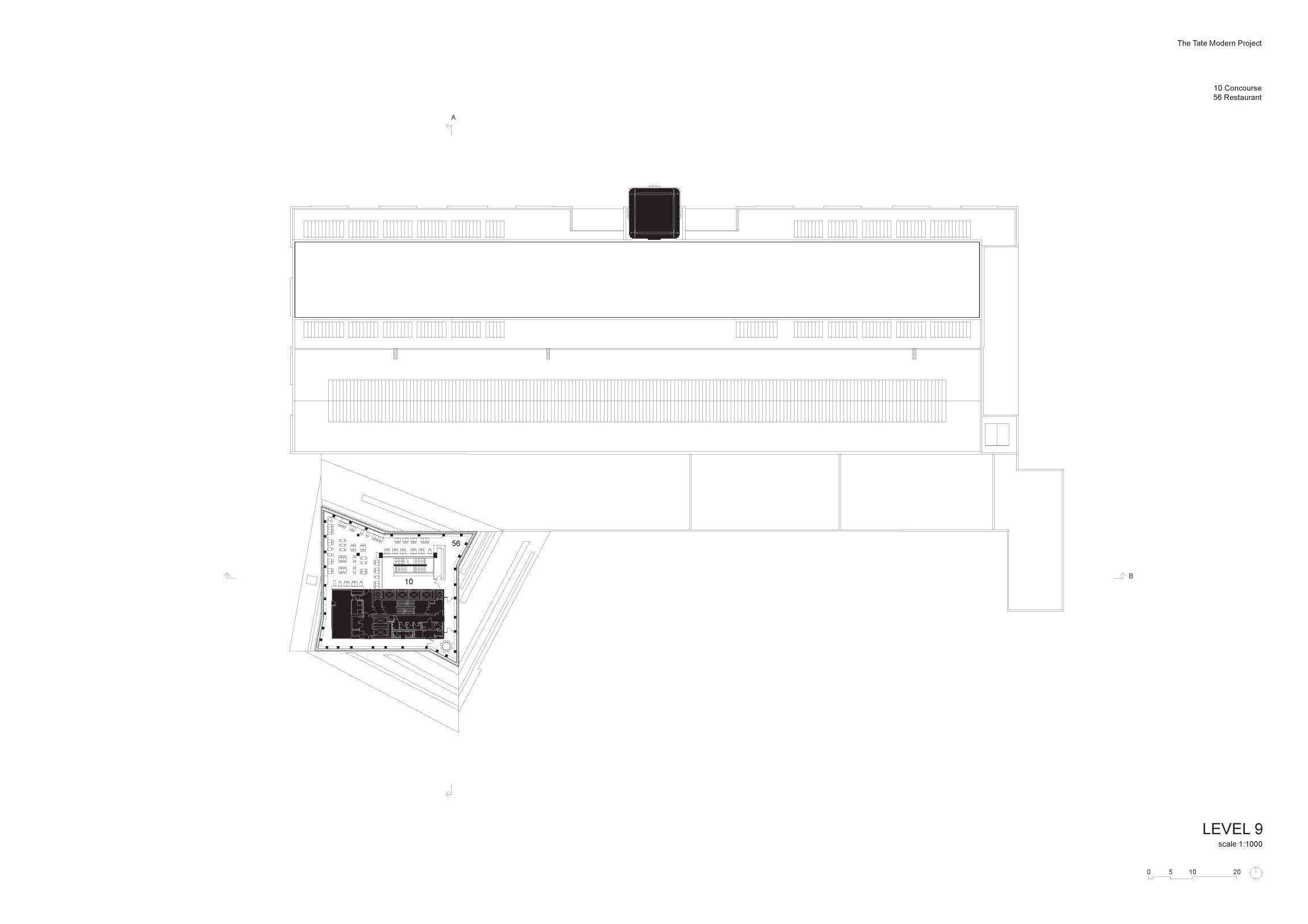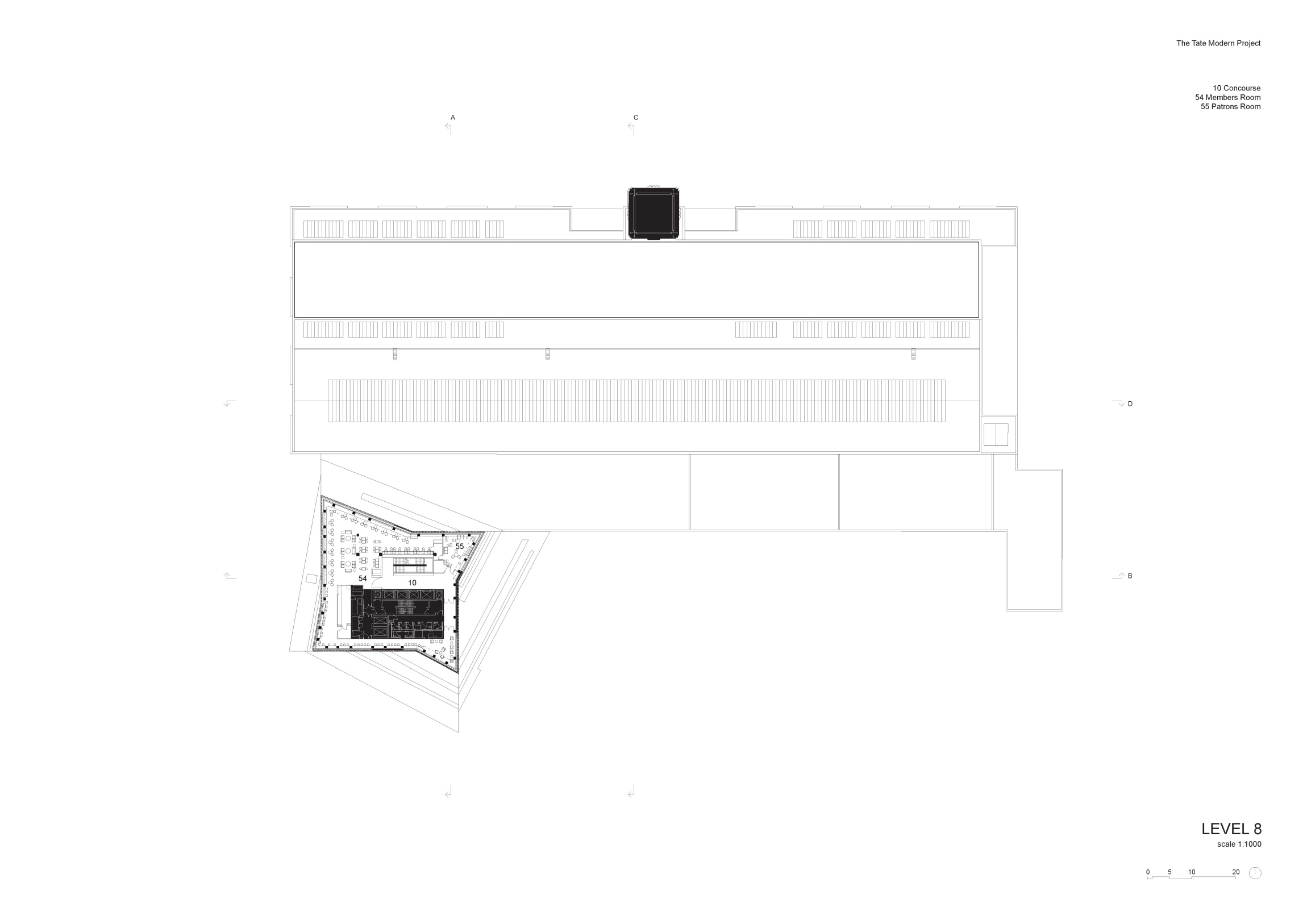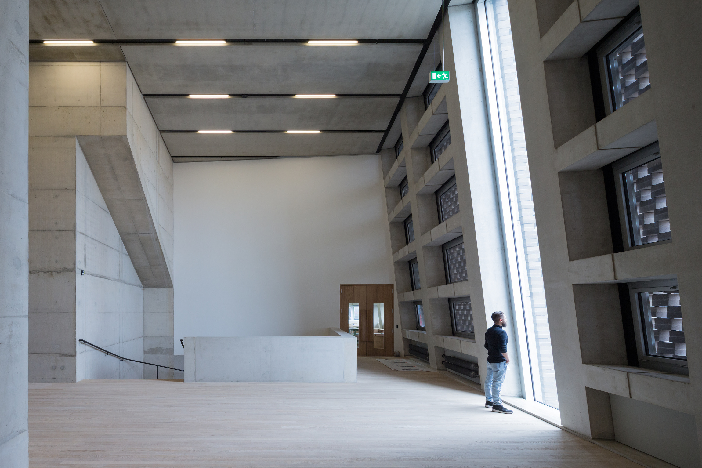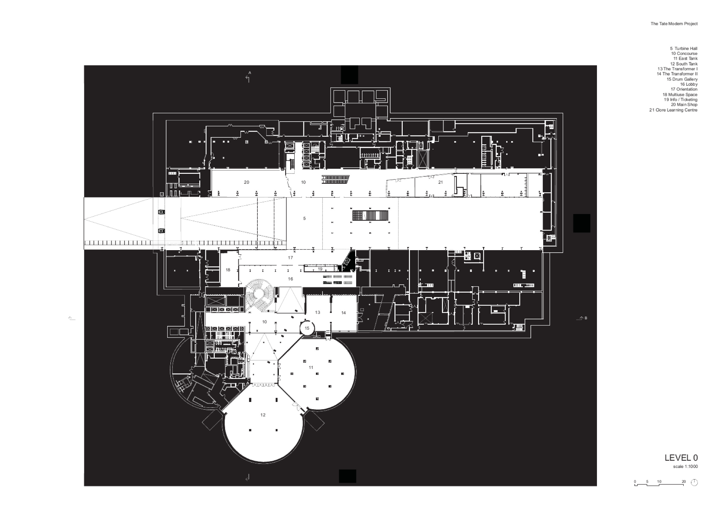 has entrances at all four points of the compass, and develops its own urban topography, which is also intended to accommodate art exhibitions and film shows. A ramp at the main entrance on the west side will take the anticipated two million