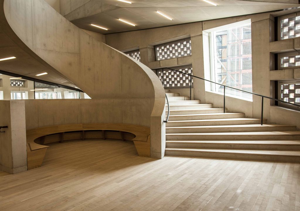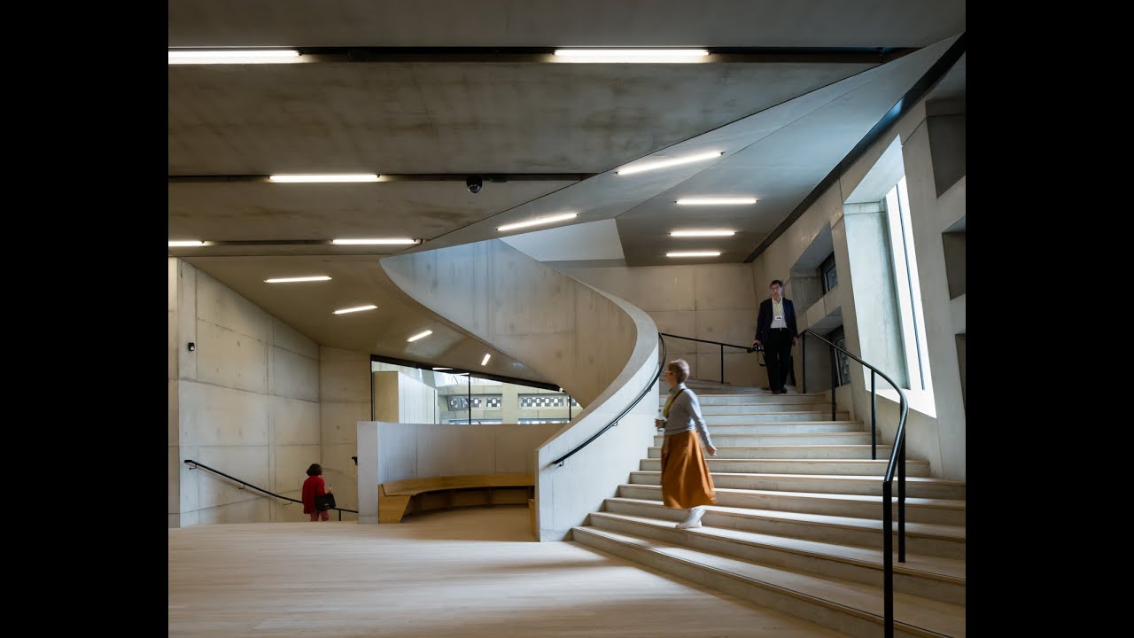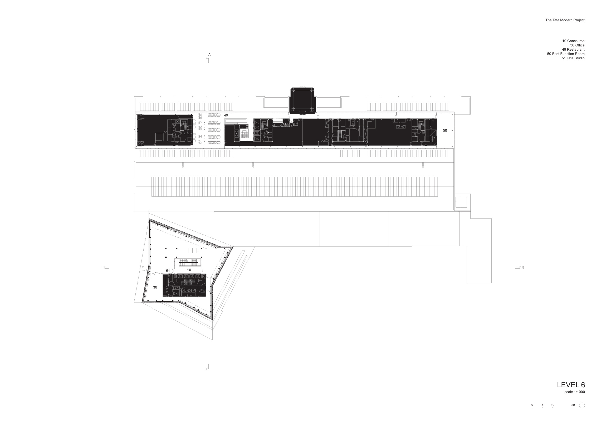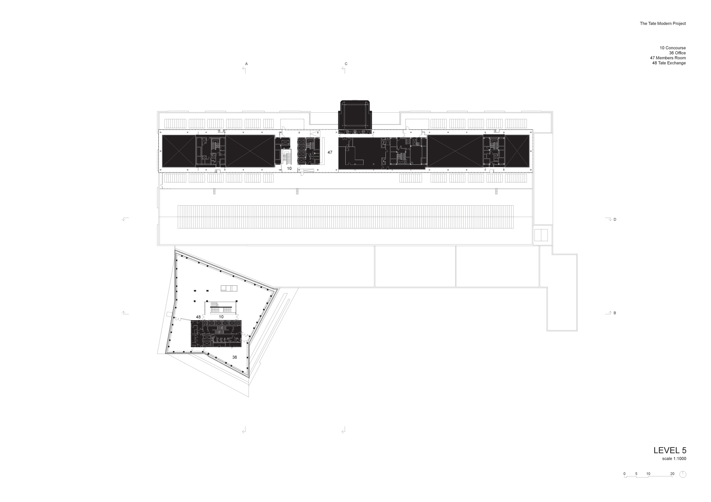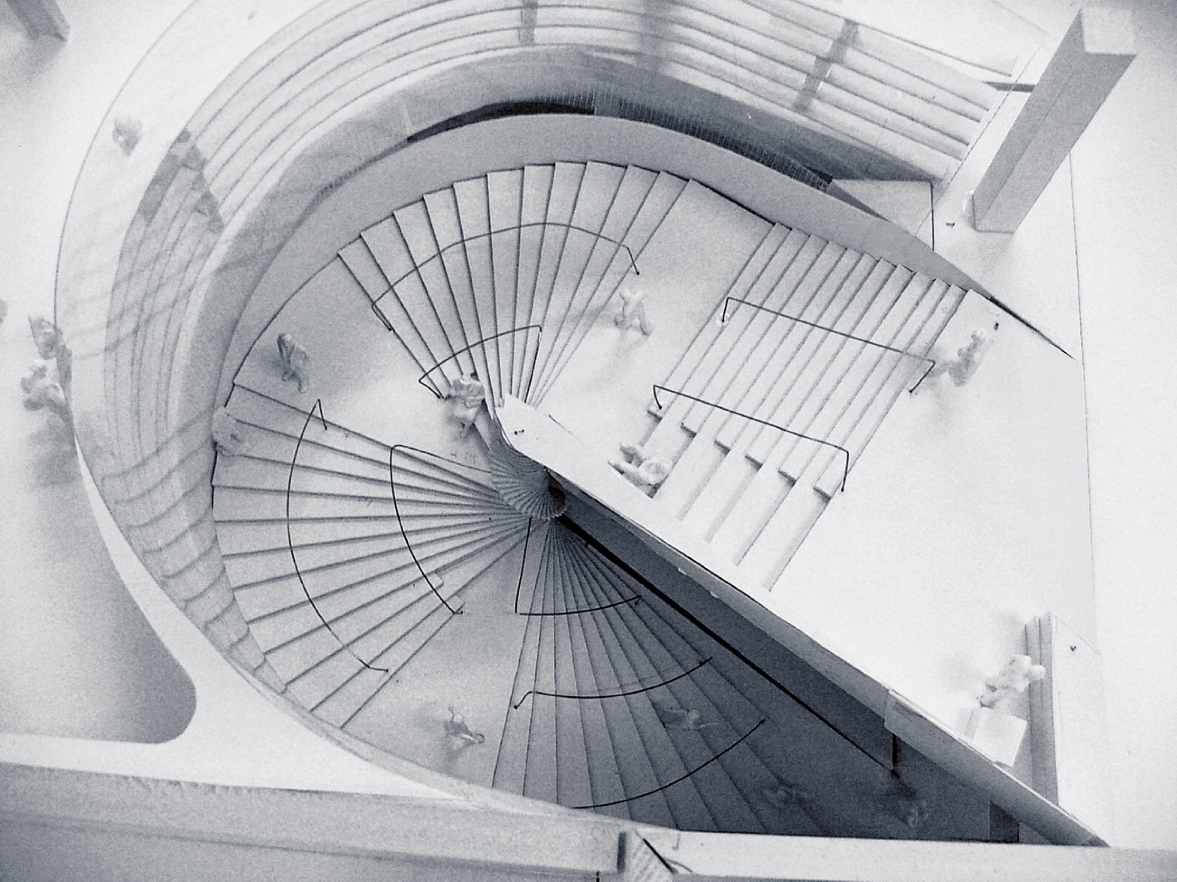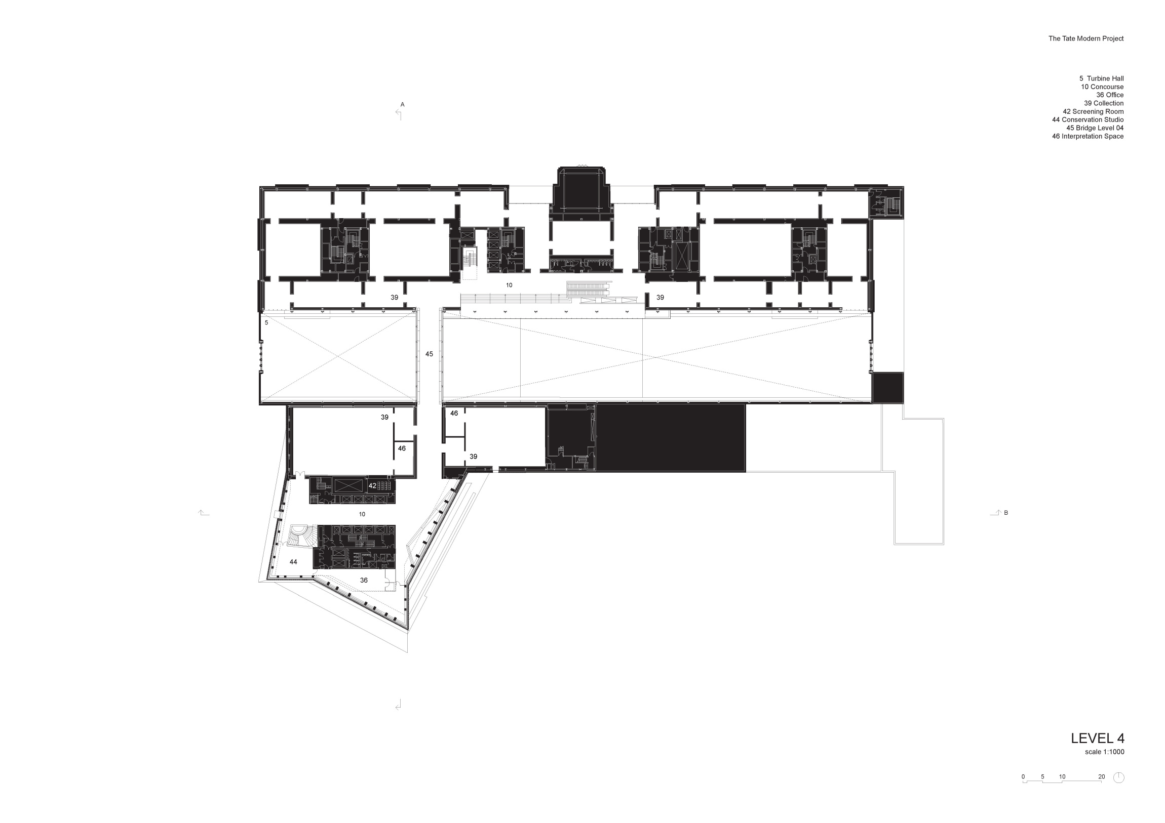 has entrances at all four points of the compass, and develops its own urban topography, which is also intended to accommodate art exhibitions and film shows. A ramp at the main entrance on the west side will take the anticipated two million