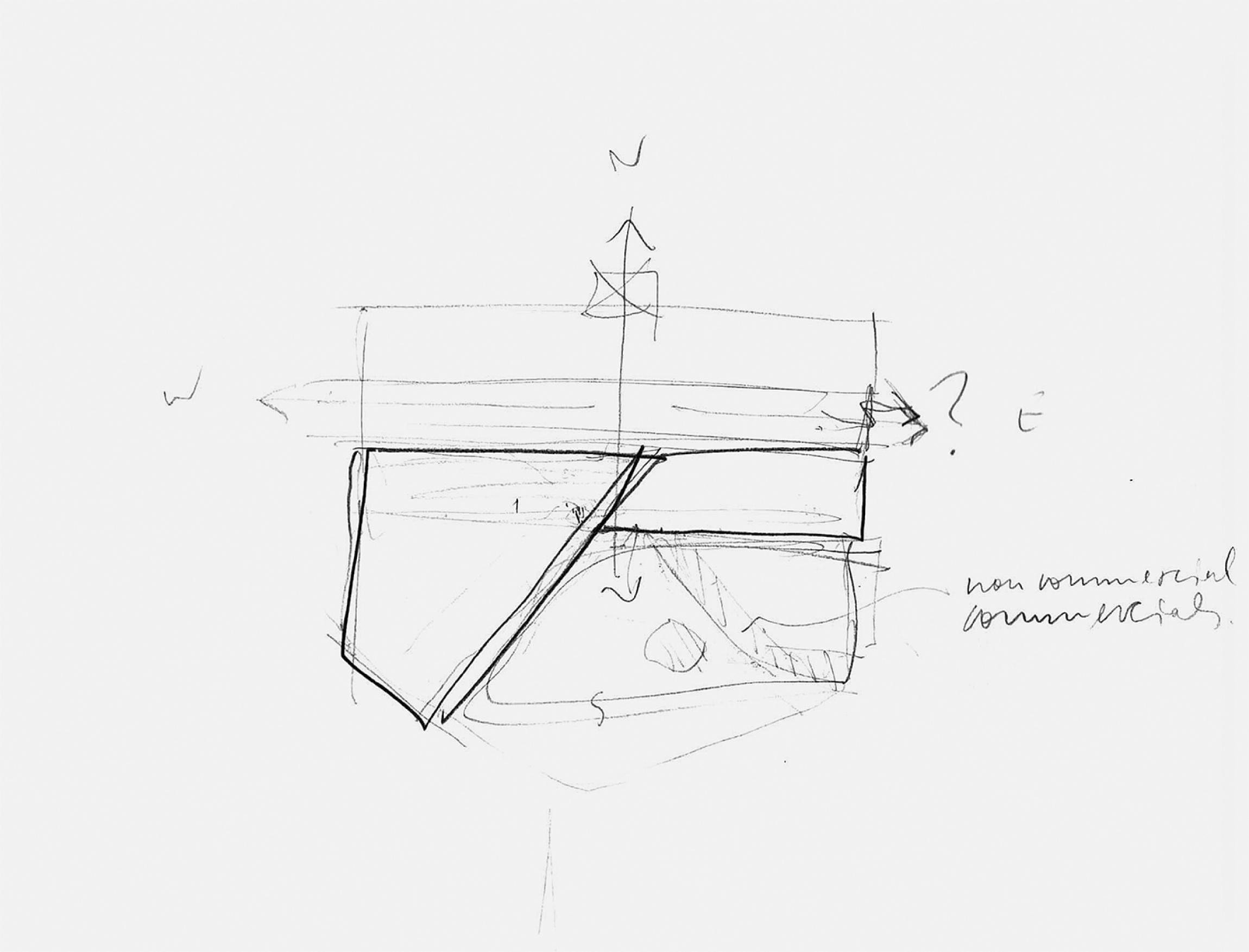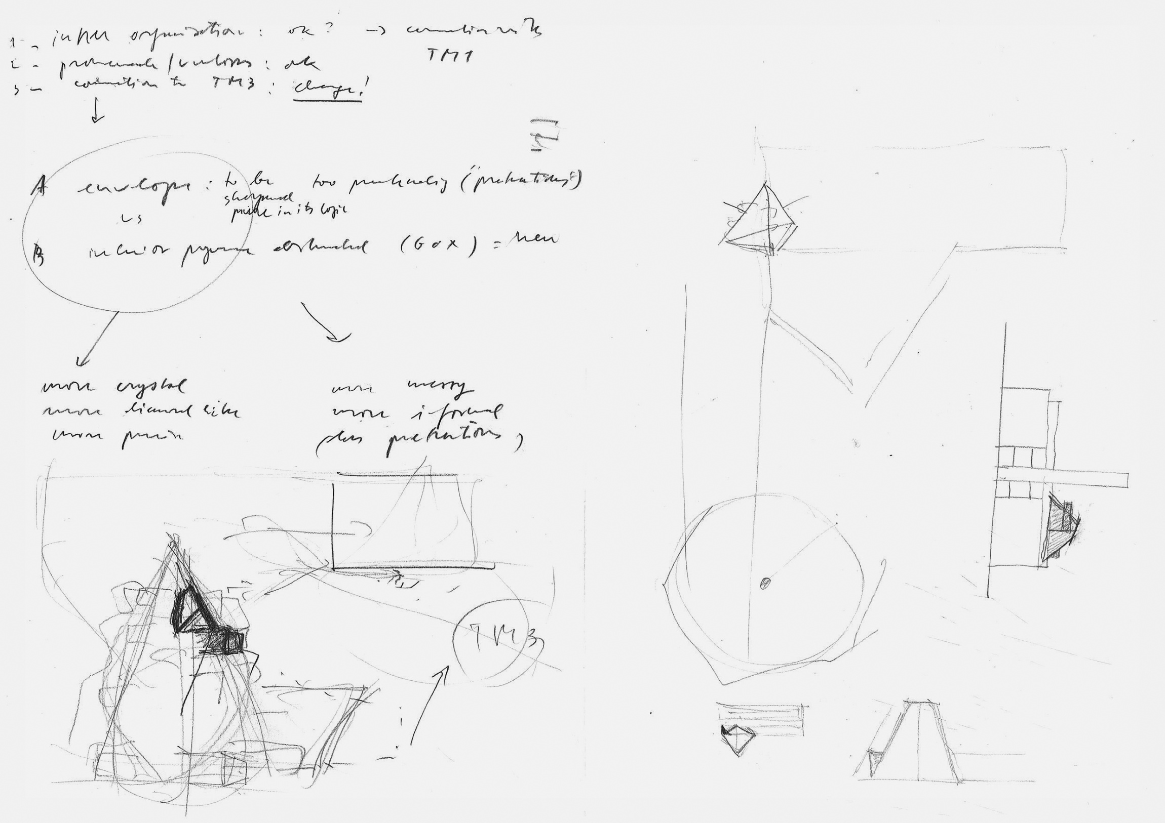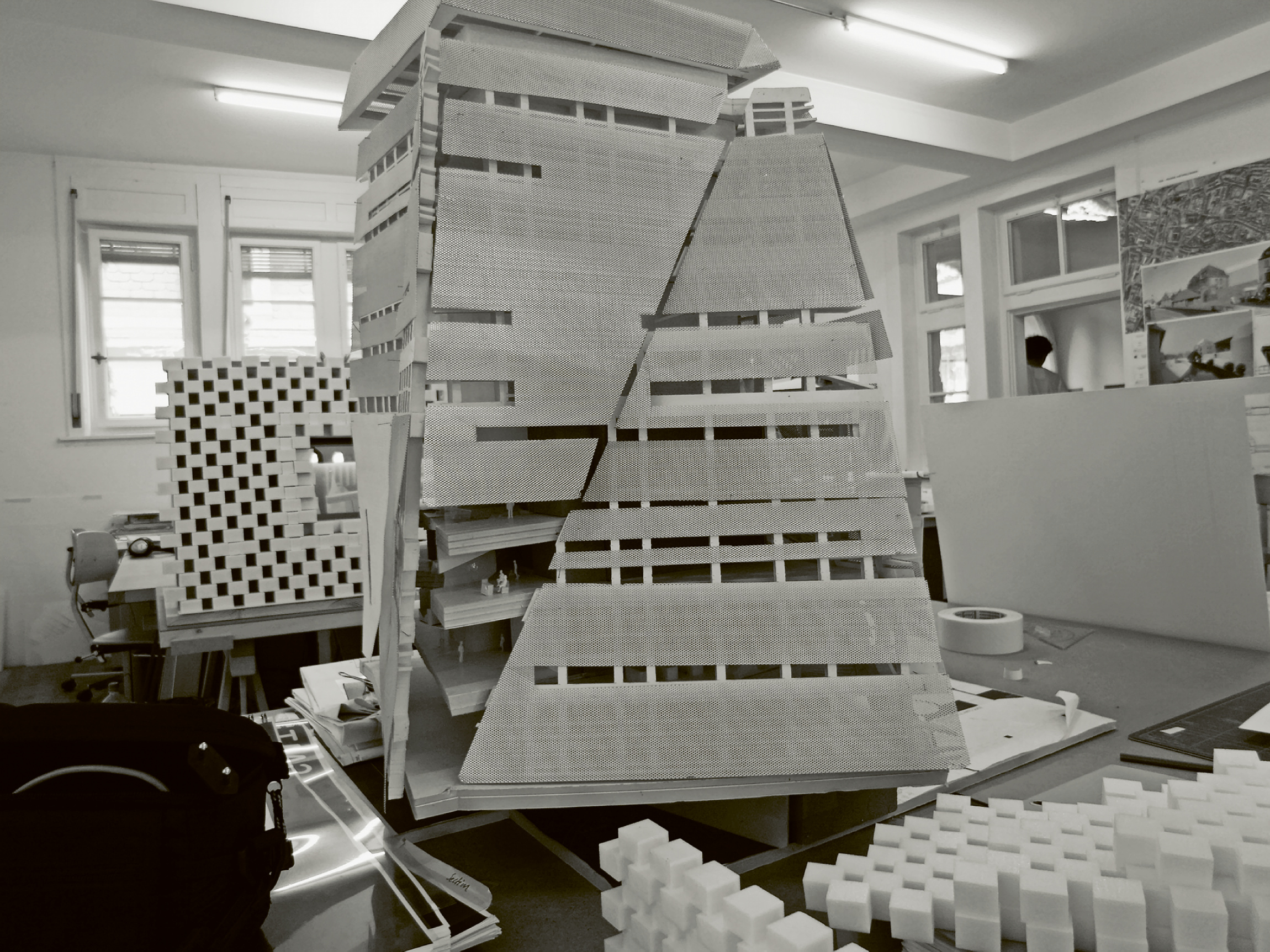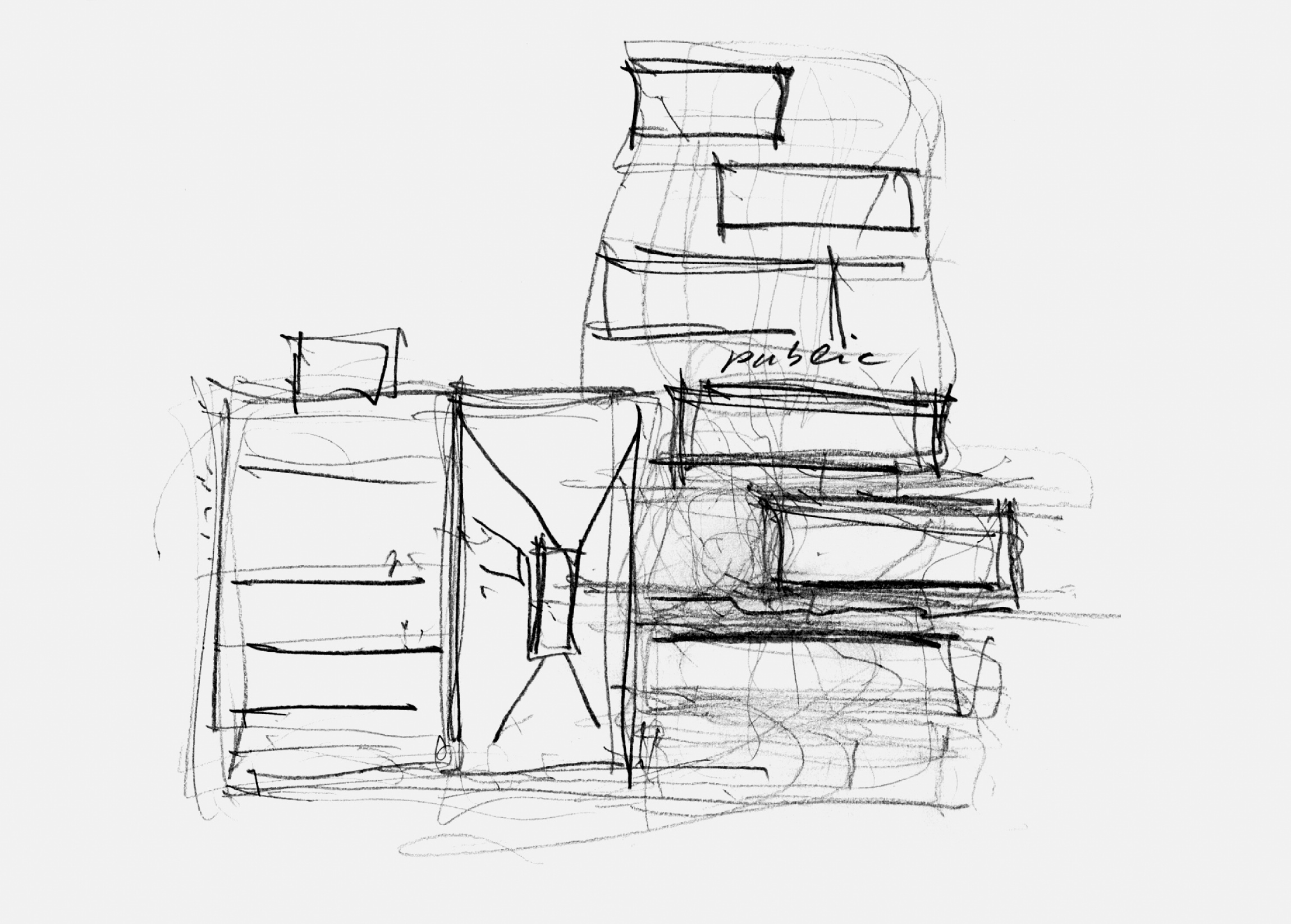Herzog & de Meuron took these two features as the starting-point for their design. The surrounding buildings were pulled