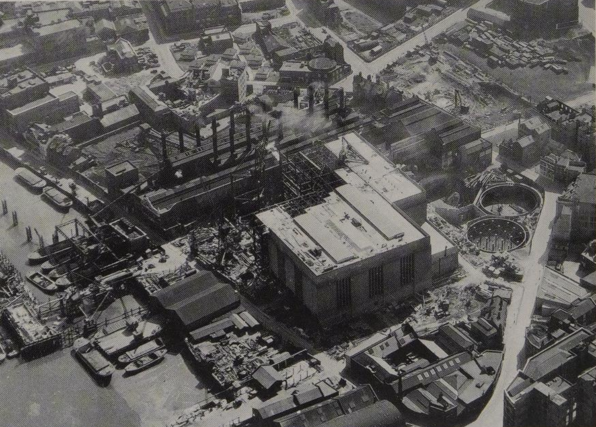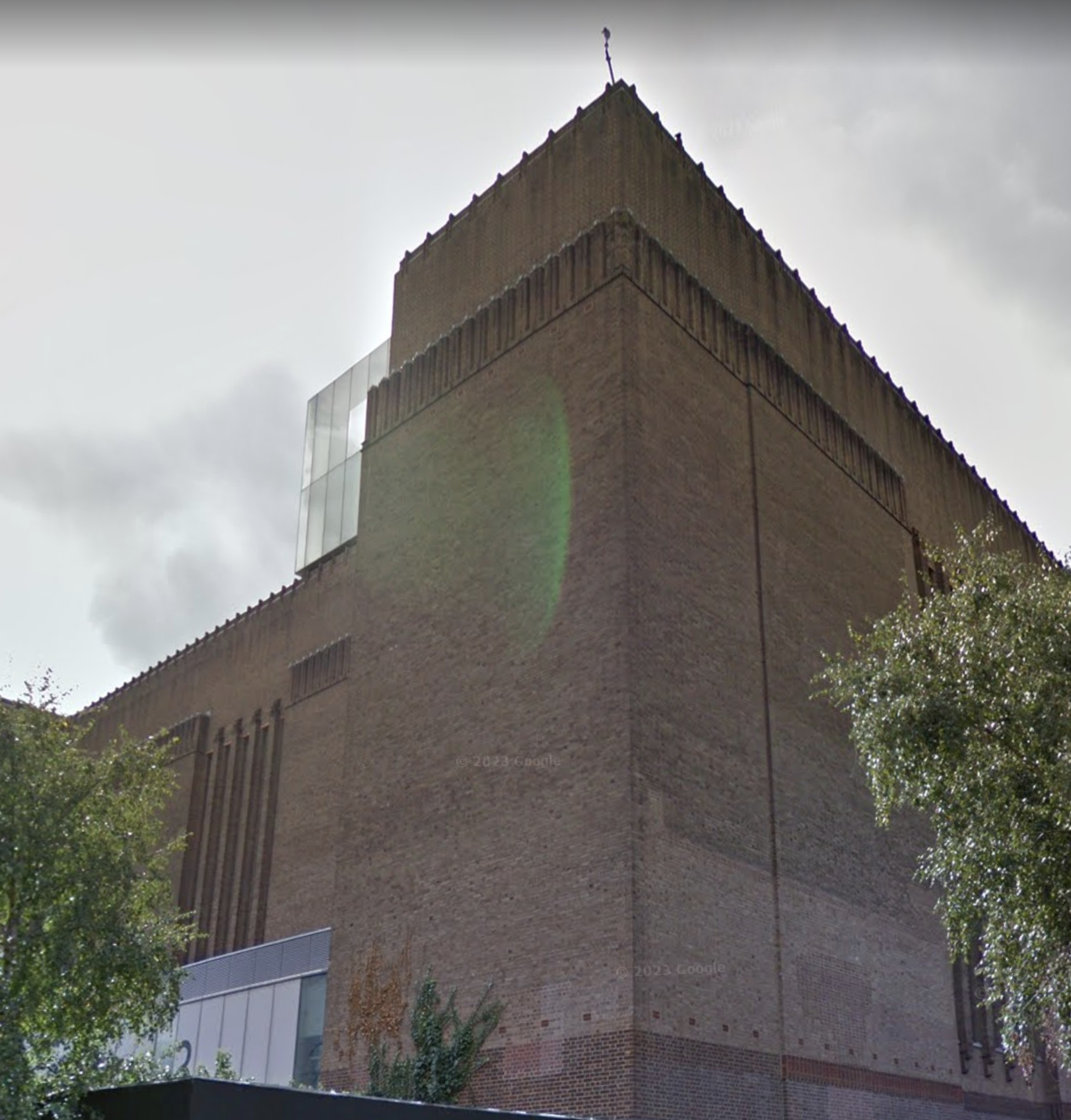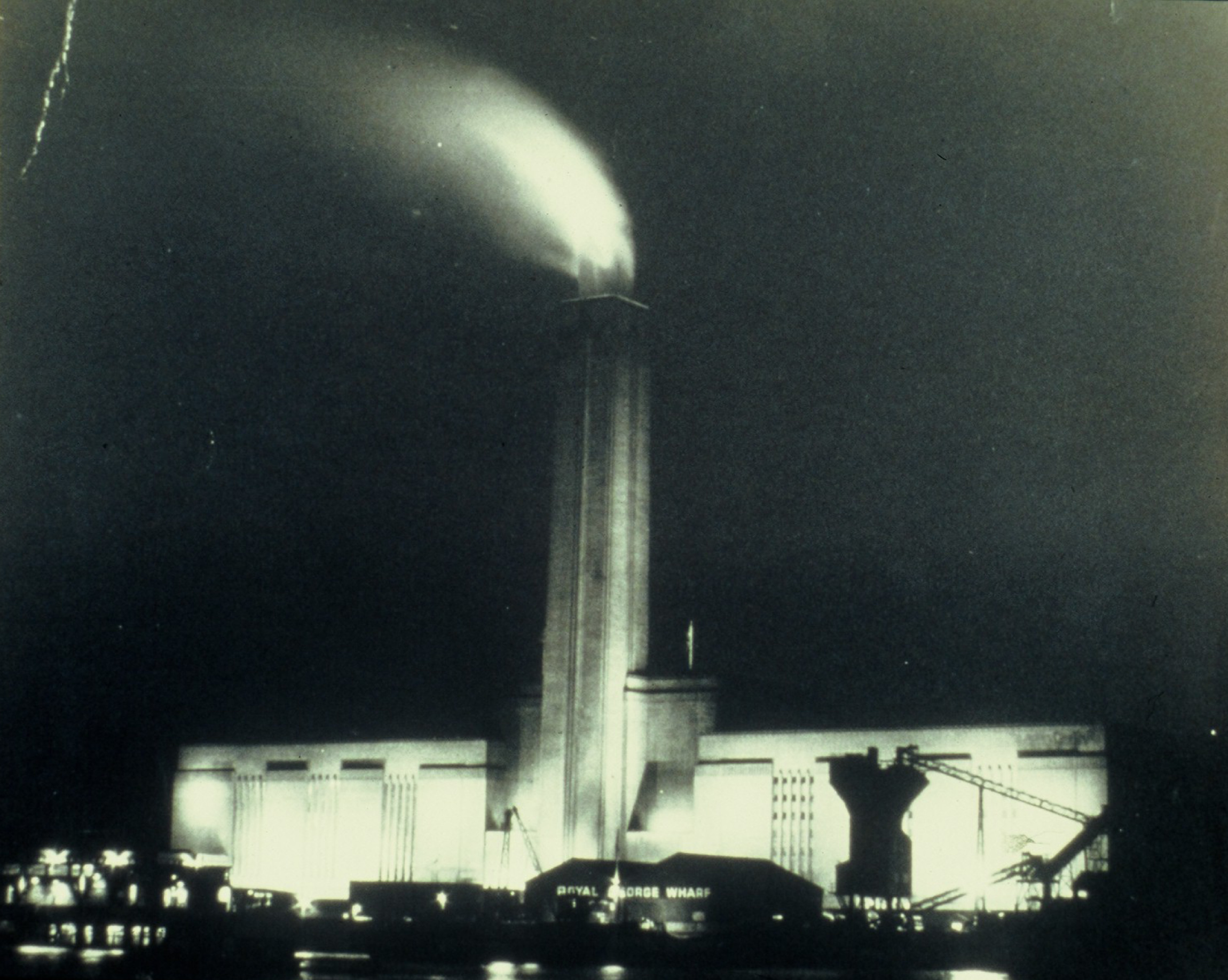 designed by Giles Gilbert Scott between 1947 and 1963. The massive brick structure on the Thames is an urban counterpart