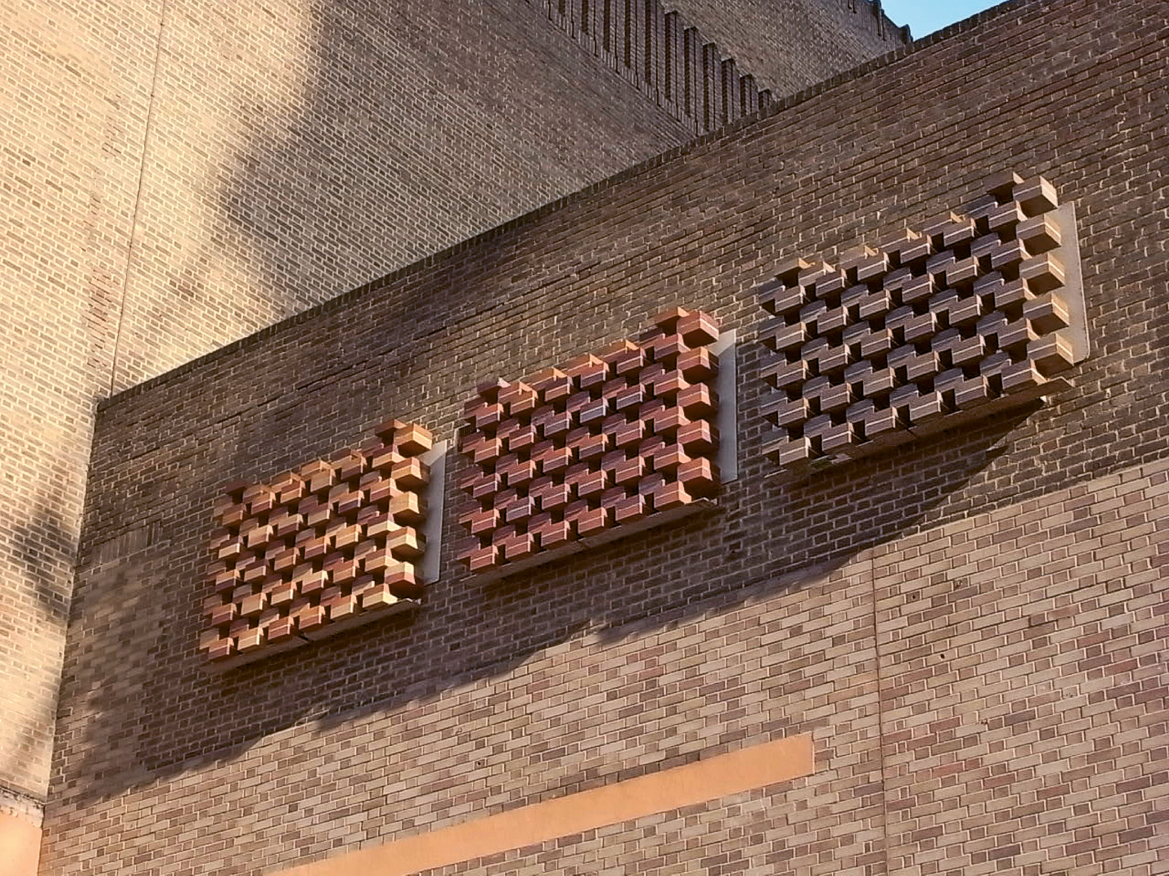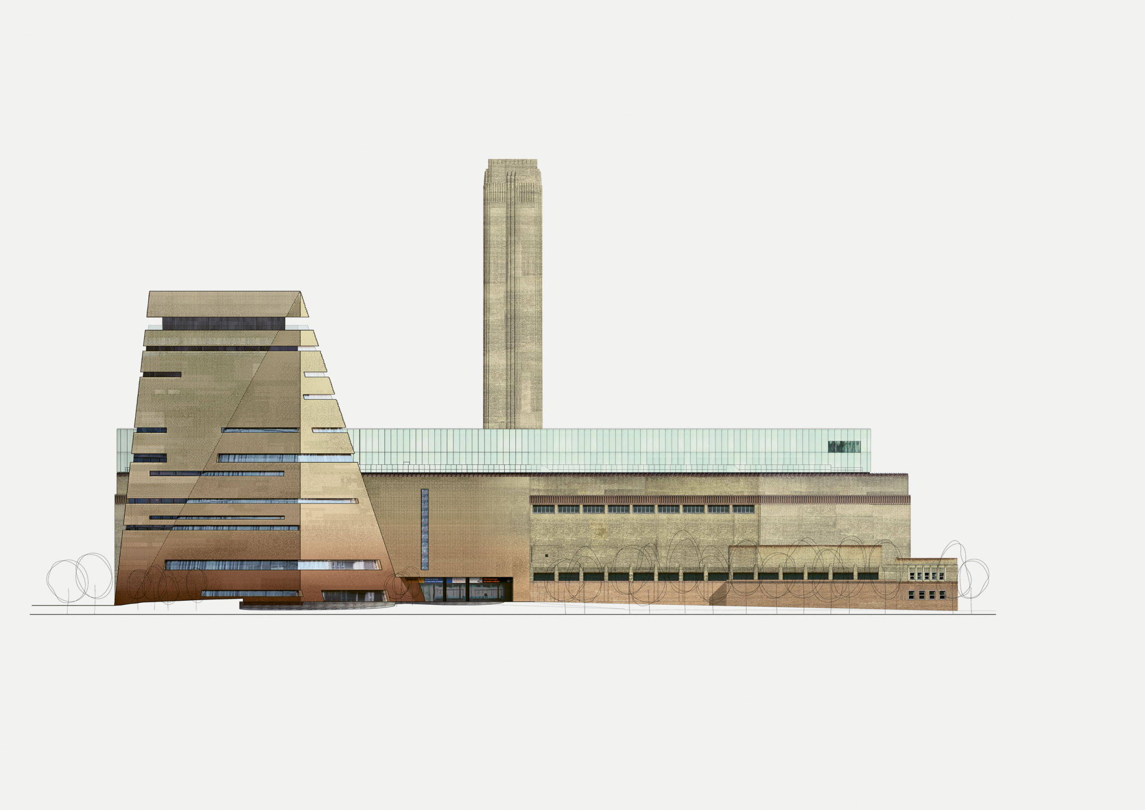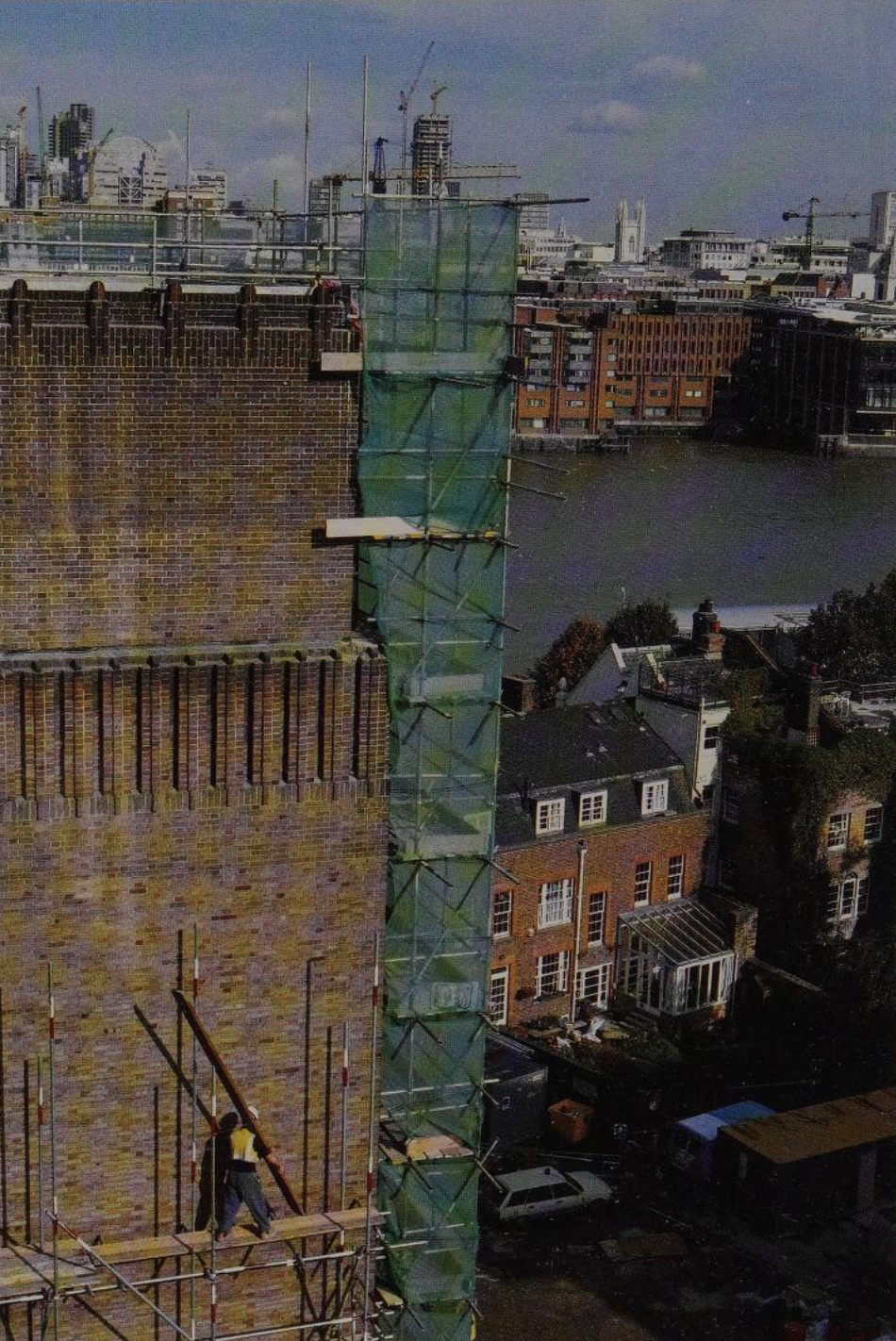 designed by Giles Gilbert Scott between 1947 and 1963. The massive brick structure on the Thames is an urban counterpart