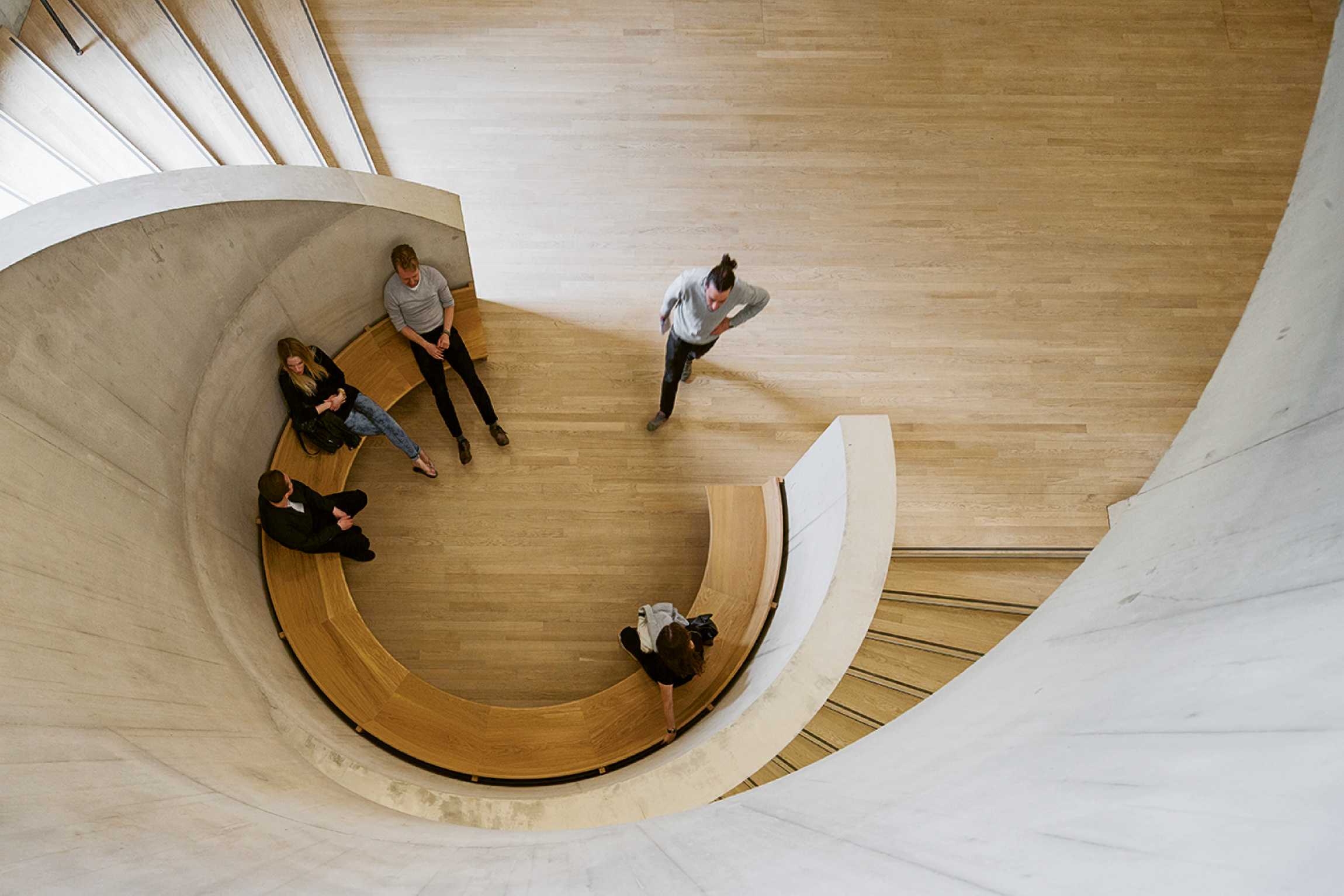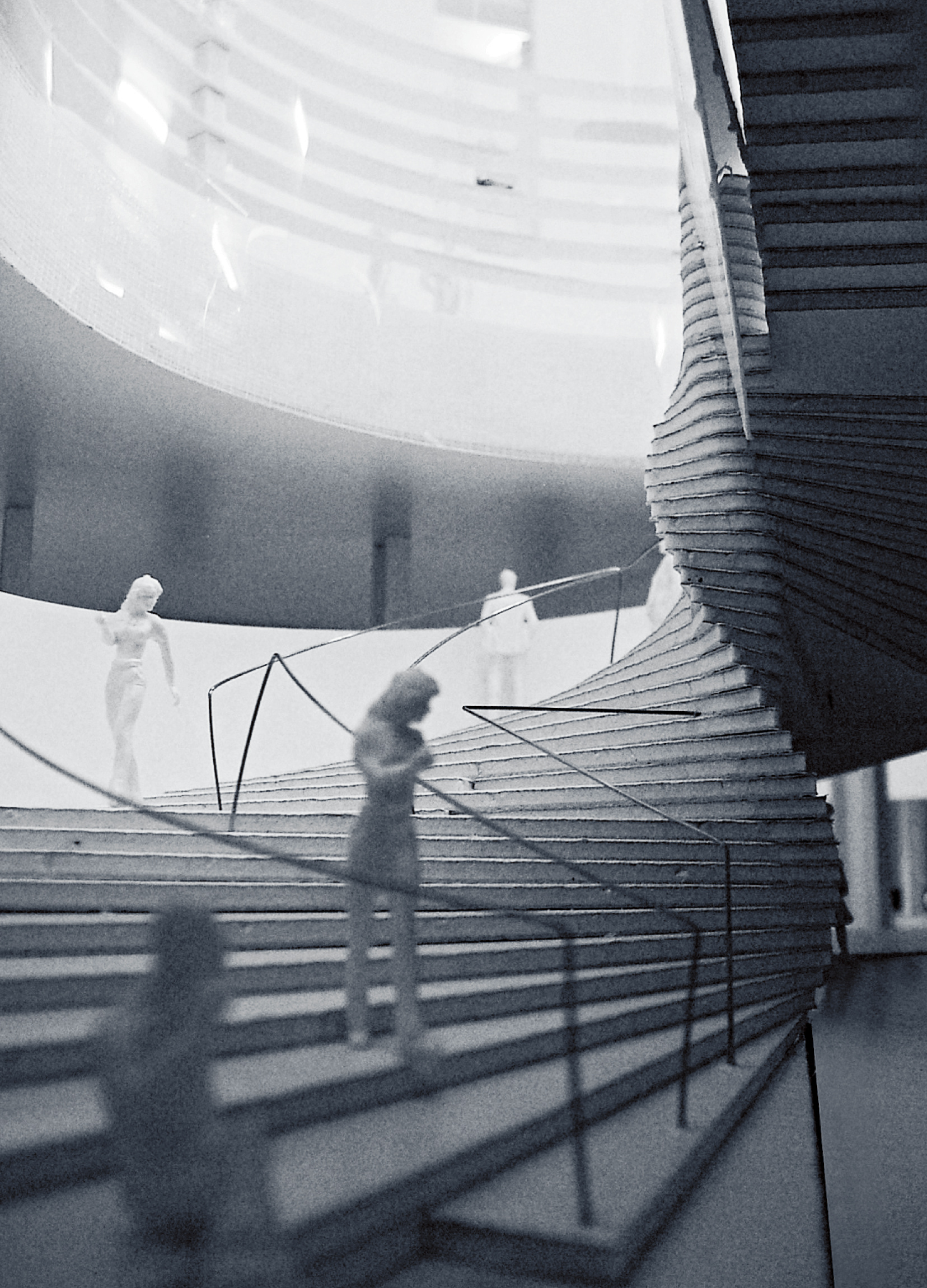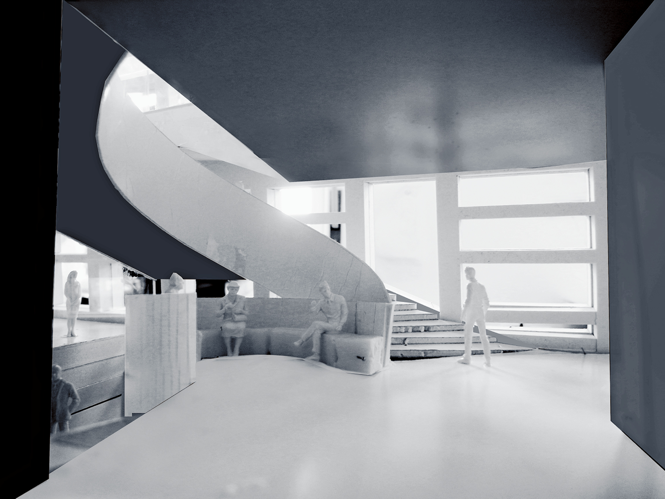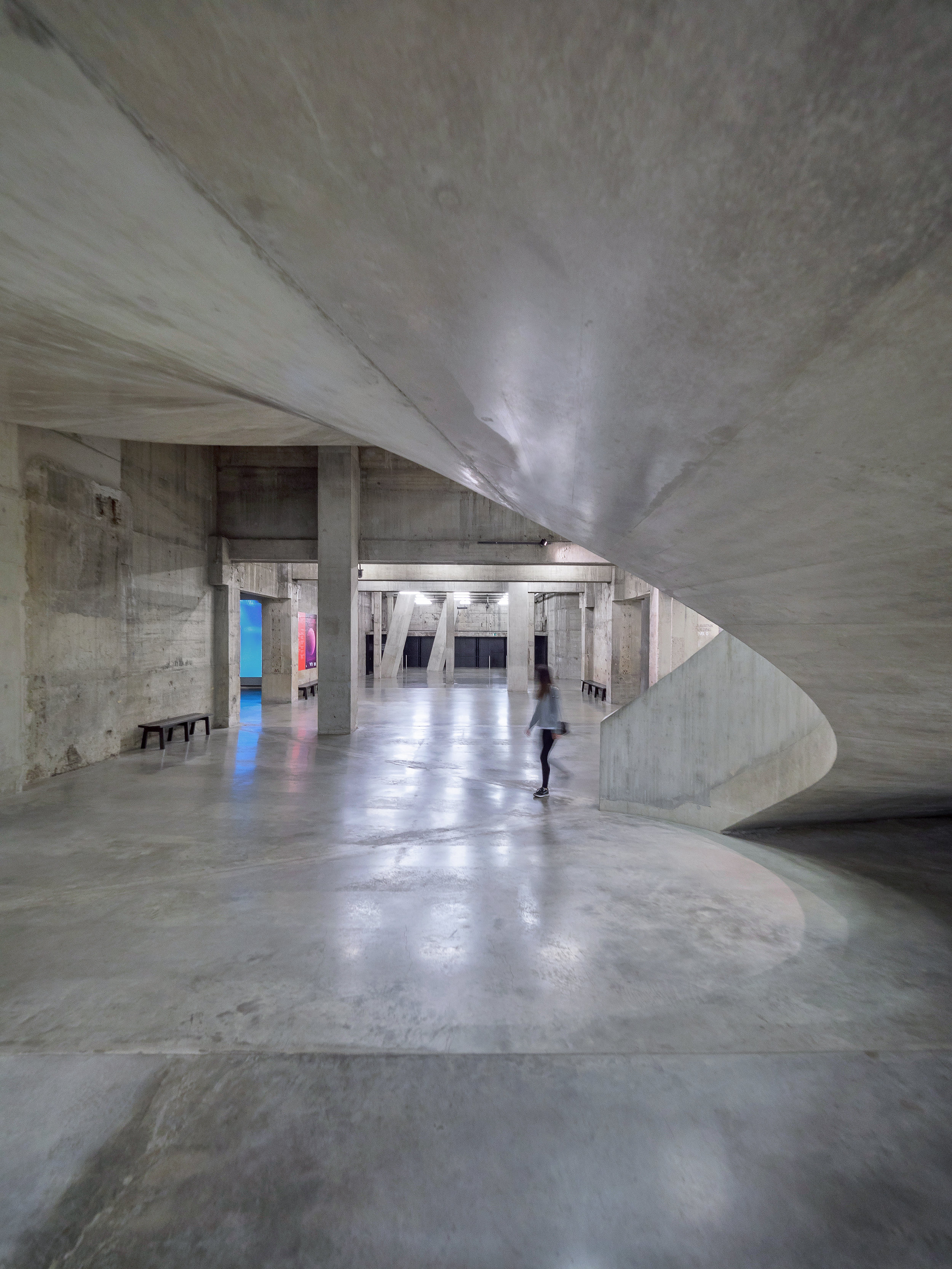 former oil-tank rooms. The space is designed dynamically: loft-spaces, the spacious foyer and exhibition