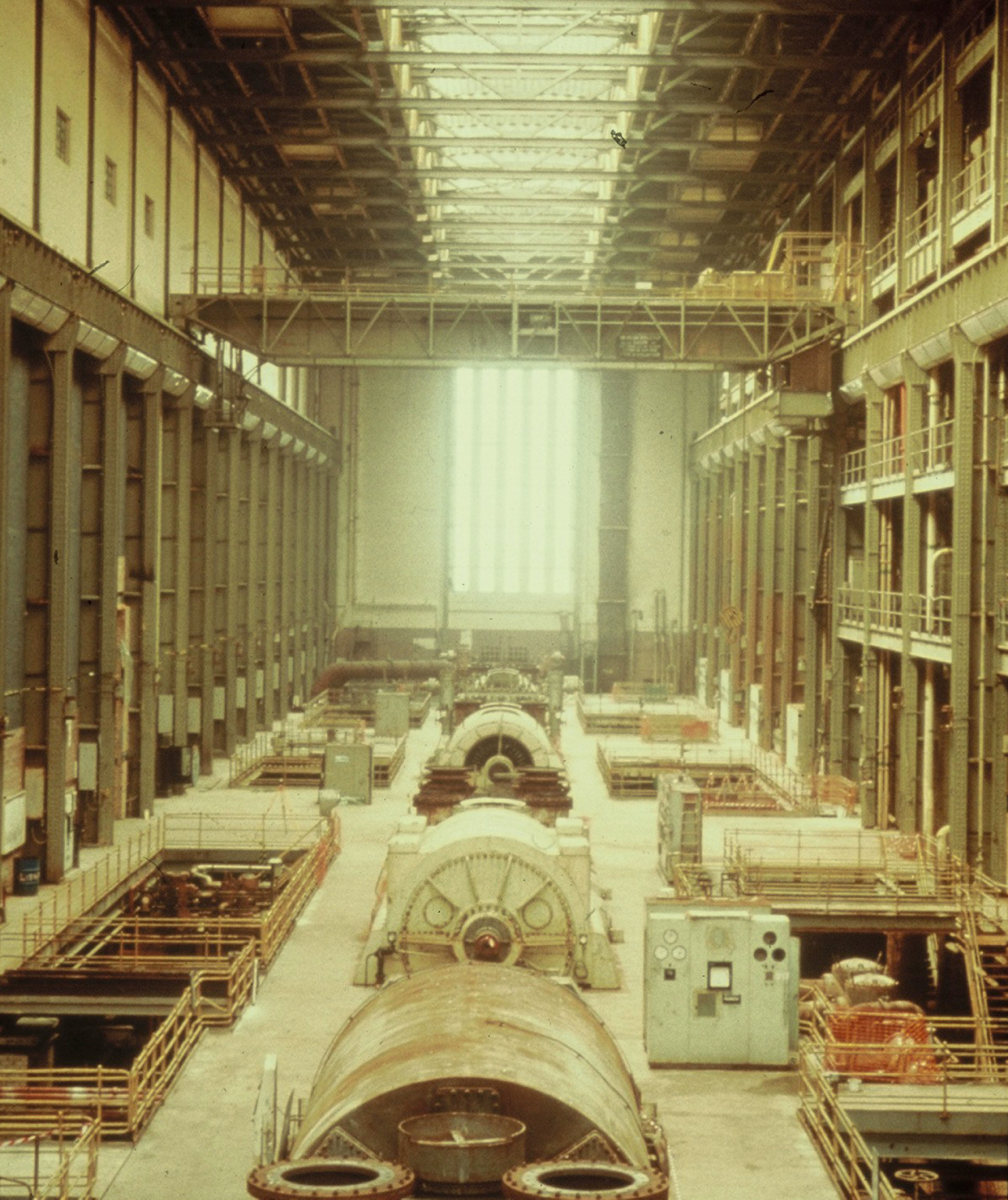 the structure, which is still used by the electricity company as a substation. The central turbine hall, which extends over