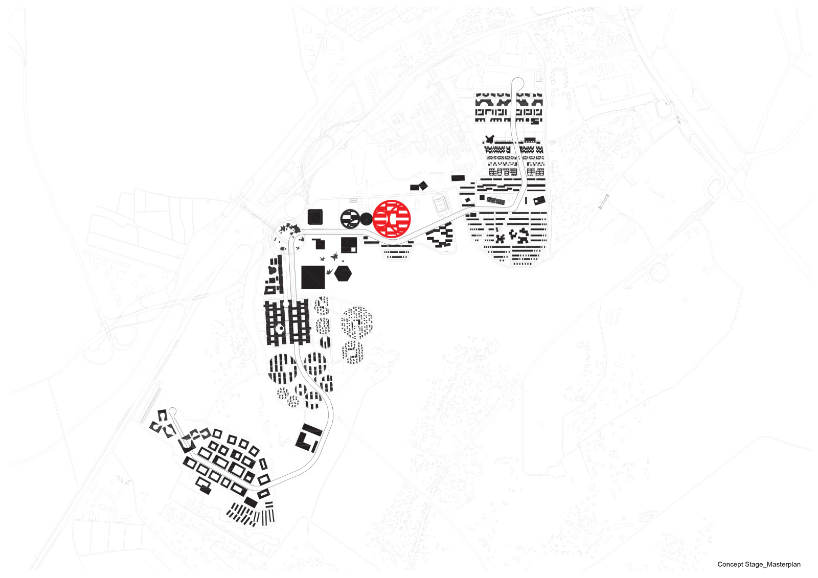 The urban scheme develops around the idea of five individual Districts, like urban islands, inserted in the picturesque landscape. Each of the five Districts has a singular shape, a specific program mix and is designed by a different architect, giving it a specific character and atmosphere.