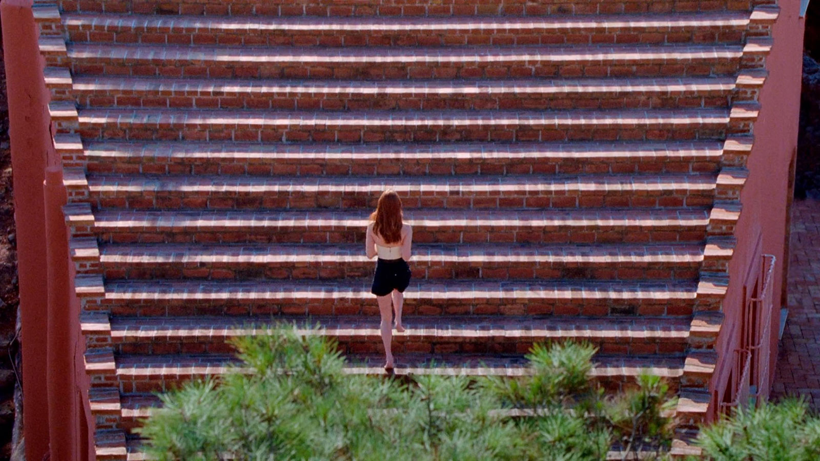 This unified mass, isolated on the rocky heights of a Mediterranean cliff, is what gives the building its heroic and romantic appeal. However, these same characteristics also strangely make the building belong to its natural surroundings: the building’s linearity and the gradual slope of the staircase seem to echo the linearity of the site with its gradual ups and downs. In addition, the color of the building, often described as “Pompeian red,” is also subject to this paradox: on the one hand, it is not the typical Mediterranean (and modernist) white, which would make it stand out from its natural surroundings of sea, rock, and low shrubs; on the other hand, the deep red is completely foreign to an island setting of natural blue, brown, and green tones.