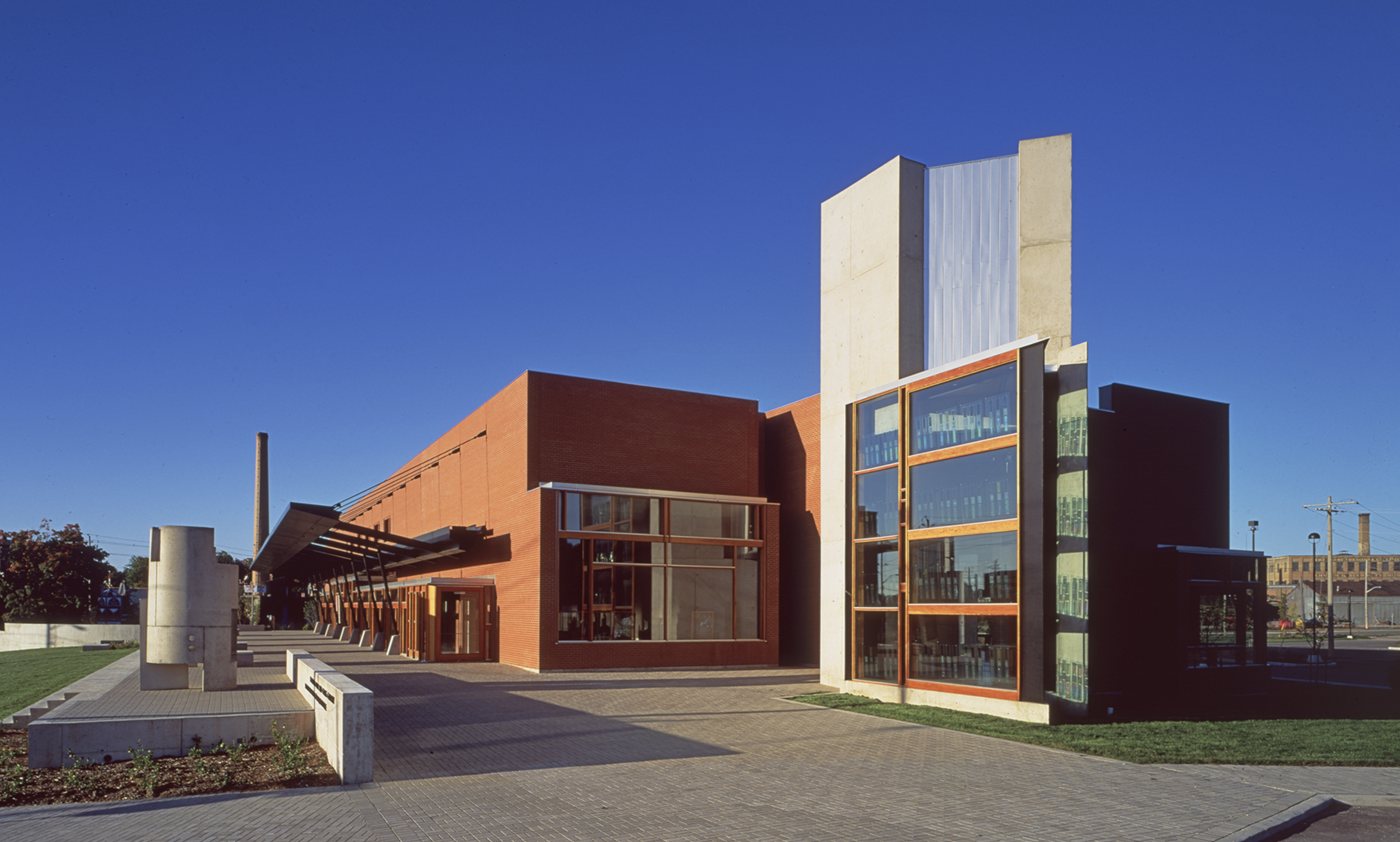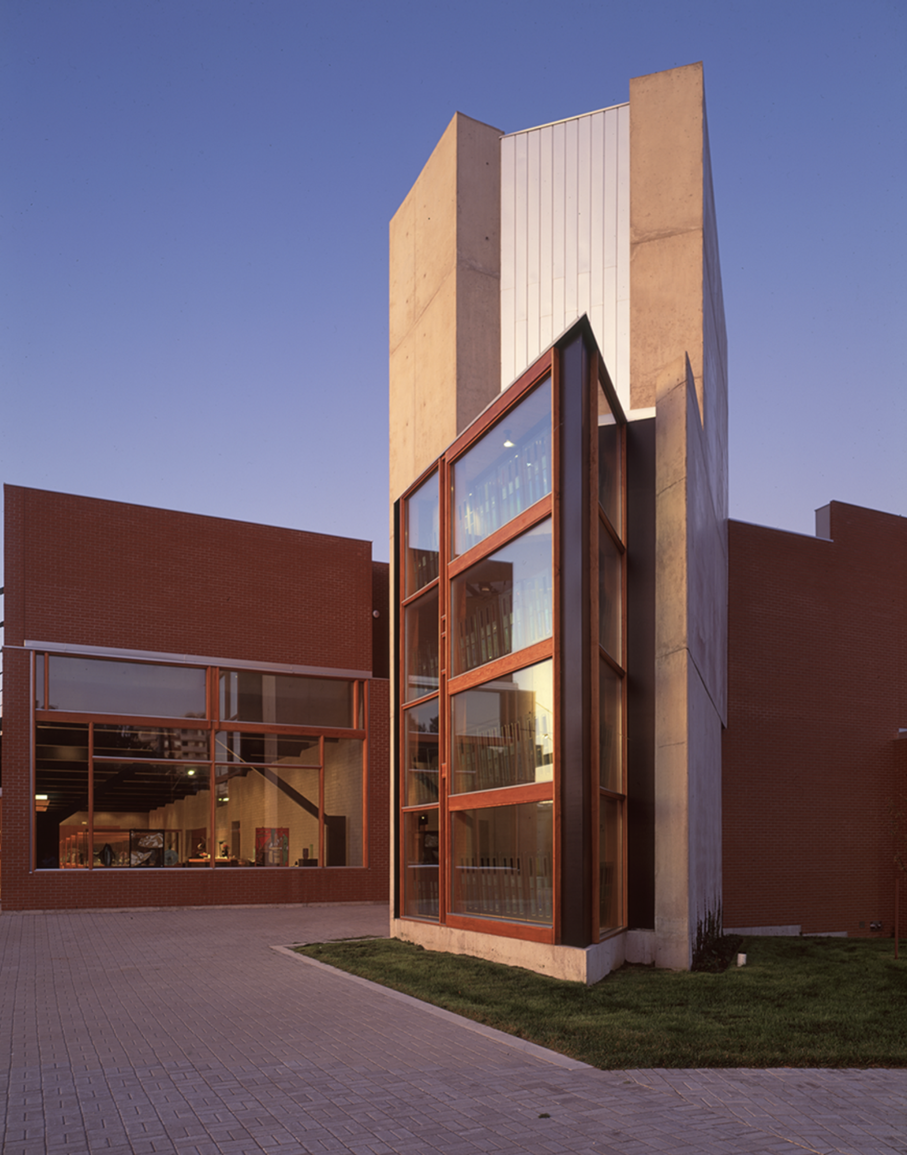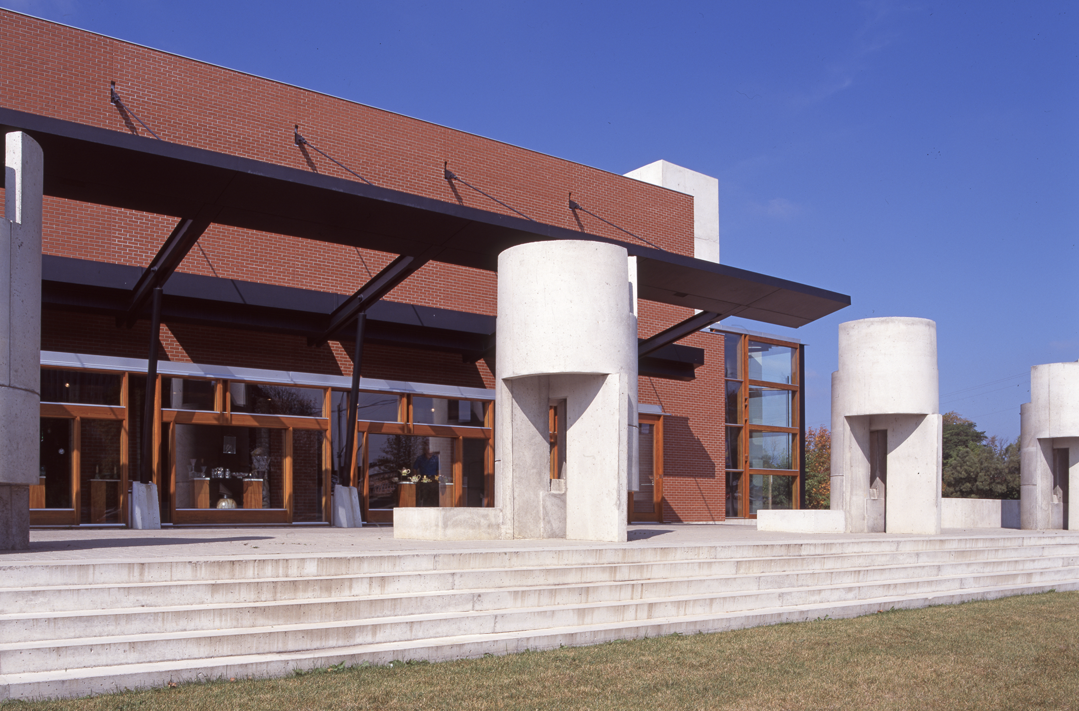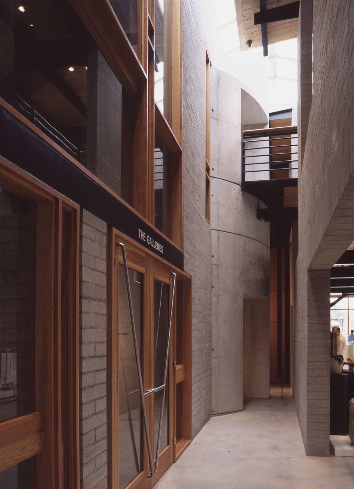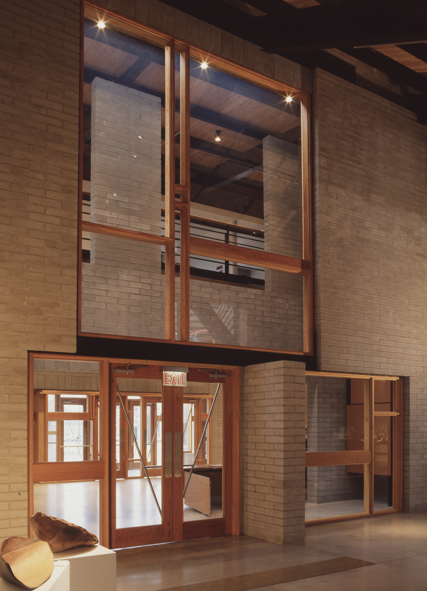 The design of this building takes advantage of the nature of clay and glass to provide an alternative to the white cube. First, the museum interiors are strongly connected to the outside world. Natural light from skylights, windows, and an exterior courtyard articulates the museum spaces and brings daily and seasonal cycles into the interior. Second, the construction of the museum interiors is not abstract but directly expressed: details reveal the layers of construction and articulate the relationships of materials to each other. In this way, the art objects displayed are connected to ordinary experiences so that they may be understood to be part of everyday life.